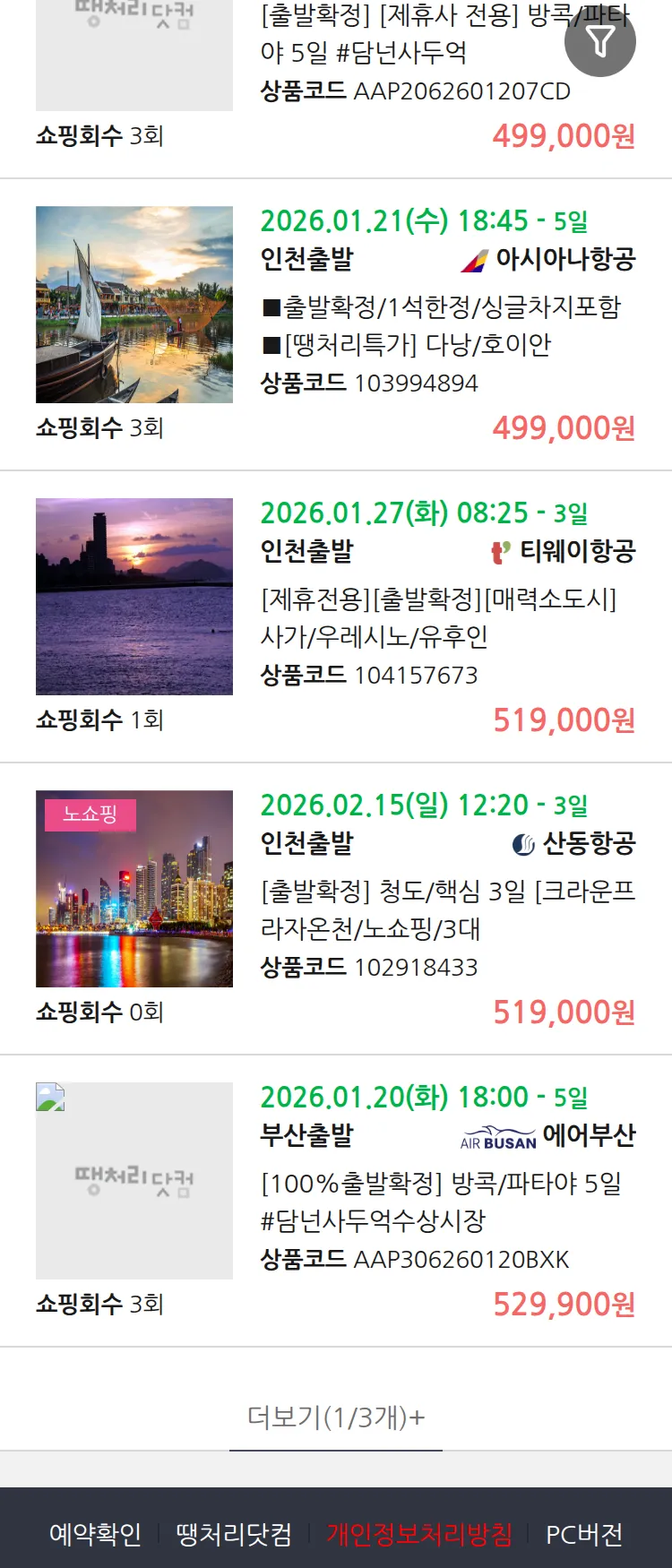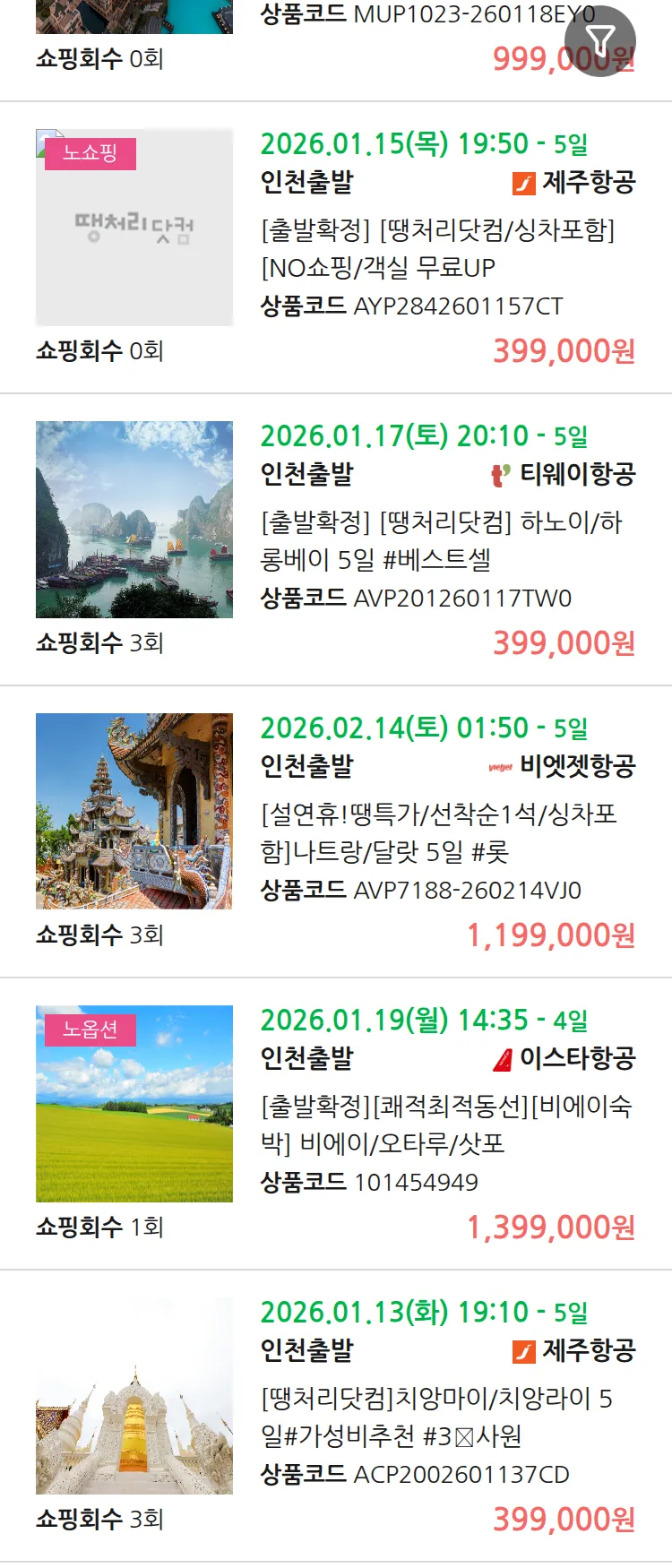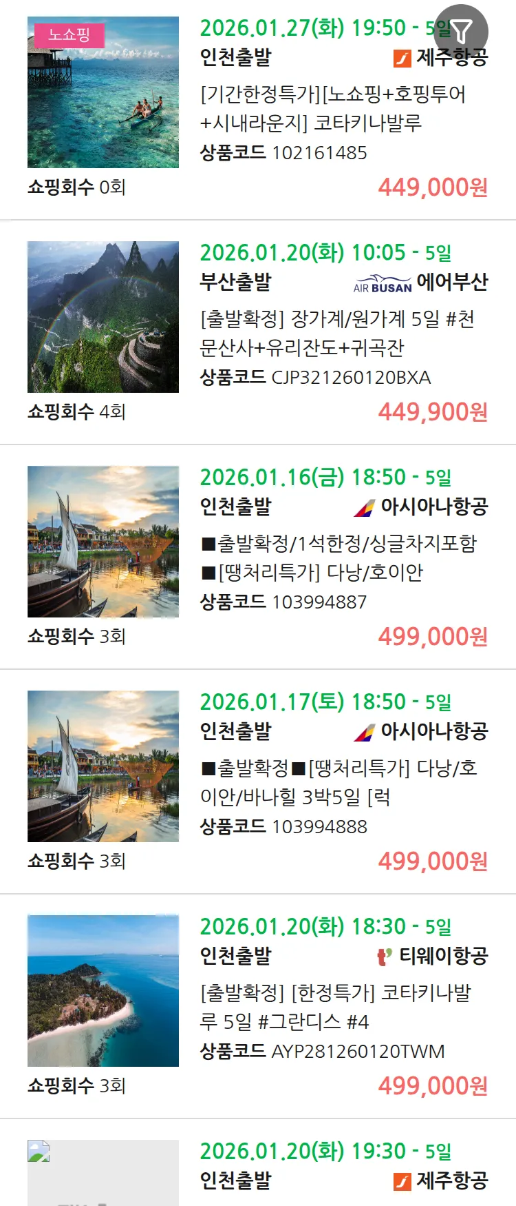 (1월9일(금)) 땡처리 99.9% 확정 패키지
