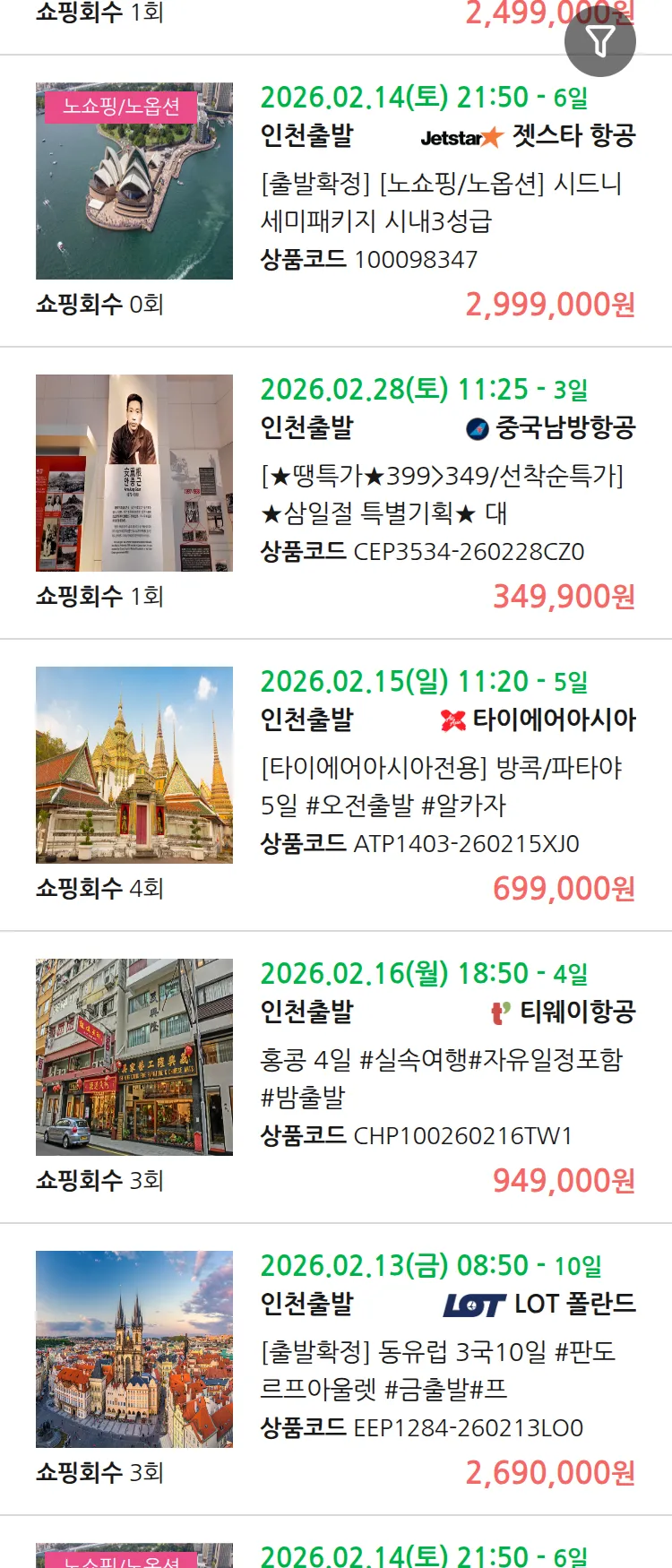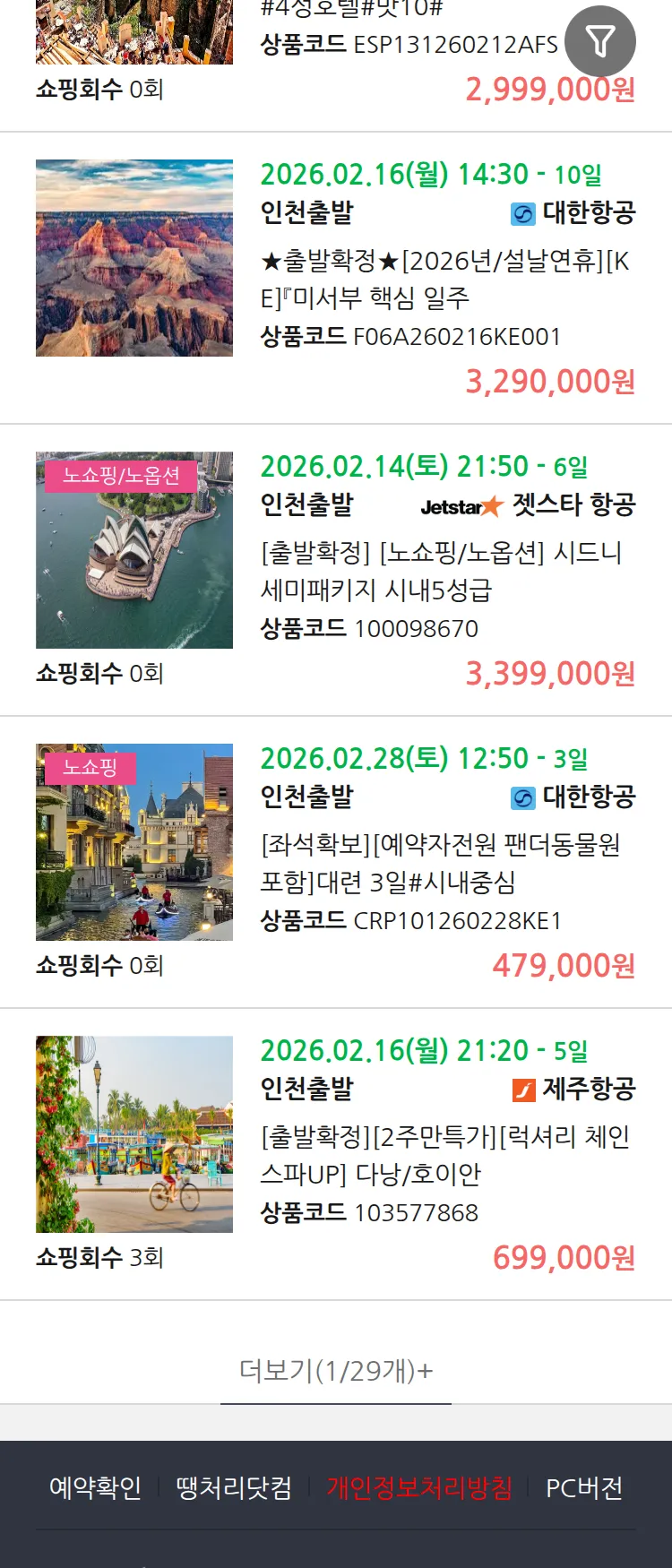 (1월8일(목)) 땡처리 연휴 패키지 패키지