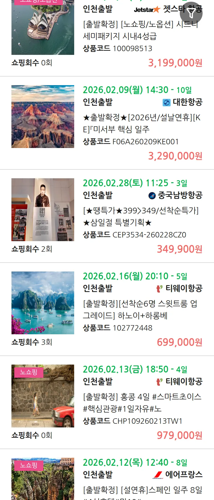 (1월9일(금)) 땡처리 99.9% 확정 패키지