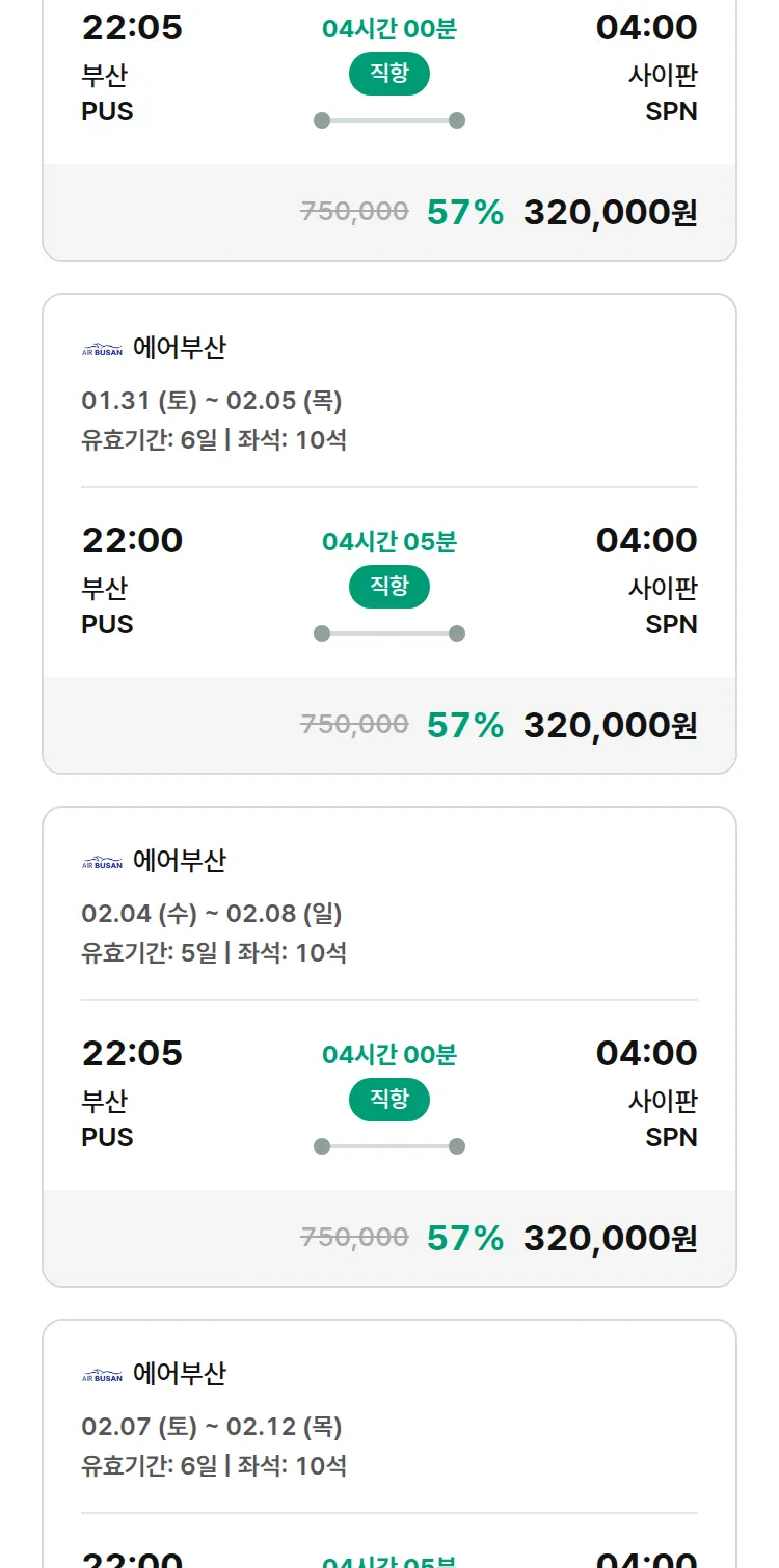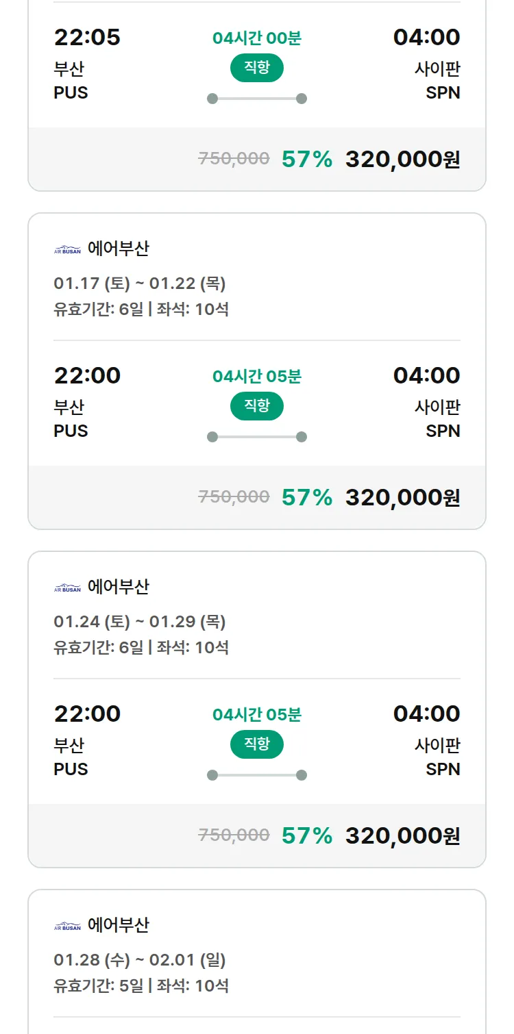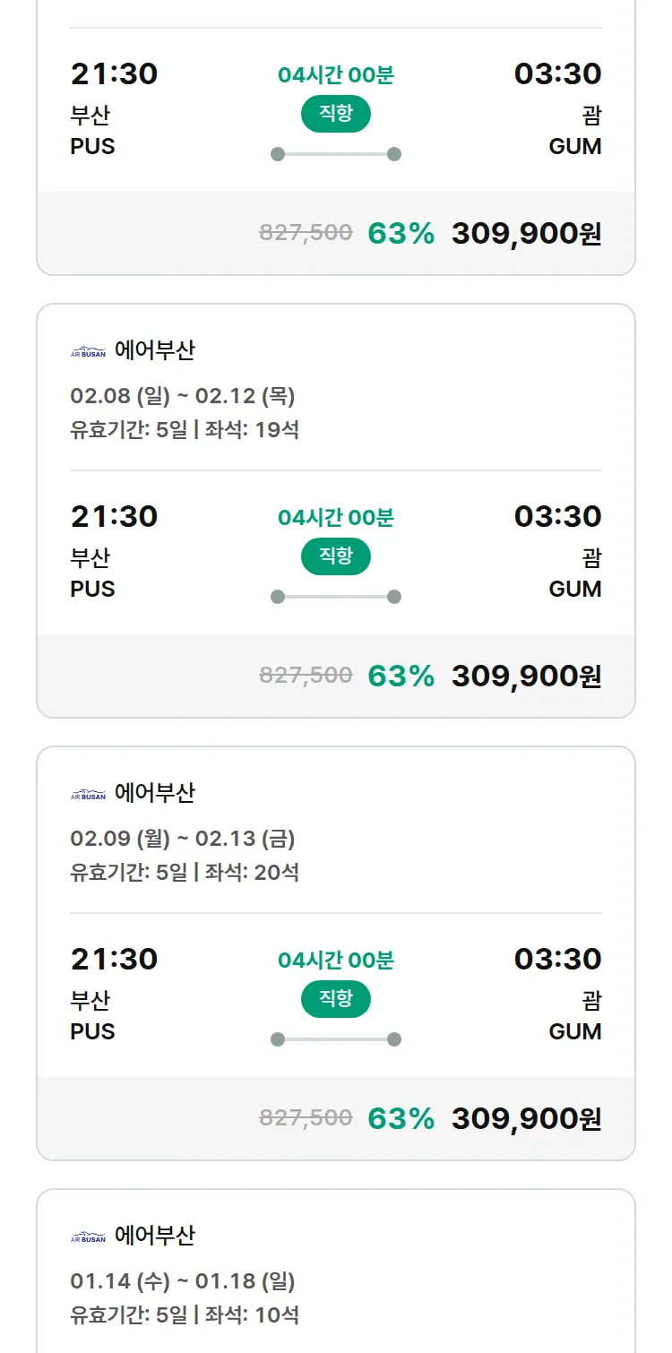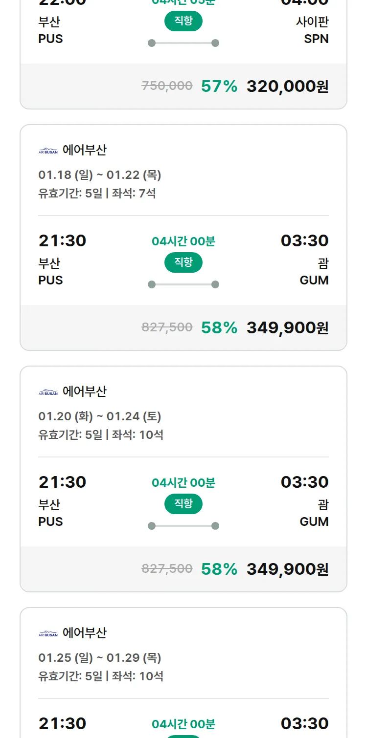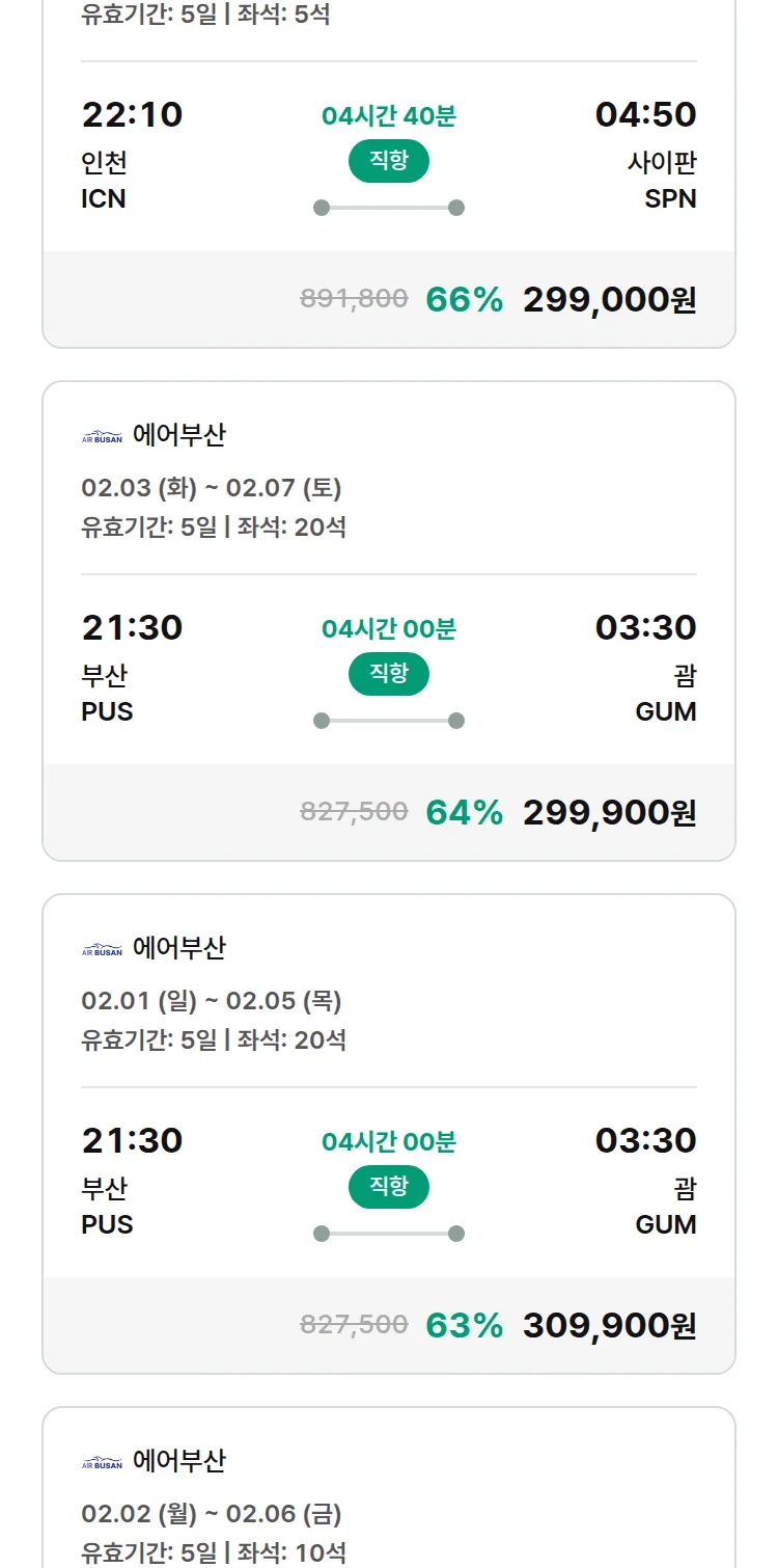 (1월 10일(토)) 땡처리 특가 항공권