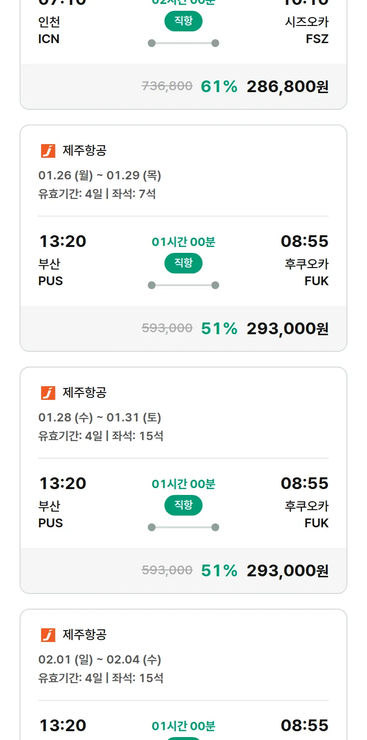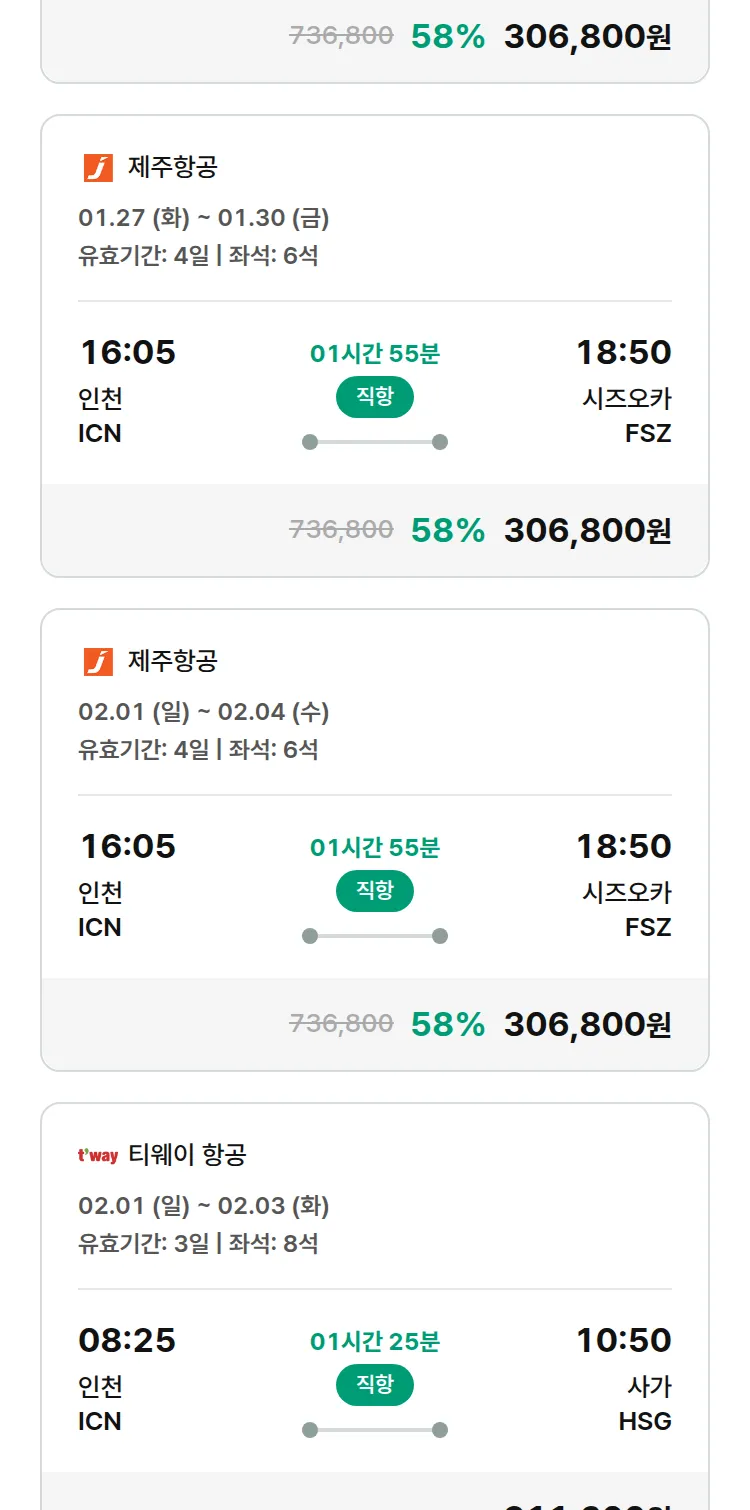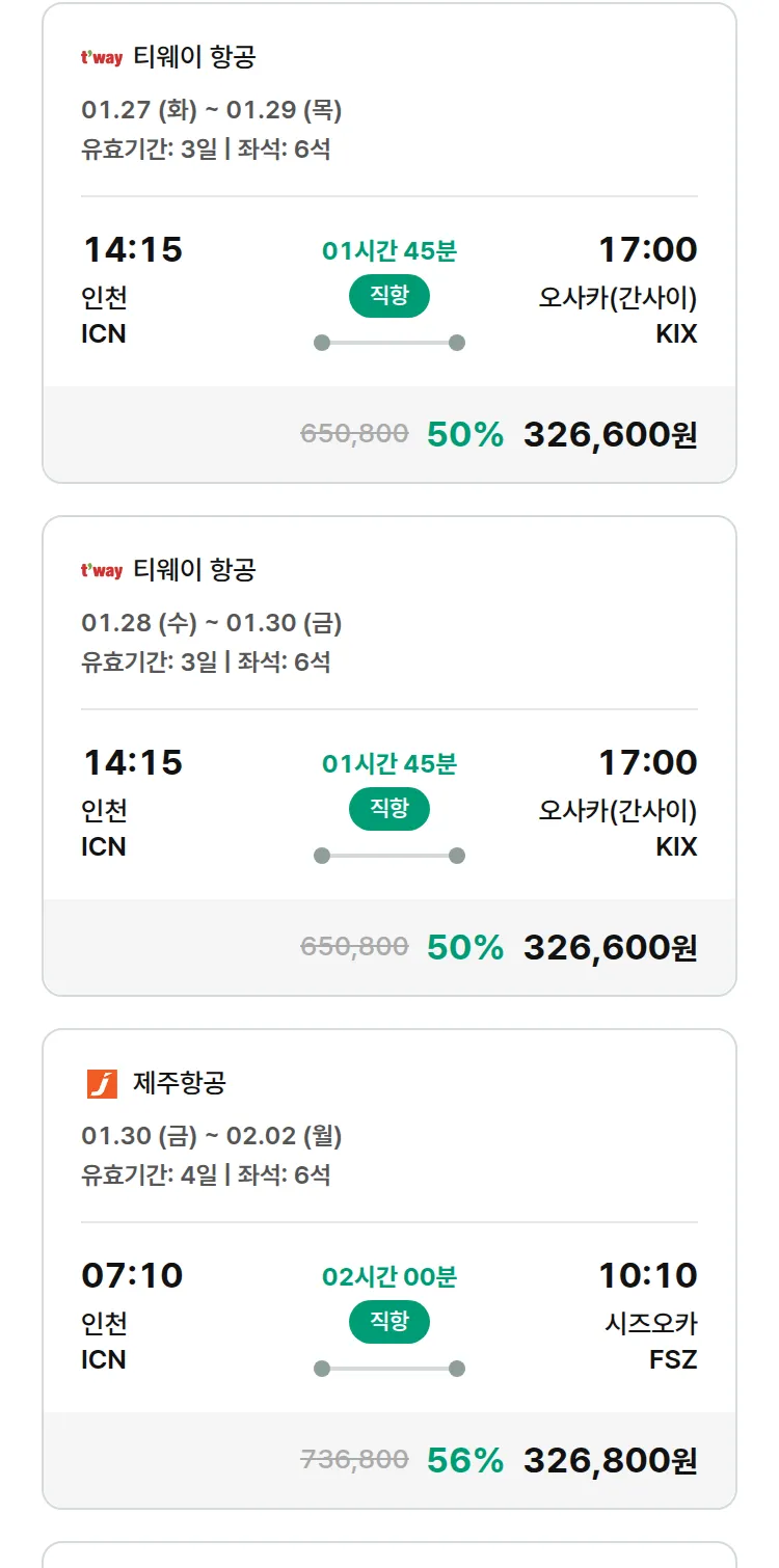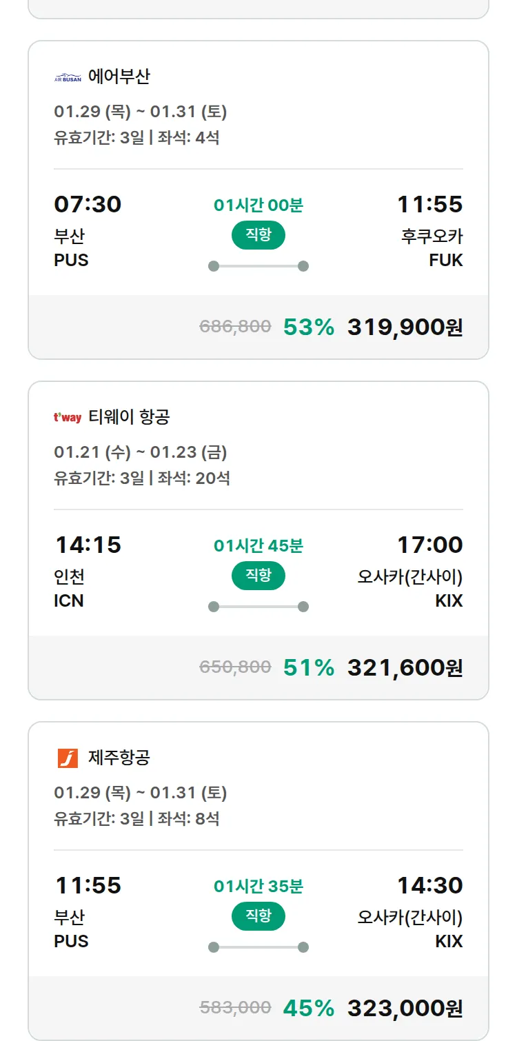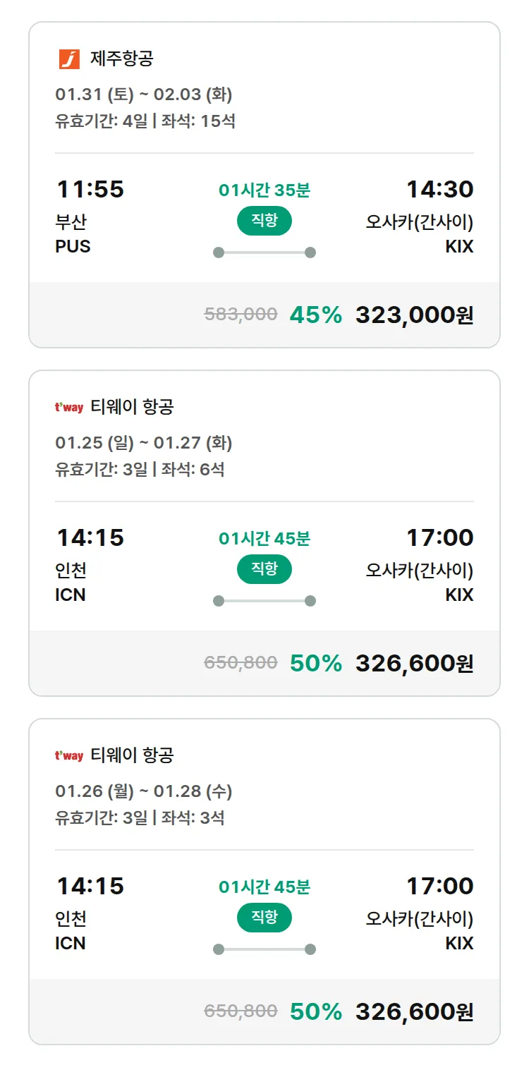 (1월9일(금)) 모두투어 일본 특가 항공권
