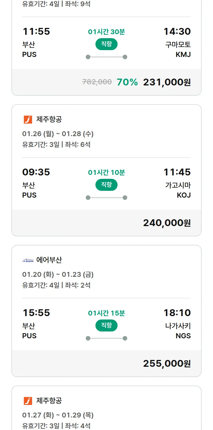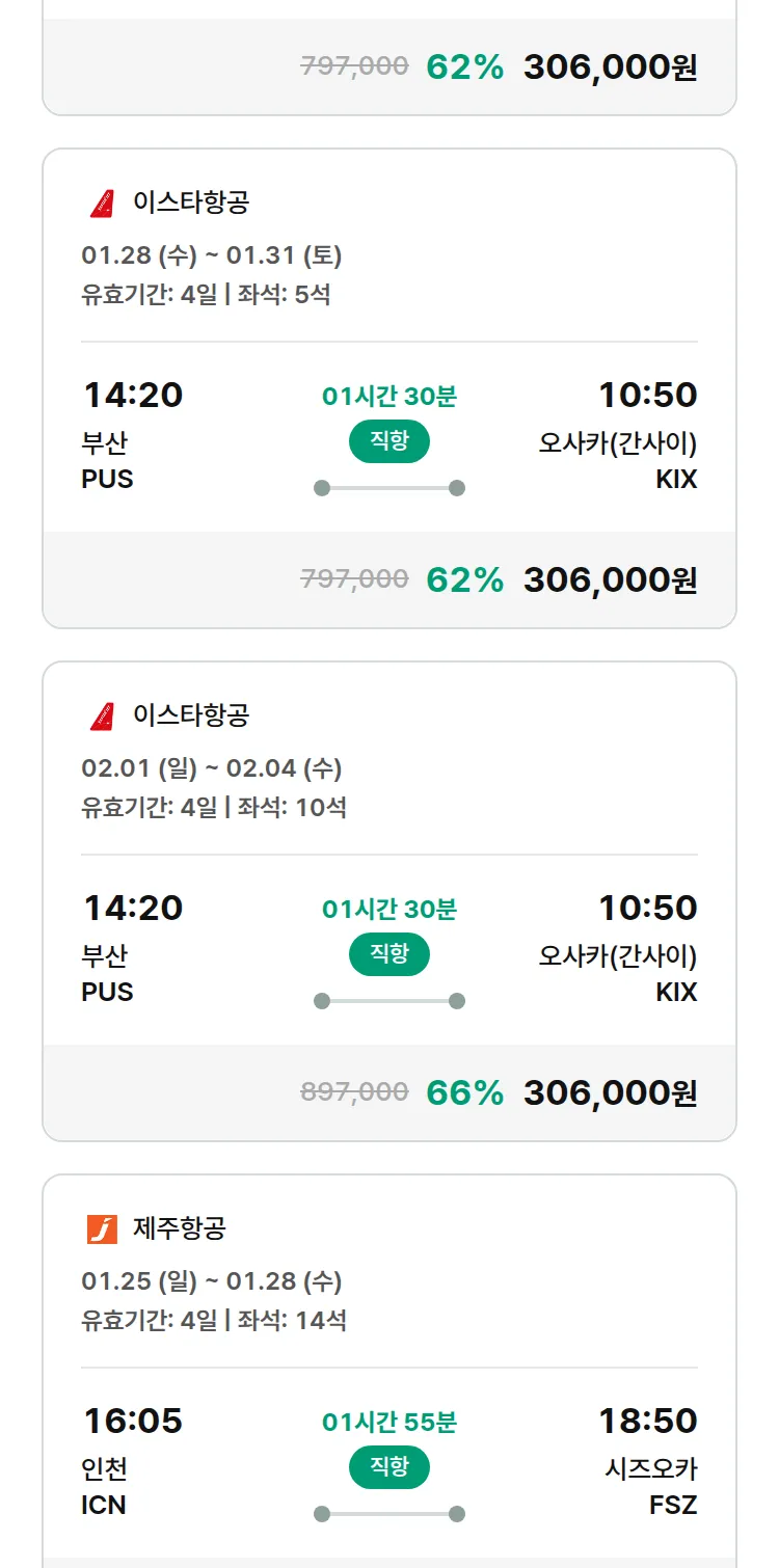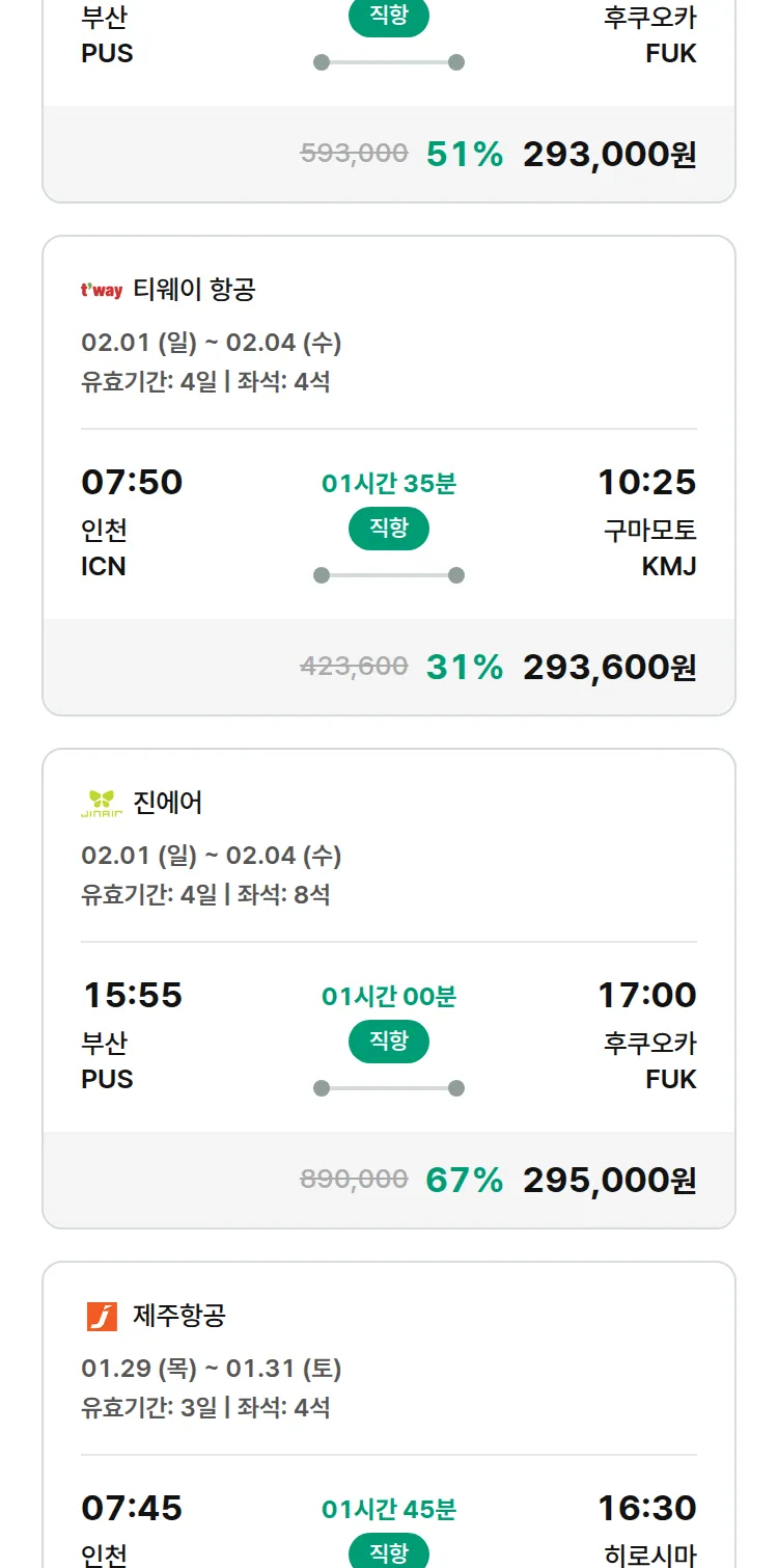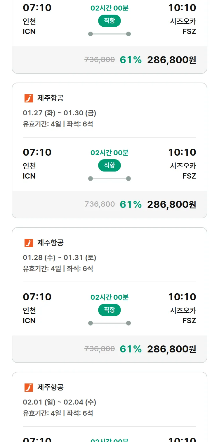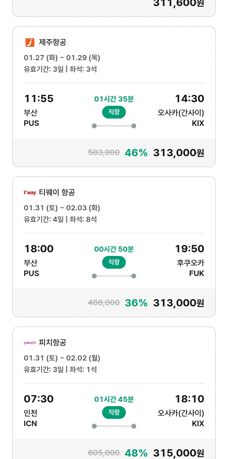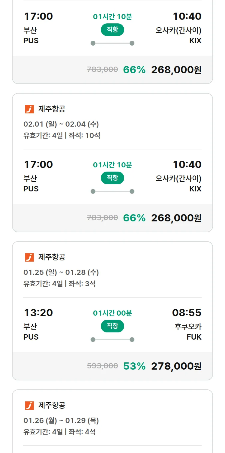 (1월9일(금)) 모두투어 일본 특가 항공권