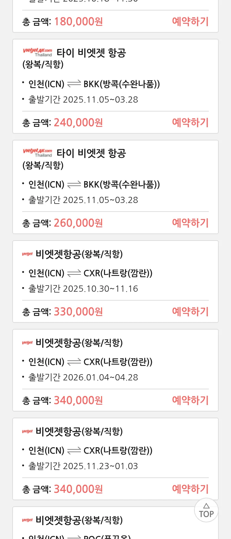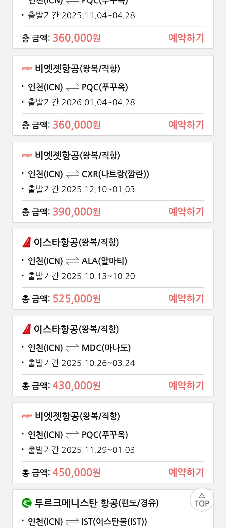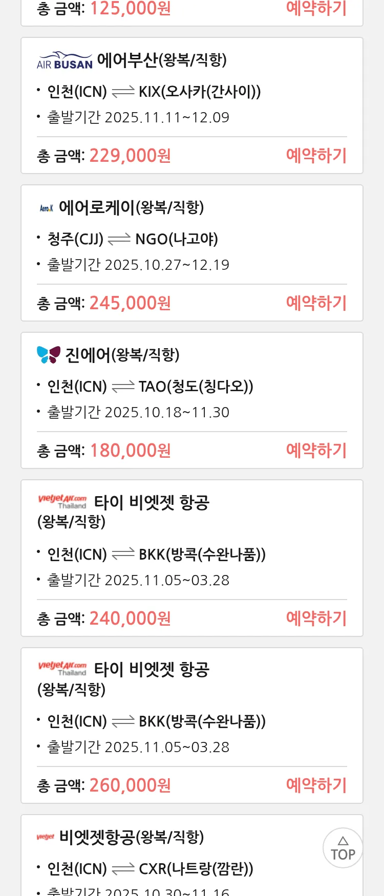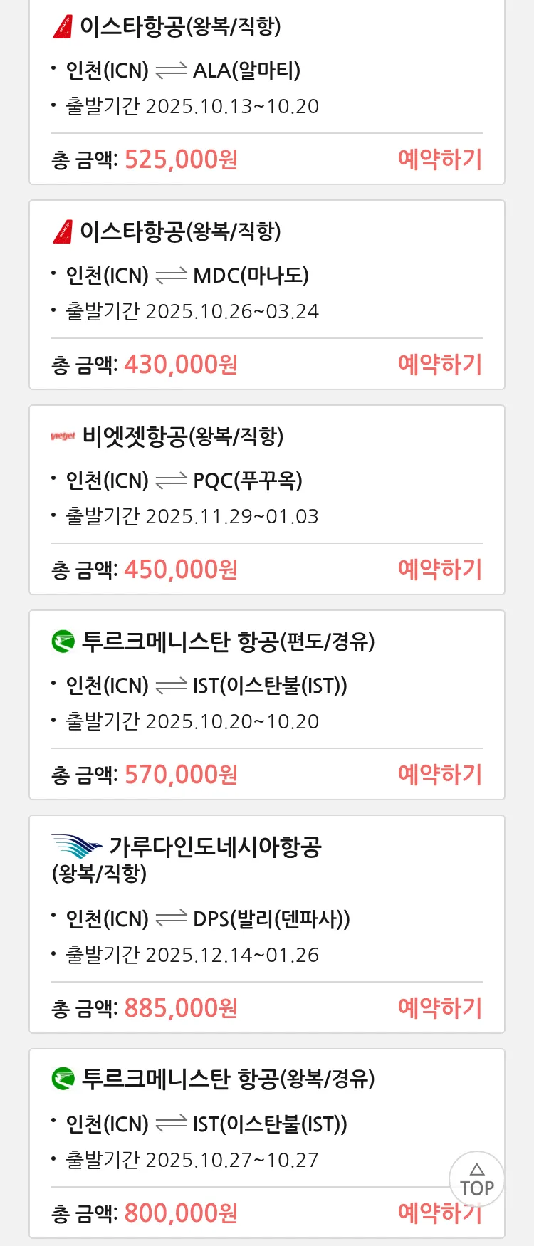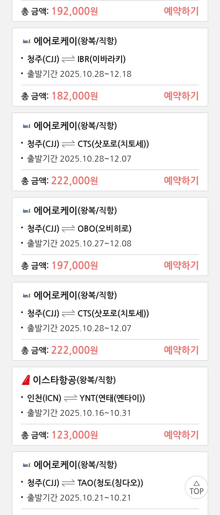 (10월 17일(금)) 땡처리 특가 항공권