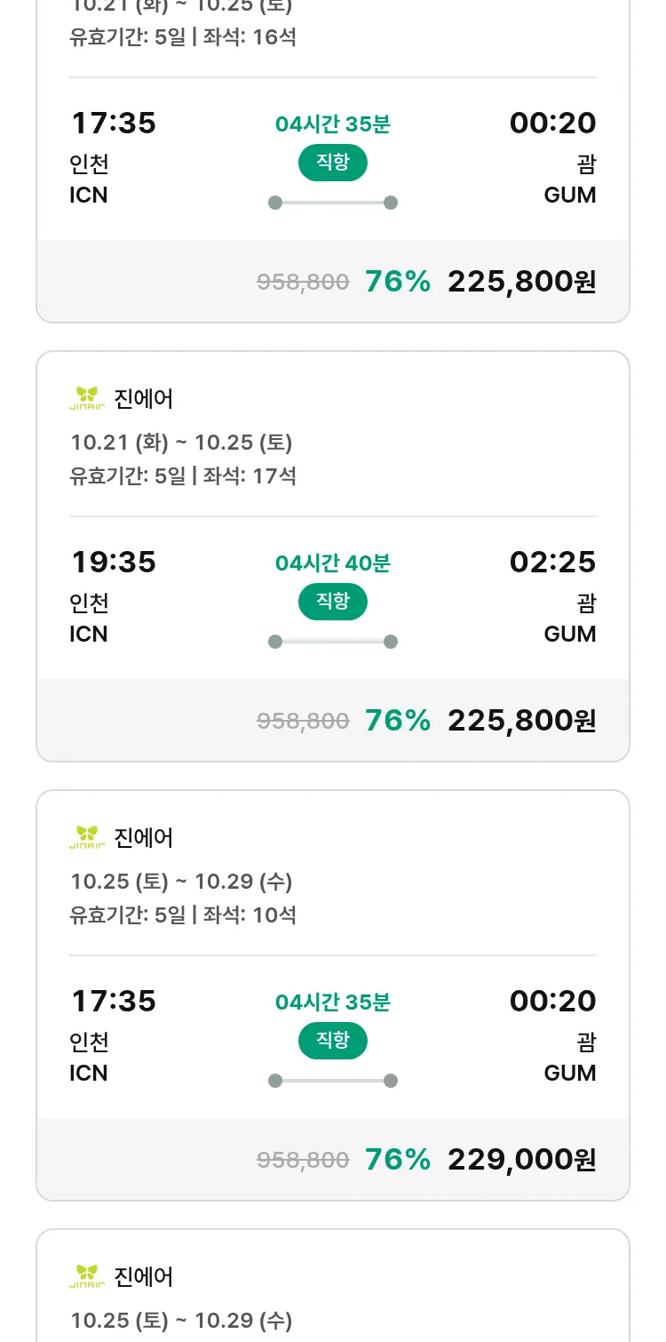 (10월 17일(금)) 땡처리 특가 항공권