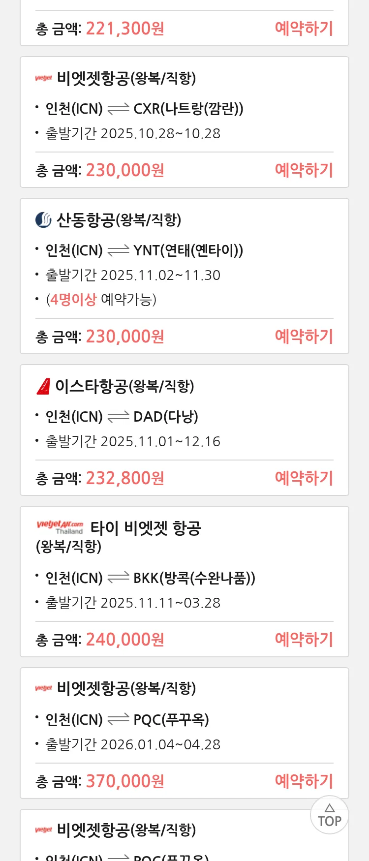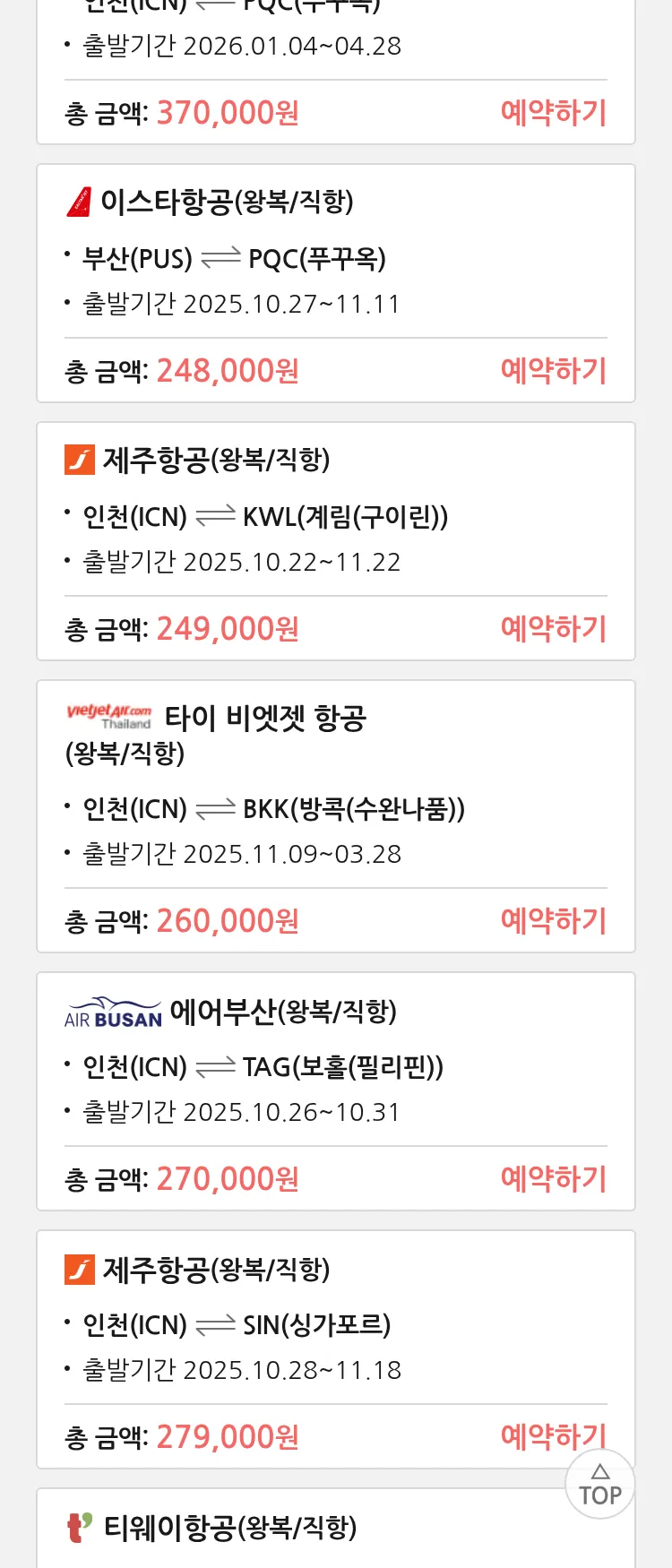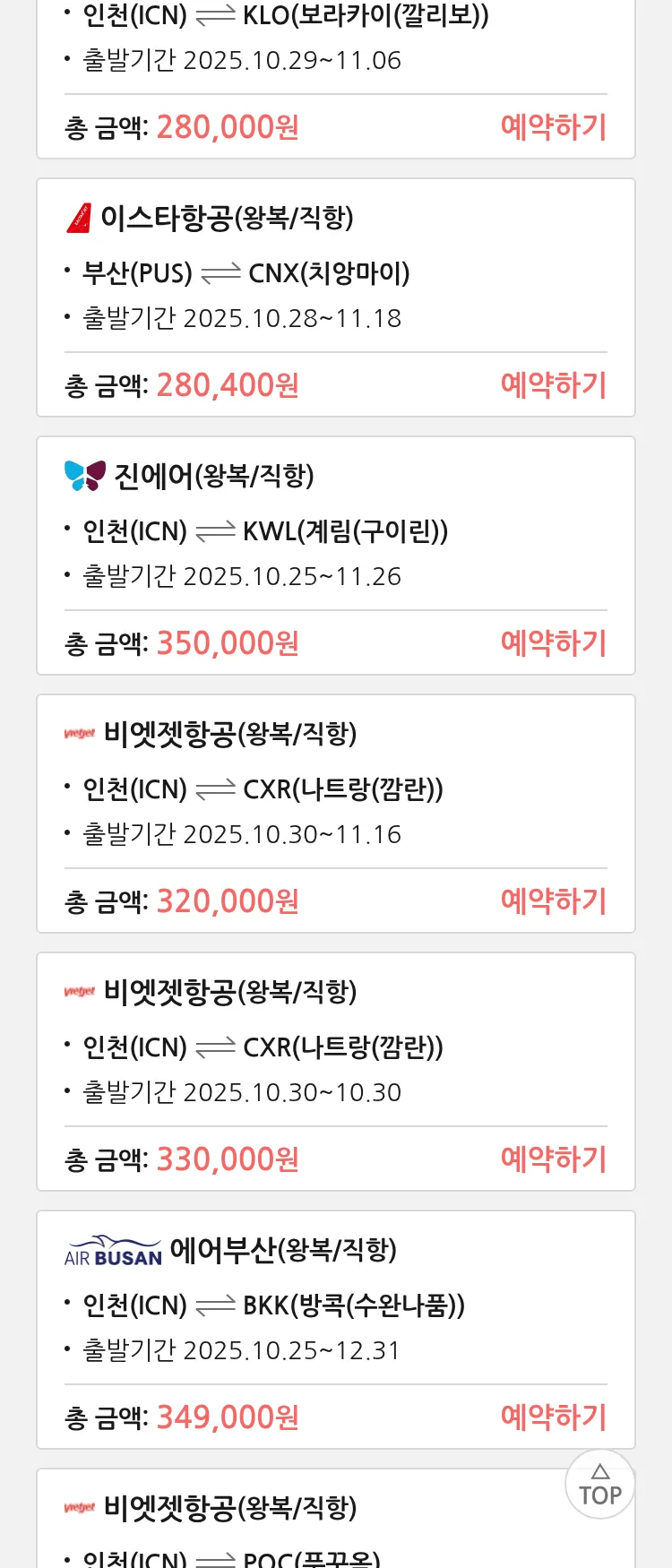(10월 10일(금)) 모두투어 동남아 특가 항공권
