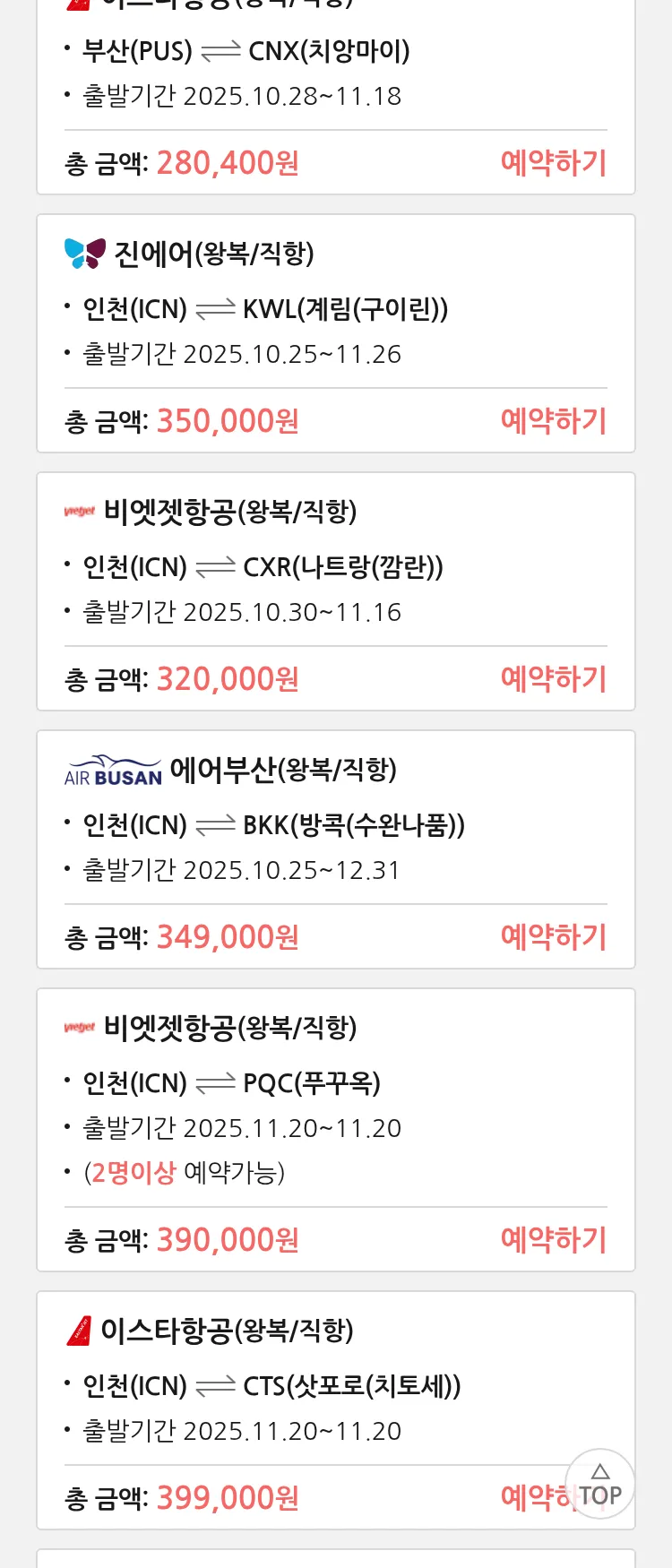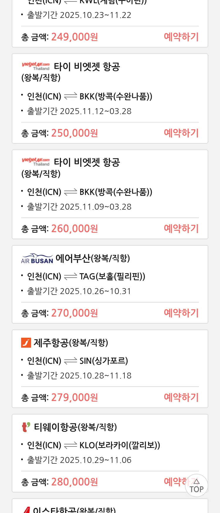 (10월 17일(금)) 땡처리 특가 항공권