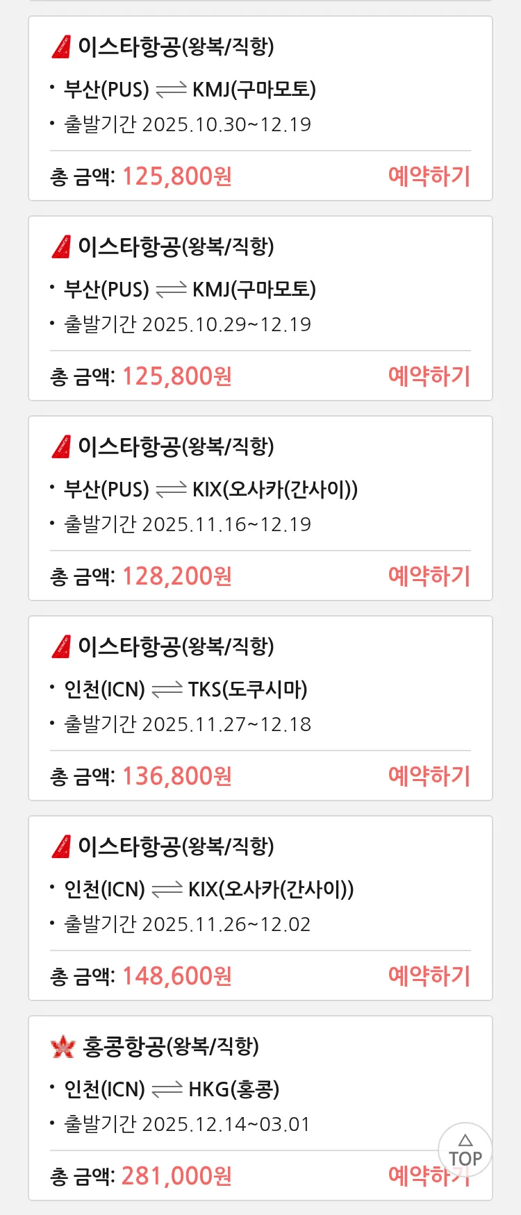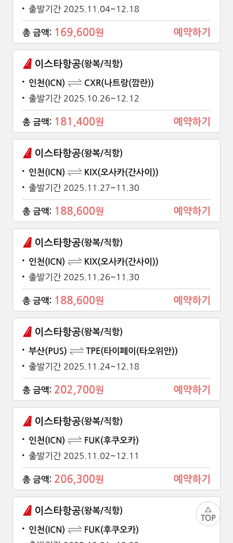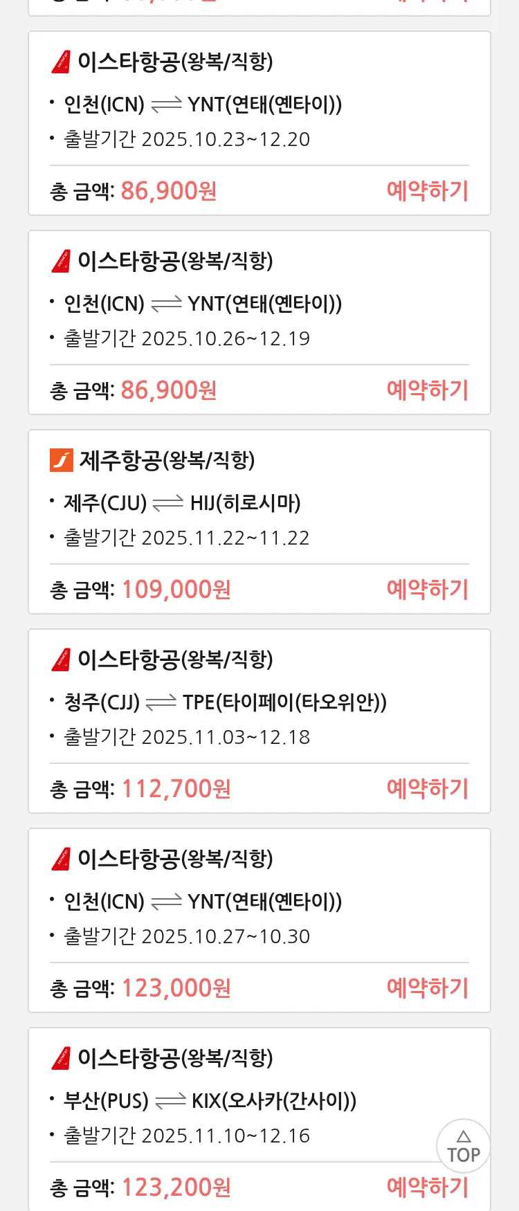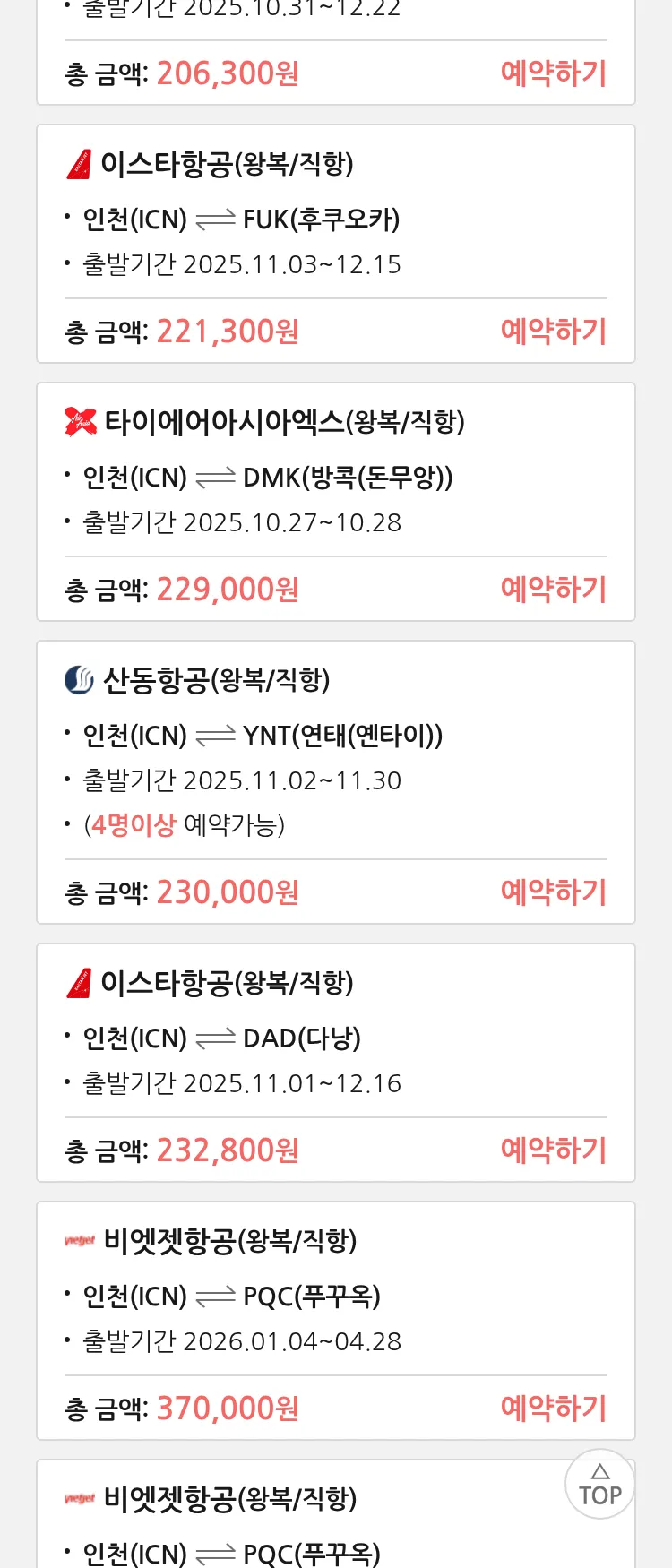 (10월 18일(토)) 땡처리 특가 항공권