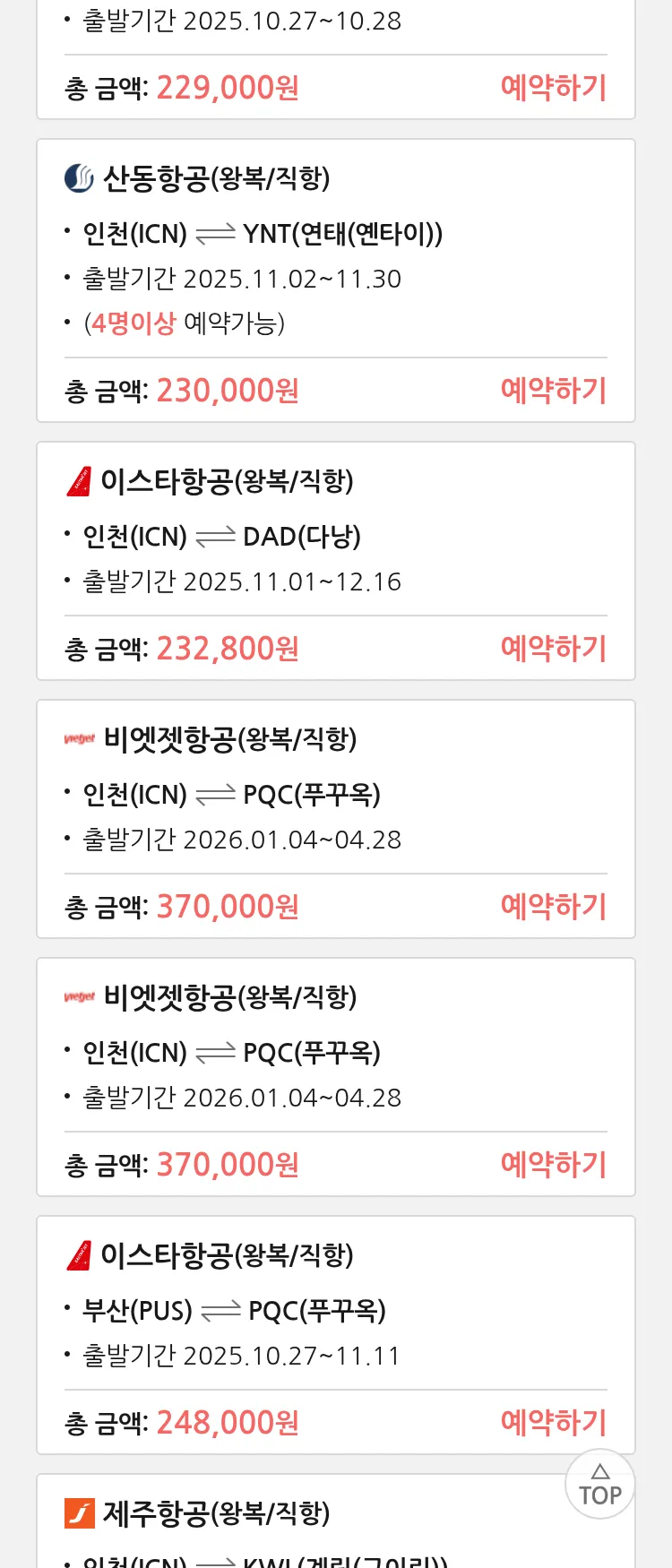 (10월 19일(일)) 땡처리 특가 항공권