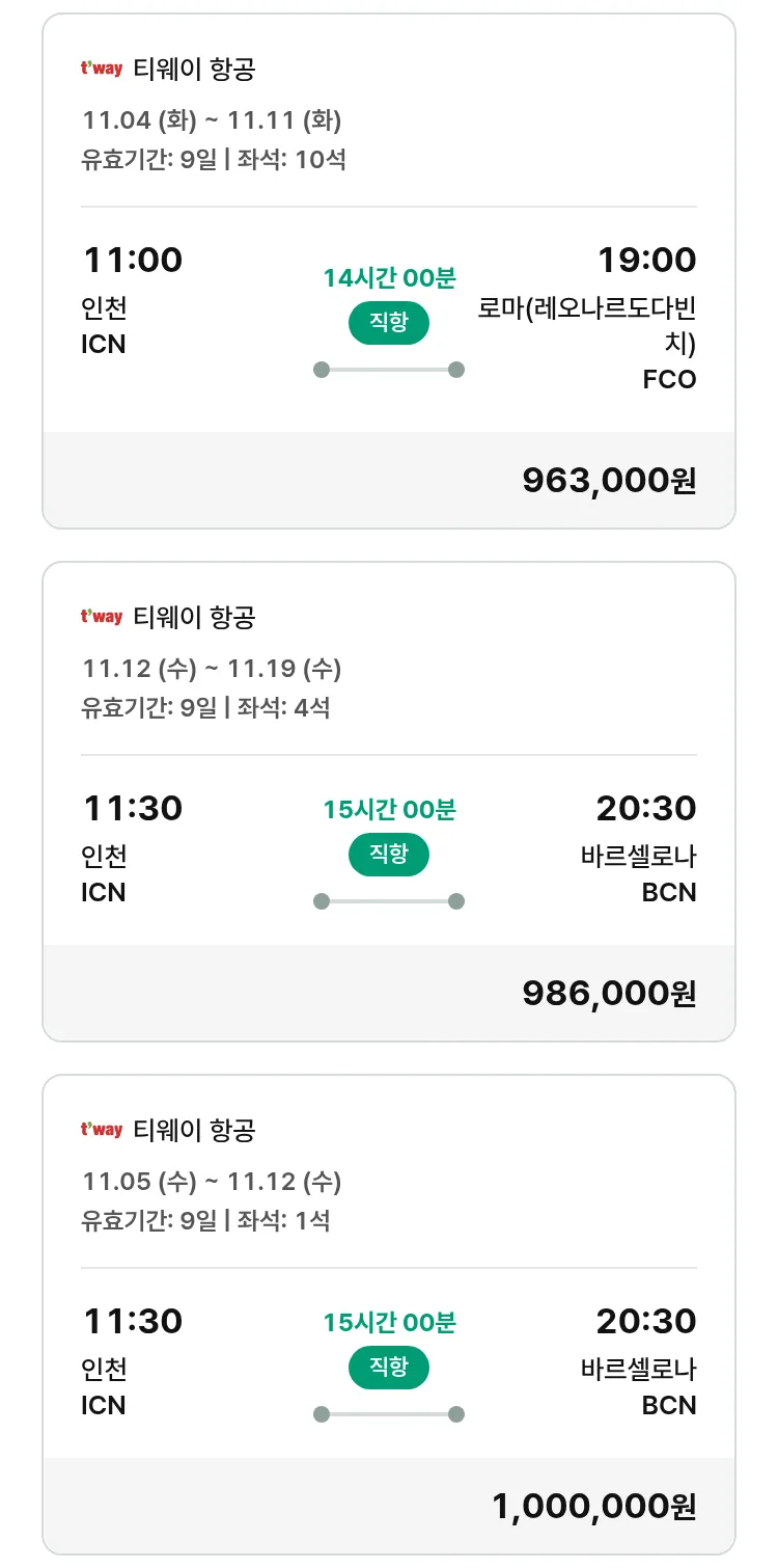 (10월 18일(토)) 땡처리 유럽 긴급 패키지