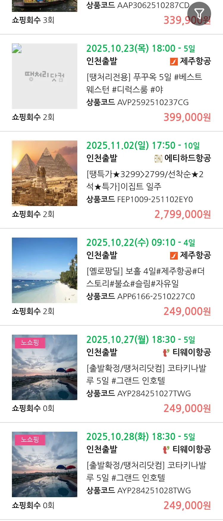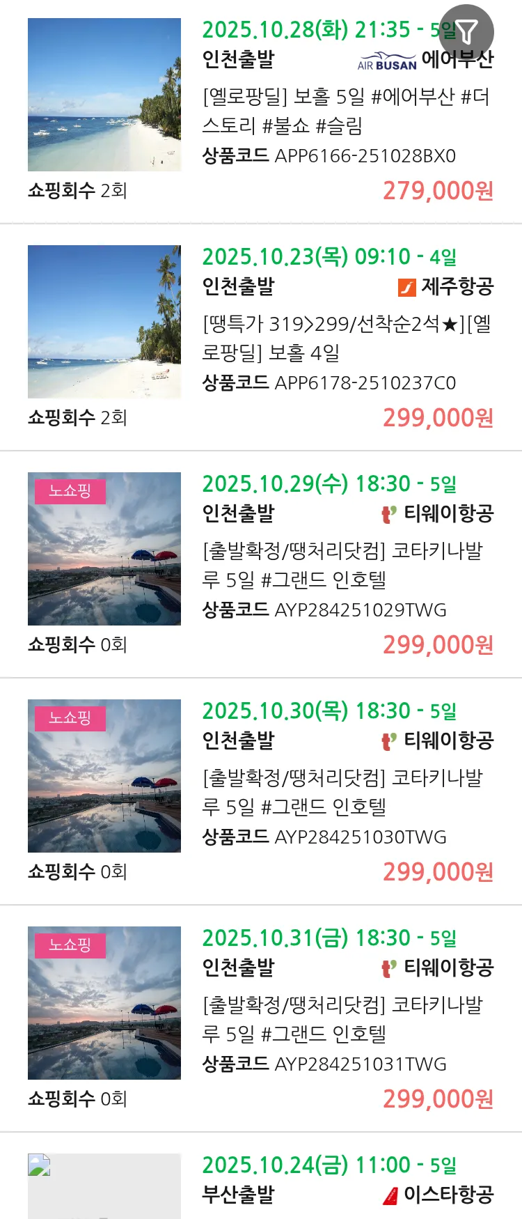 (10월 18일(토)) 땡처리 99.9% 확정 패키지
