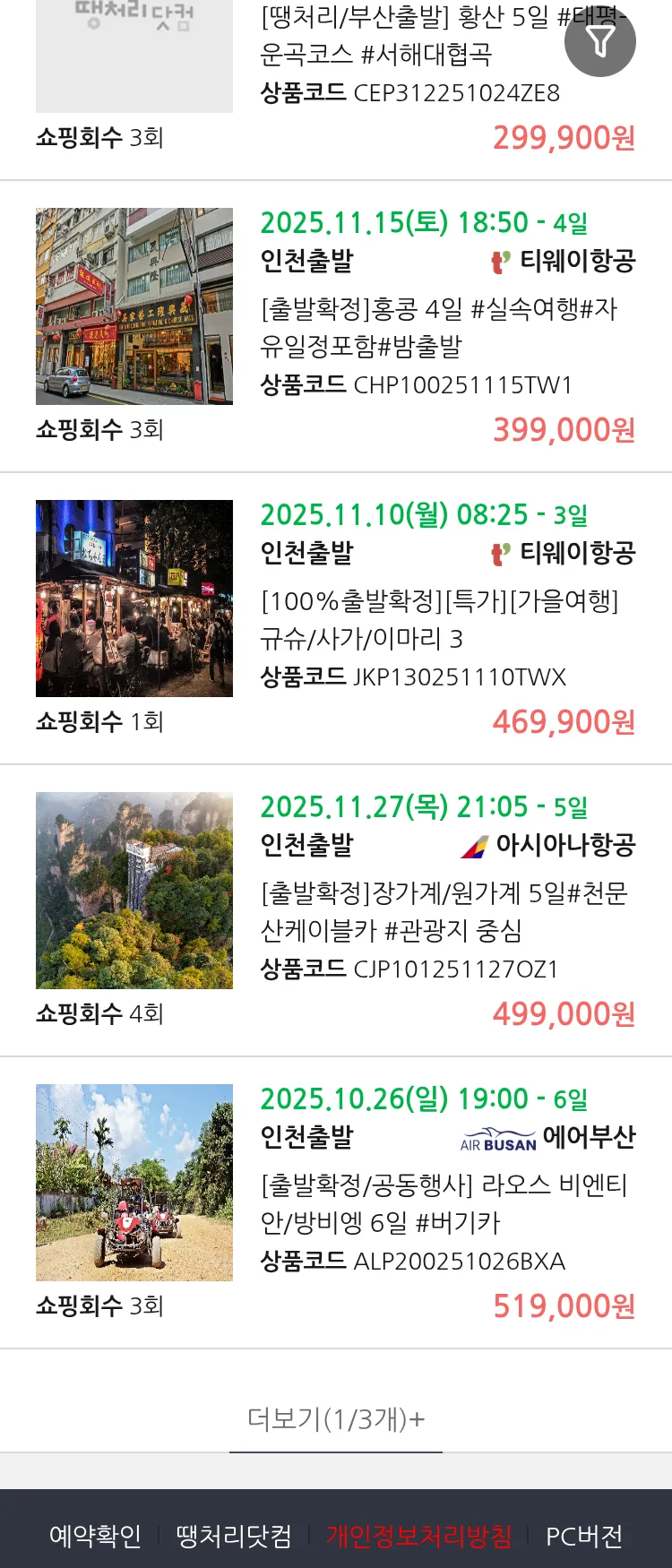 (10월 18일(토)) 땡처리 연휴 패키지 패키지