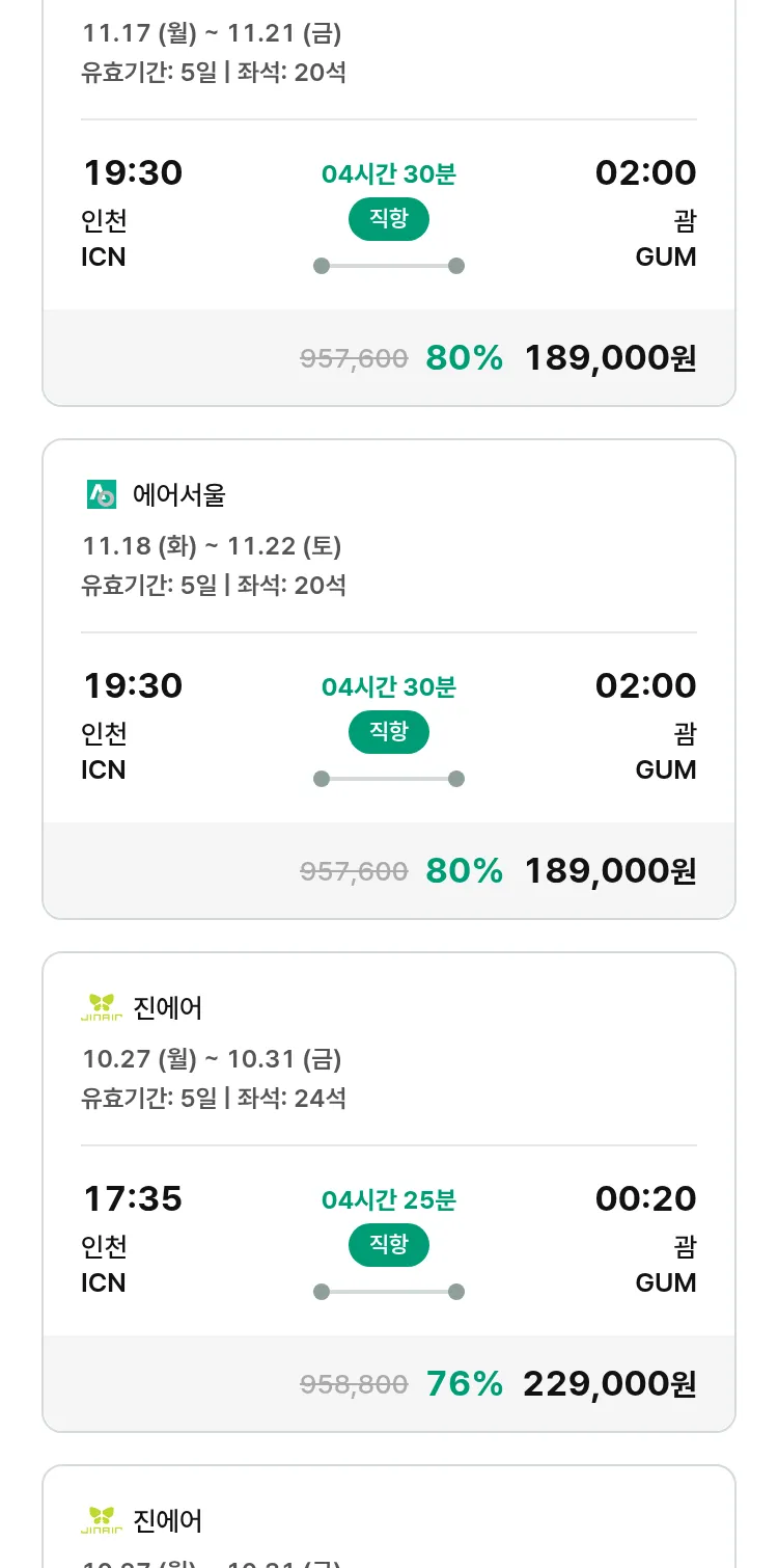 (10월 20일(월)) 땡처리 특가 항공권