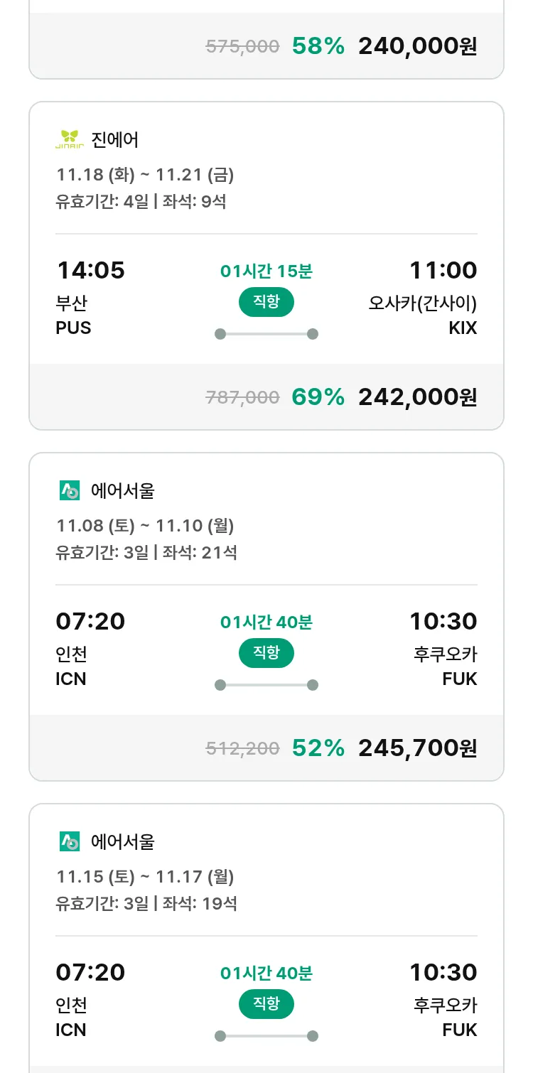 (10월 19일(일)) 모두투어 일본 특가 항공권