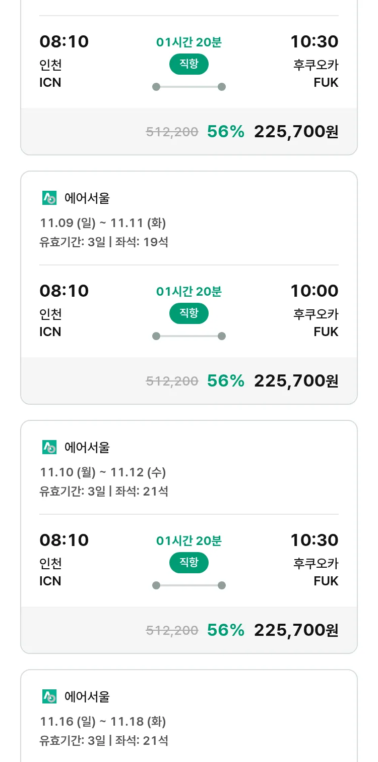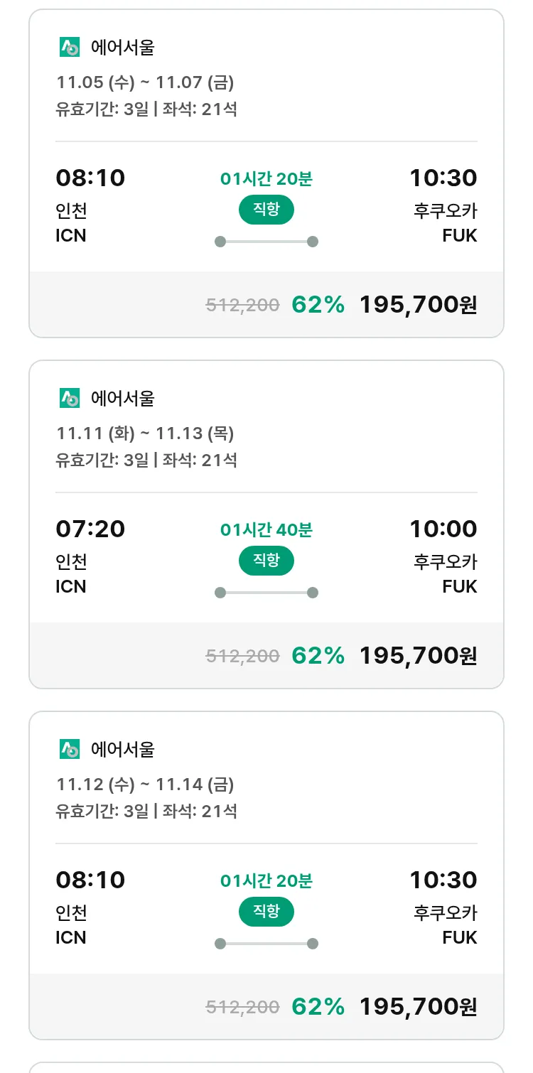 (10월 20일(월)) 땡처리 99.9% 확정 패키지