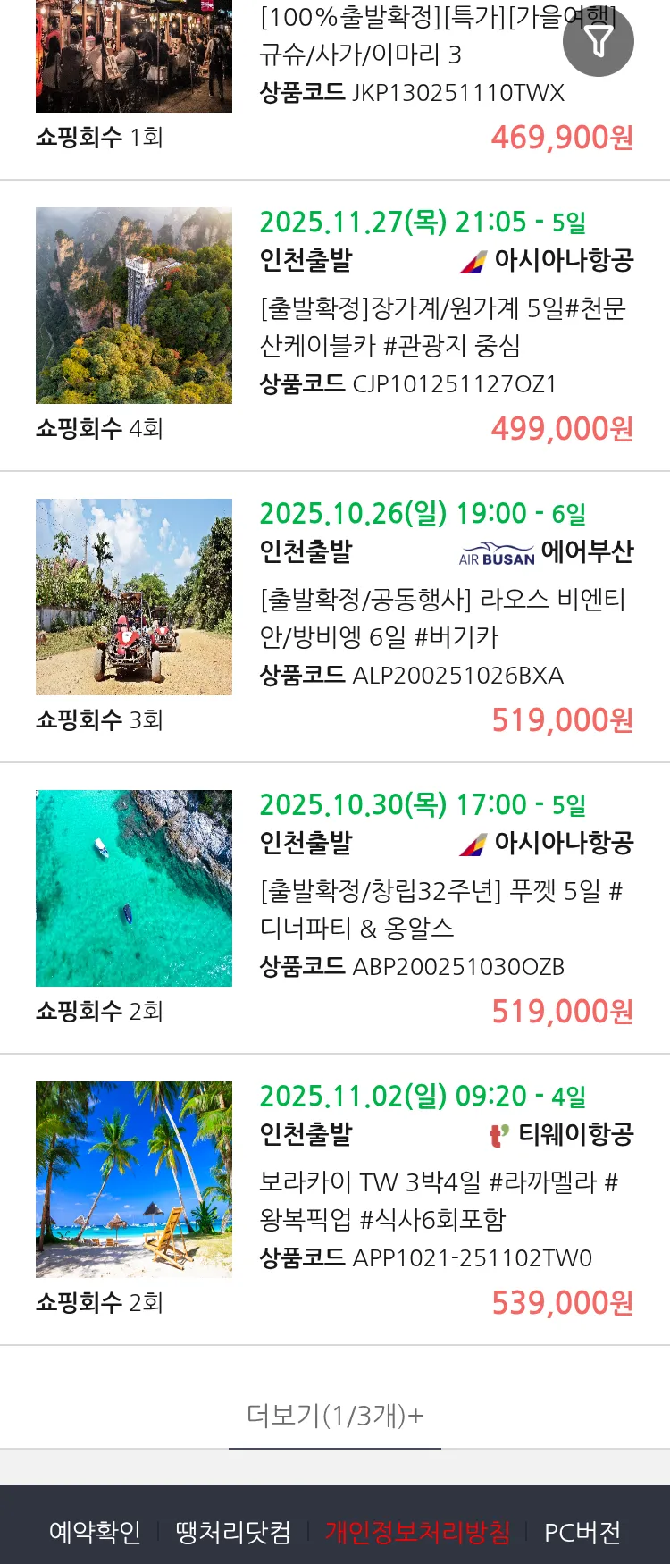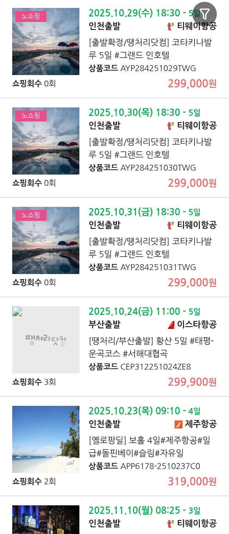 (10월 20일(월)) 땡처리 99.9% 확정 패키지