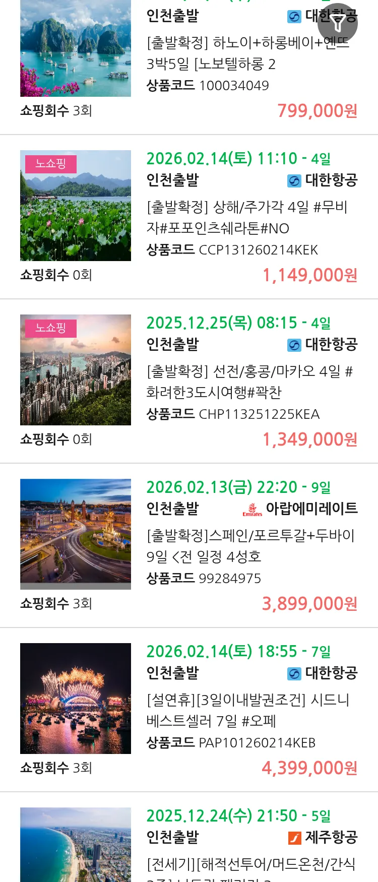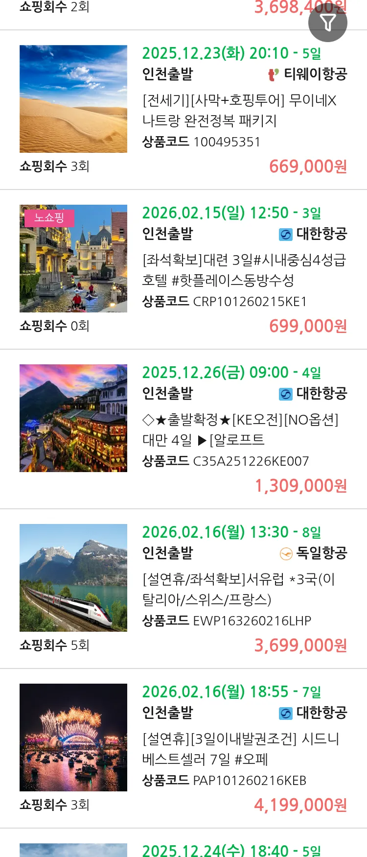 (10월 21일(화)) 땡처리 99.9% 확정 패키지