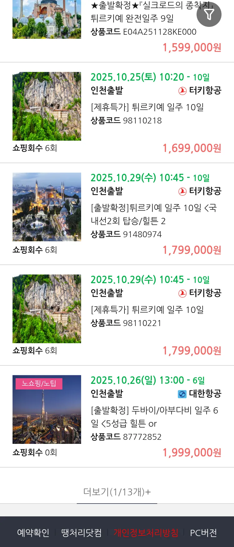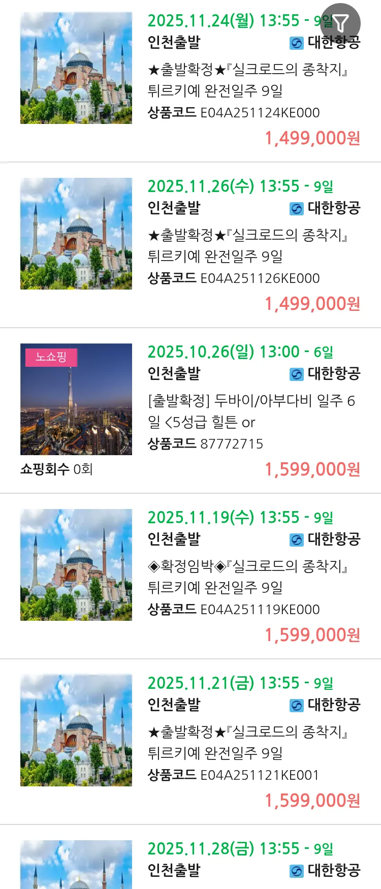 (10월 20일(월)) 땡처리 99.9% 확정 패키지