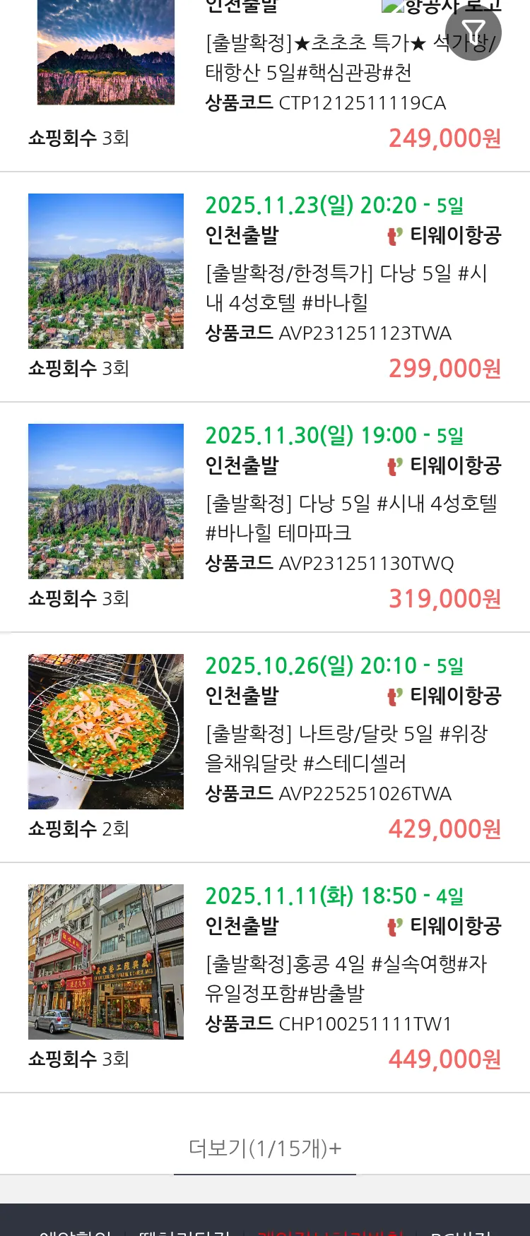 (10월 19일(일)) 땡처리 99.9% 확정 패키지