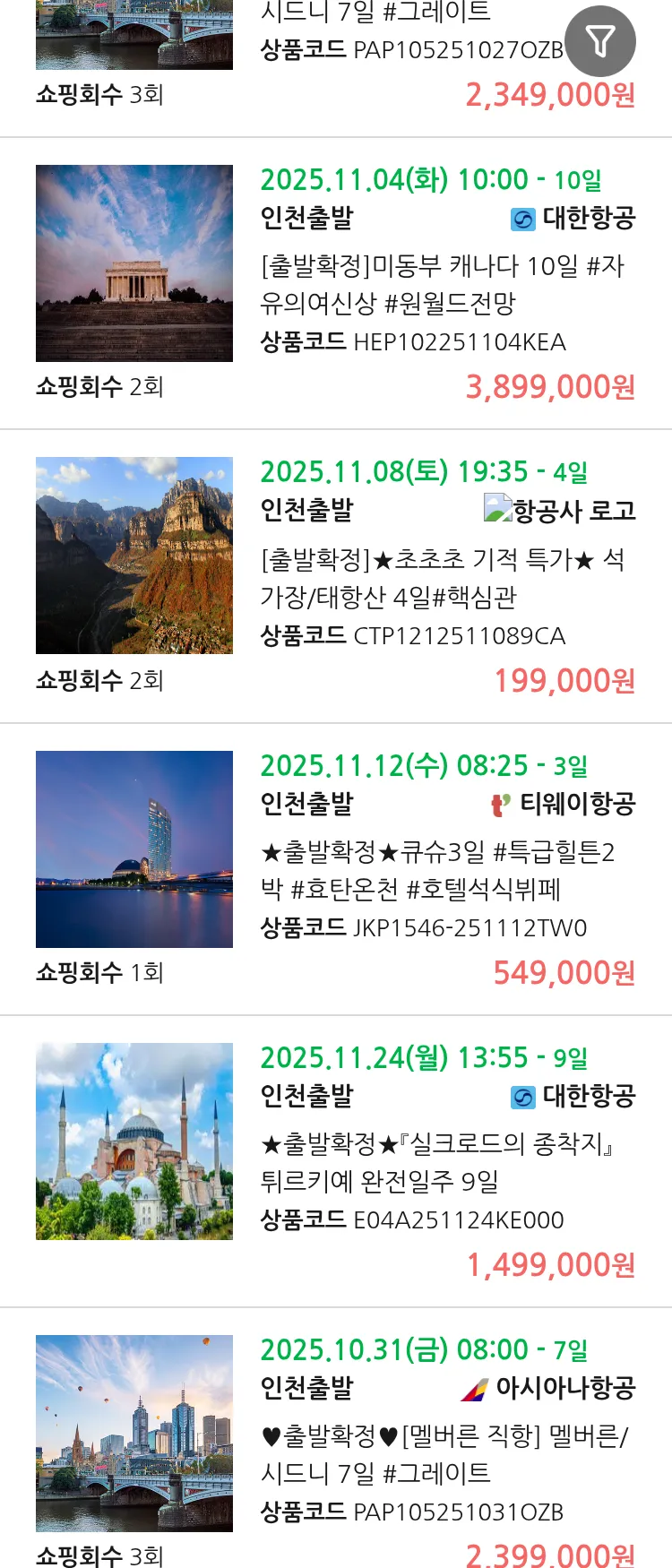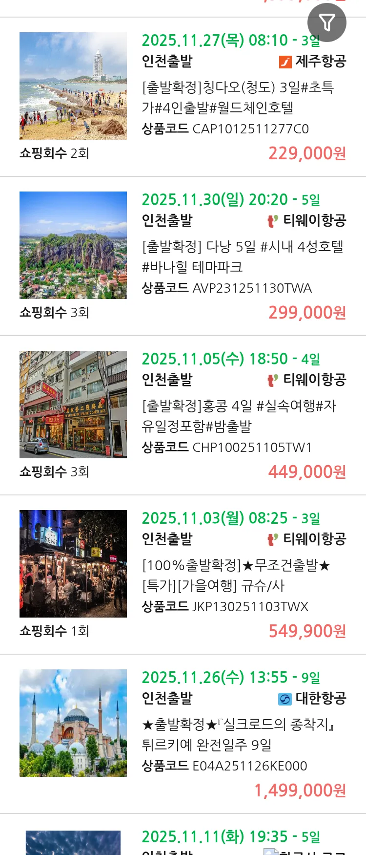 (10월 20일(월)) 땡처리 99.9% 확정 패키지