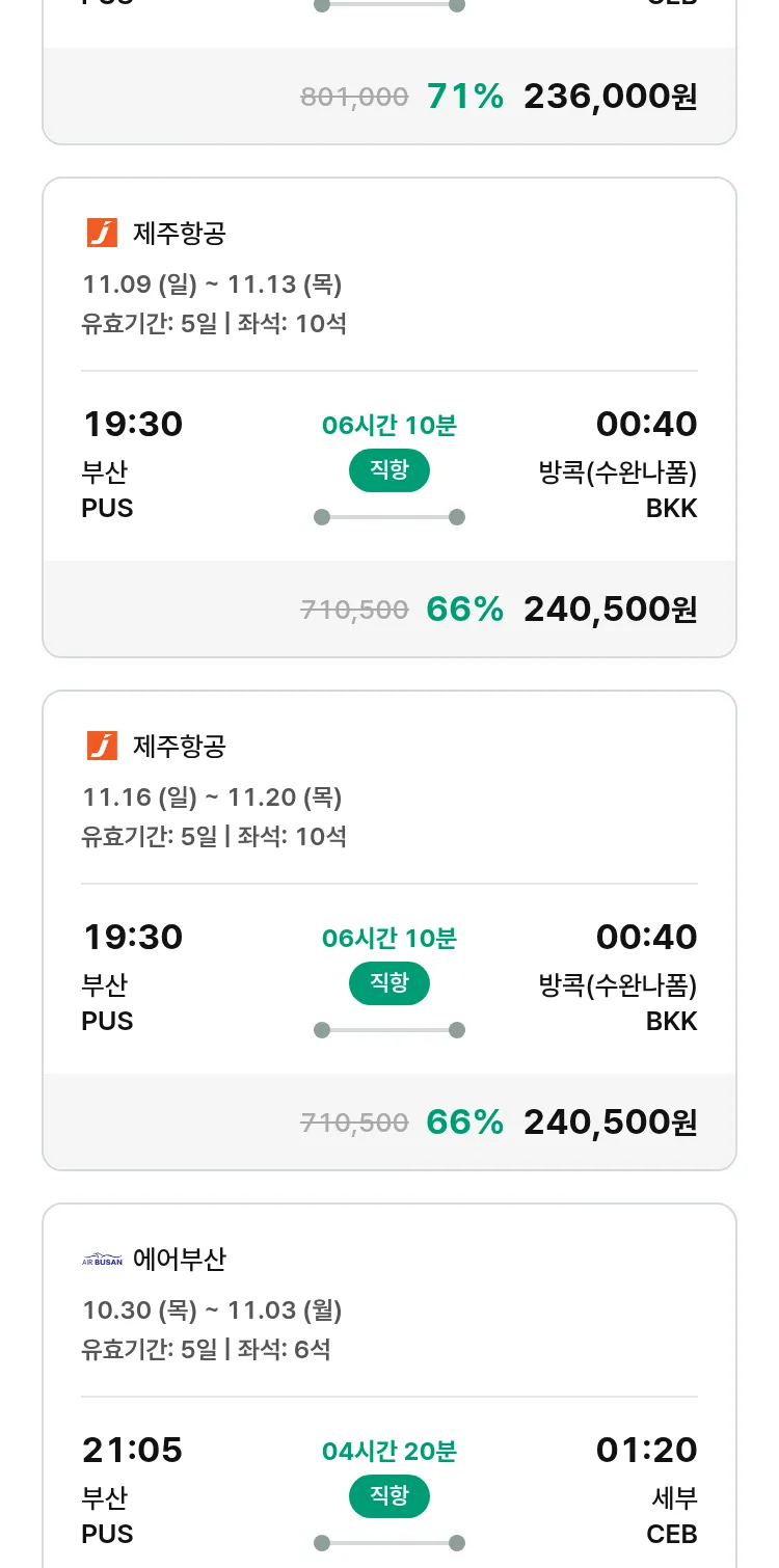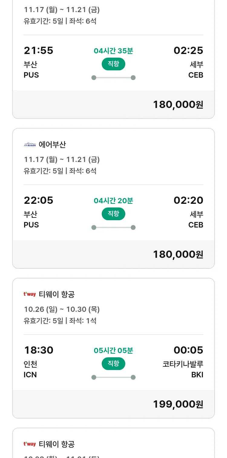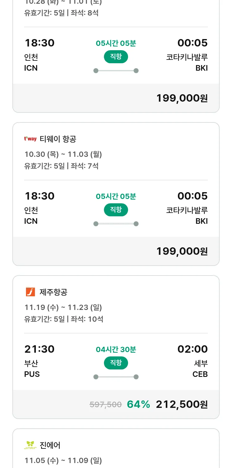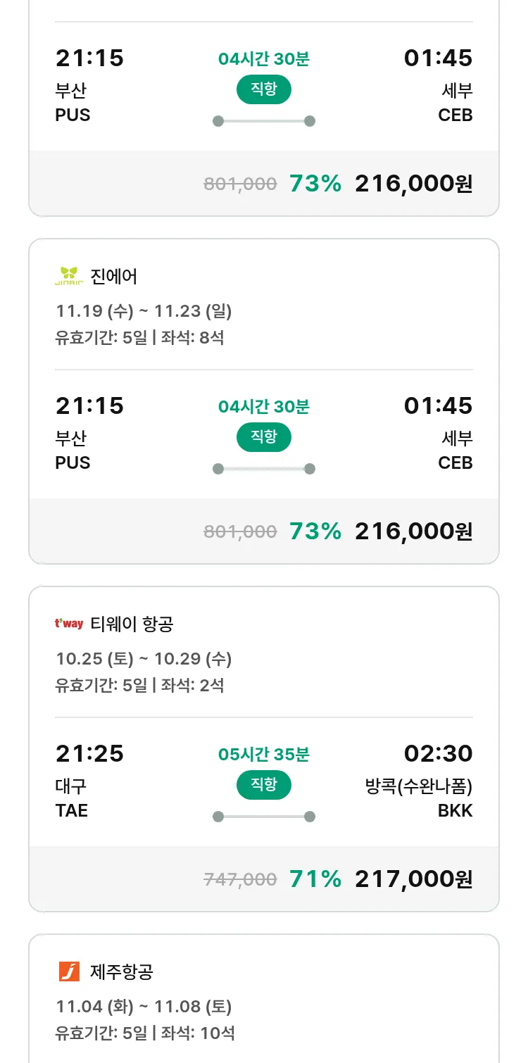 (10월 19일(일)) 땡처리 특가 항공권