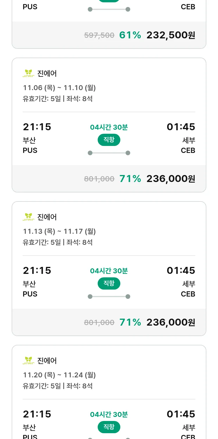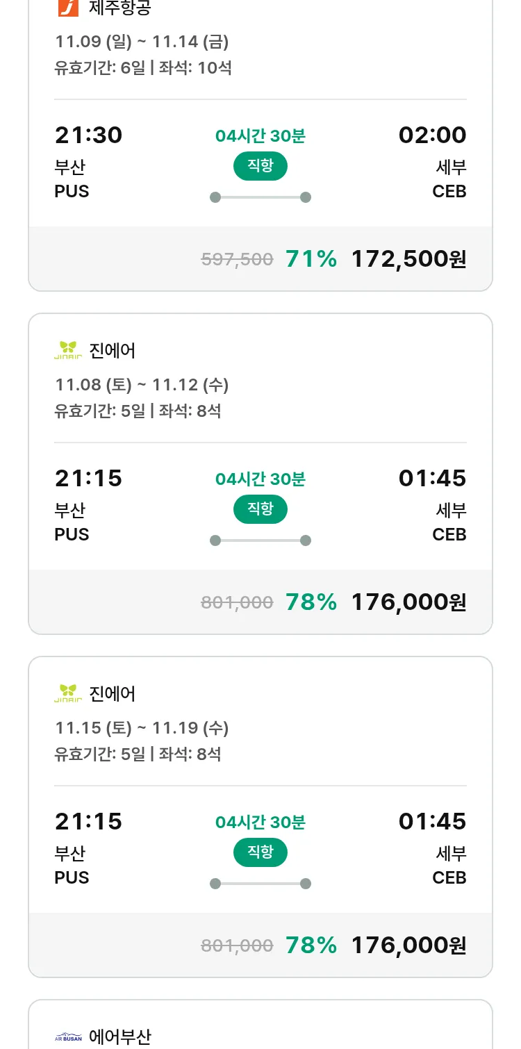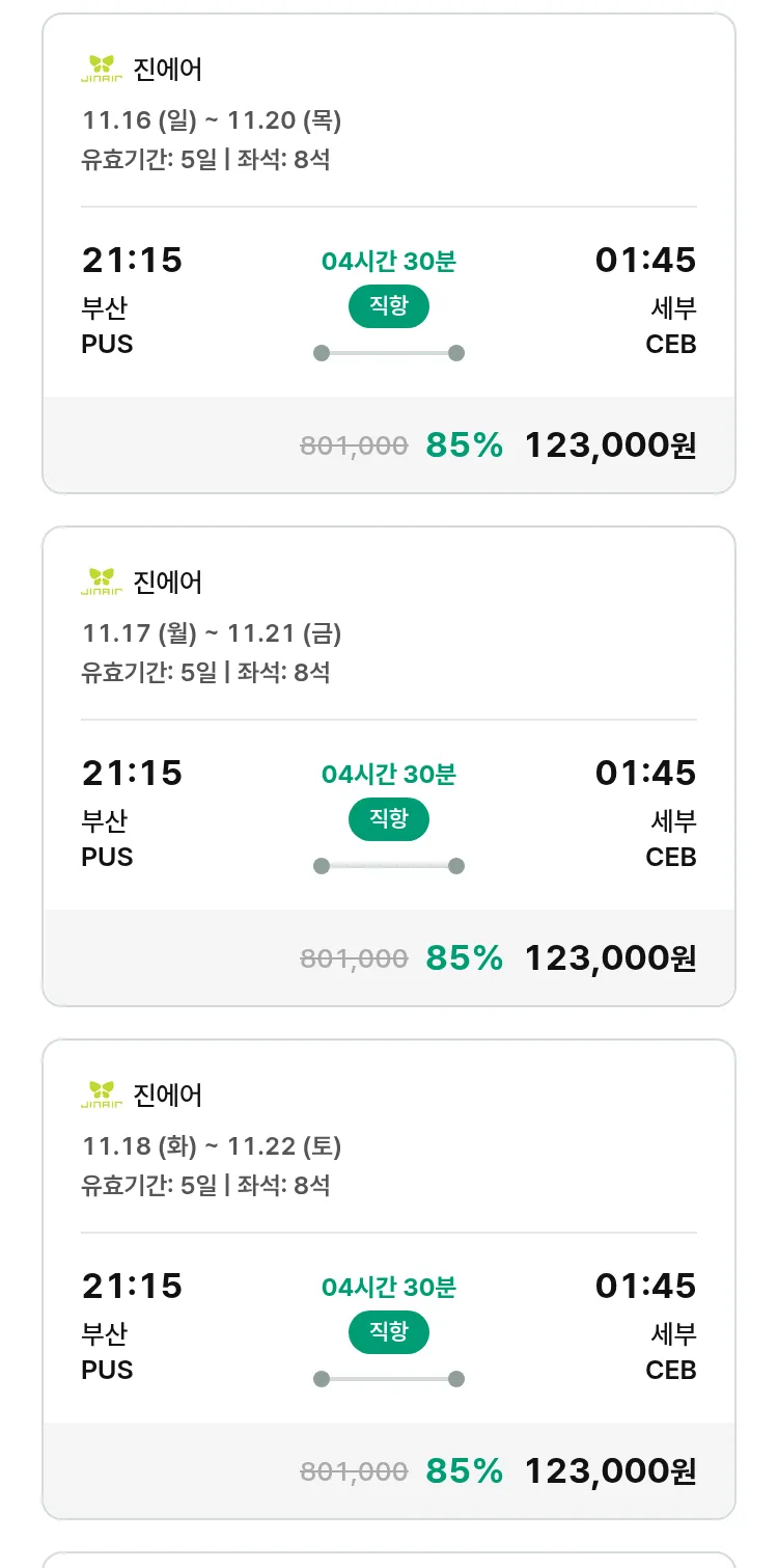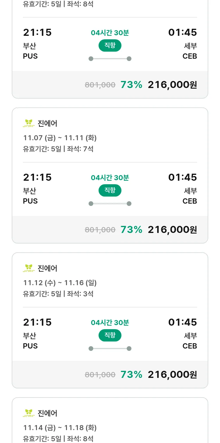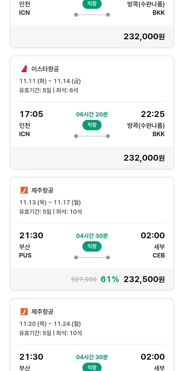 (10월 19일(일)) 땡처리 특가 항공권