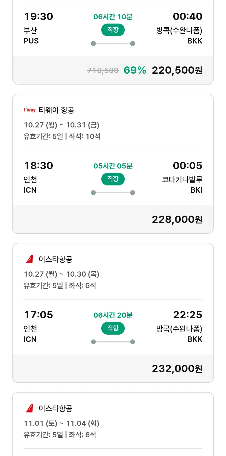 (10월 20일(월)) 땡처리 특가 항공권