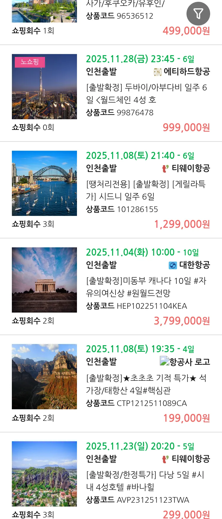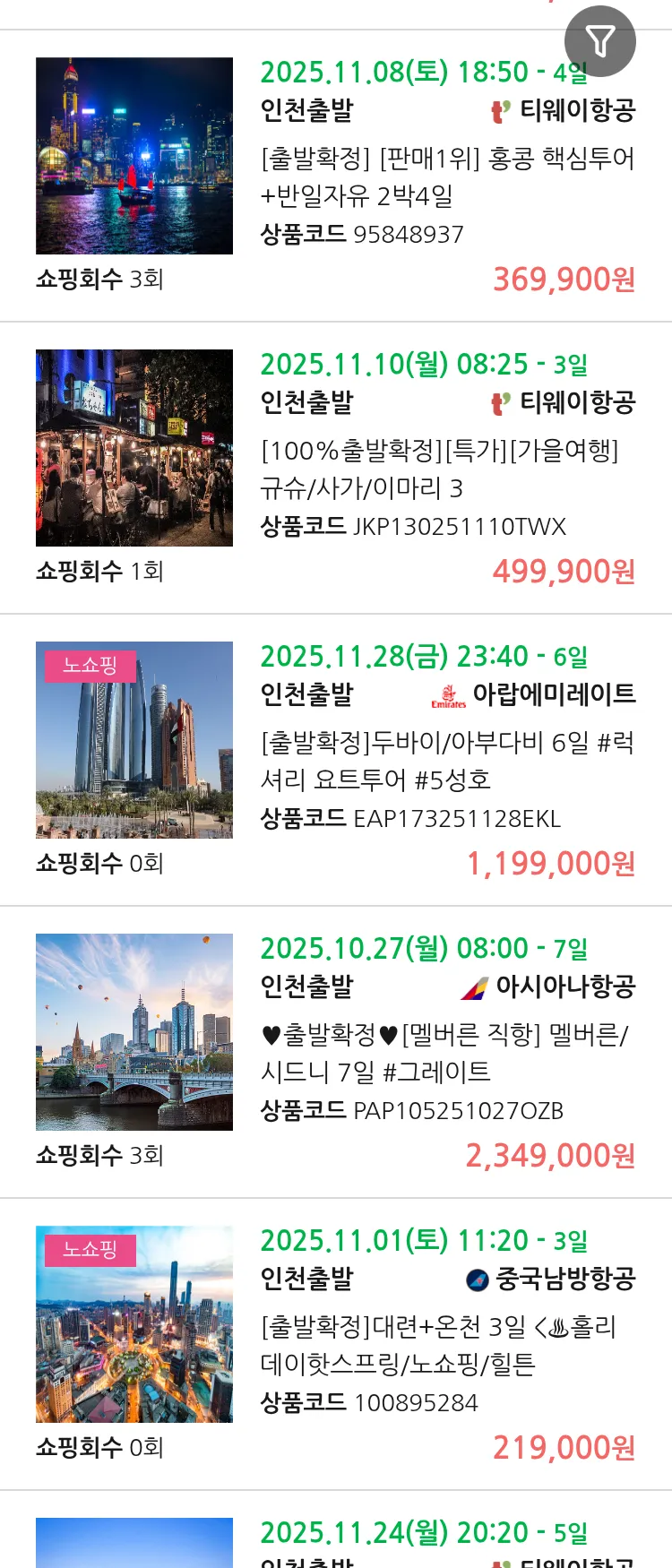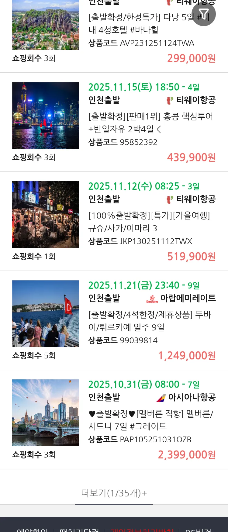 (10월 21일(화)) 땡처리 99.9% 확정 패키지