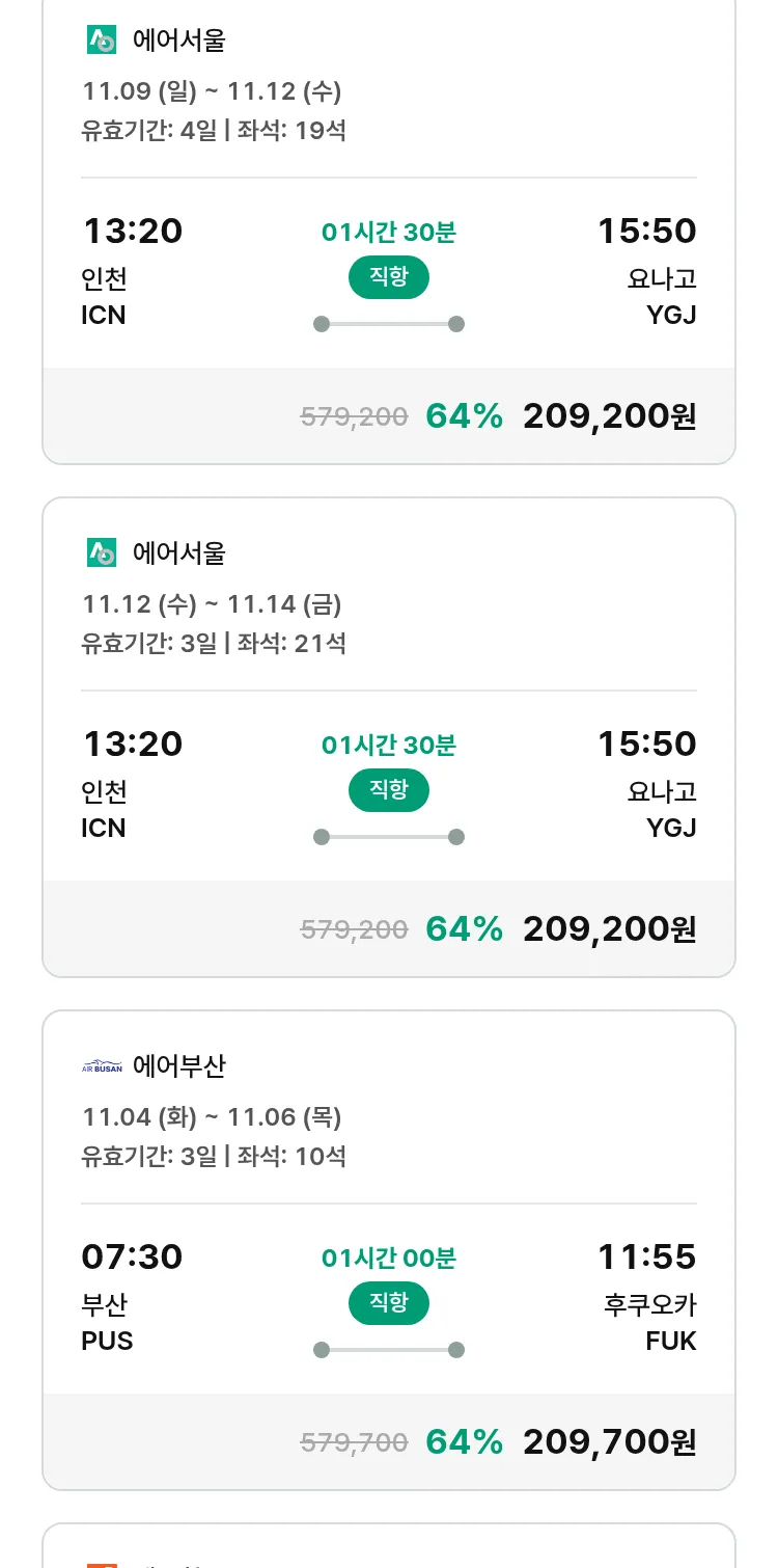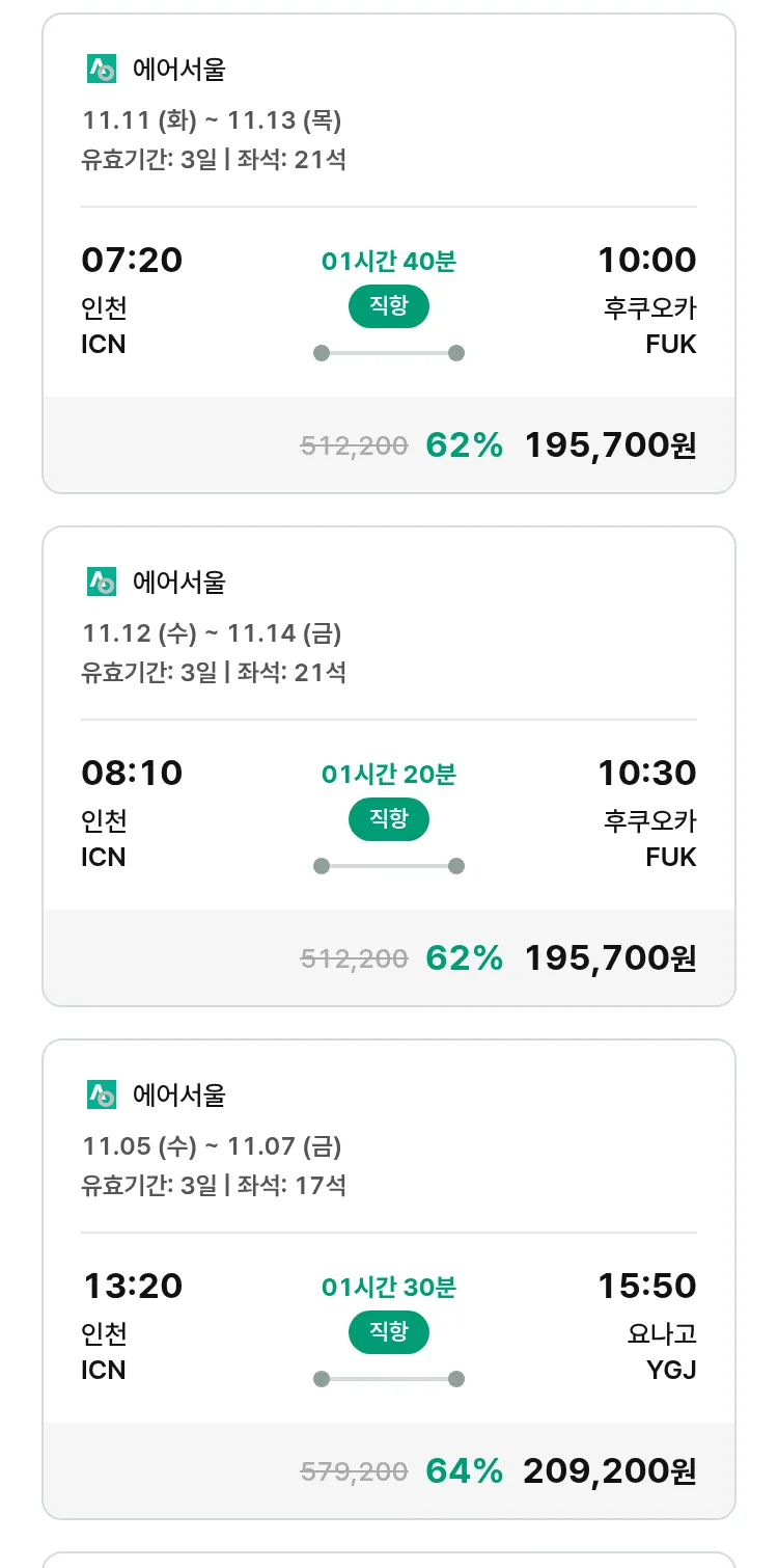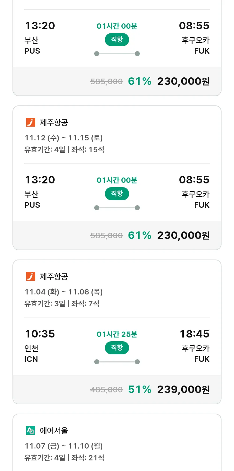(10월 22일(수)) 땡처리 특가 항공권