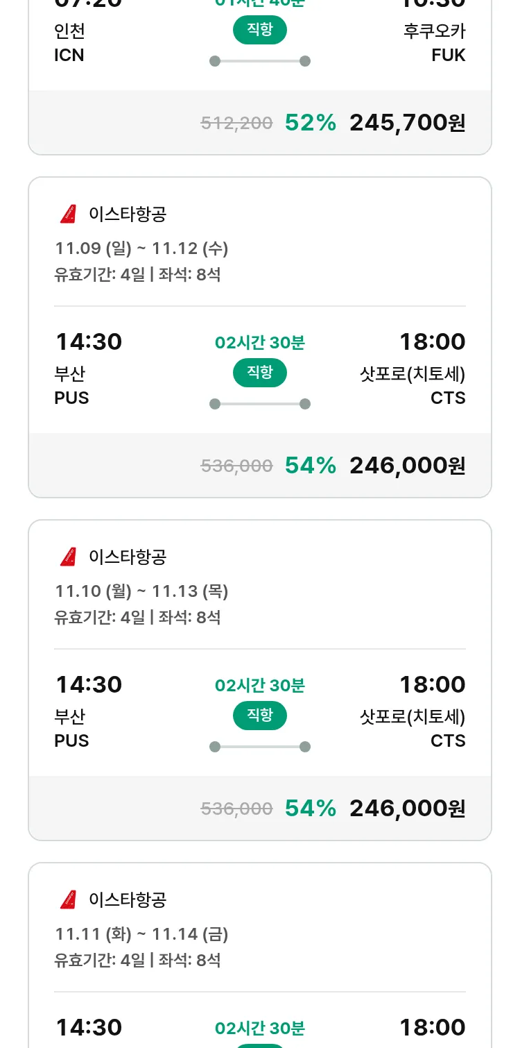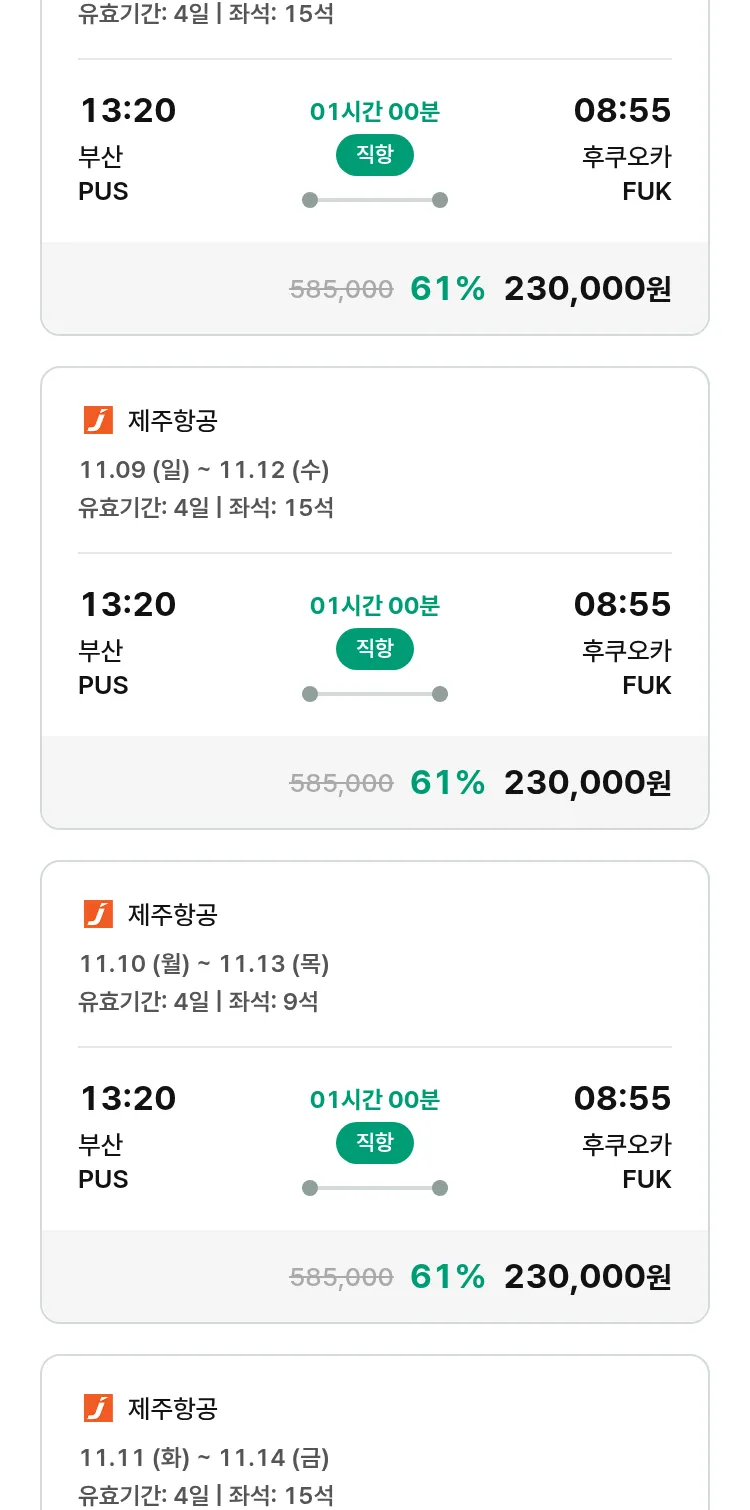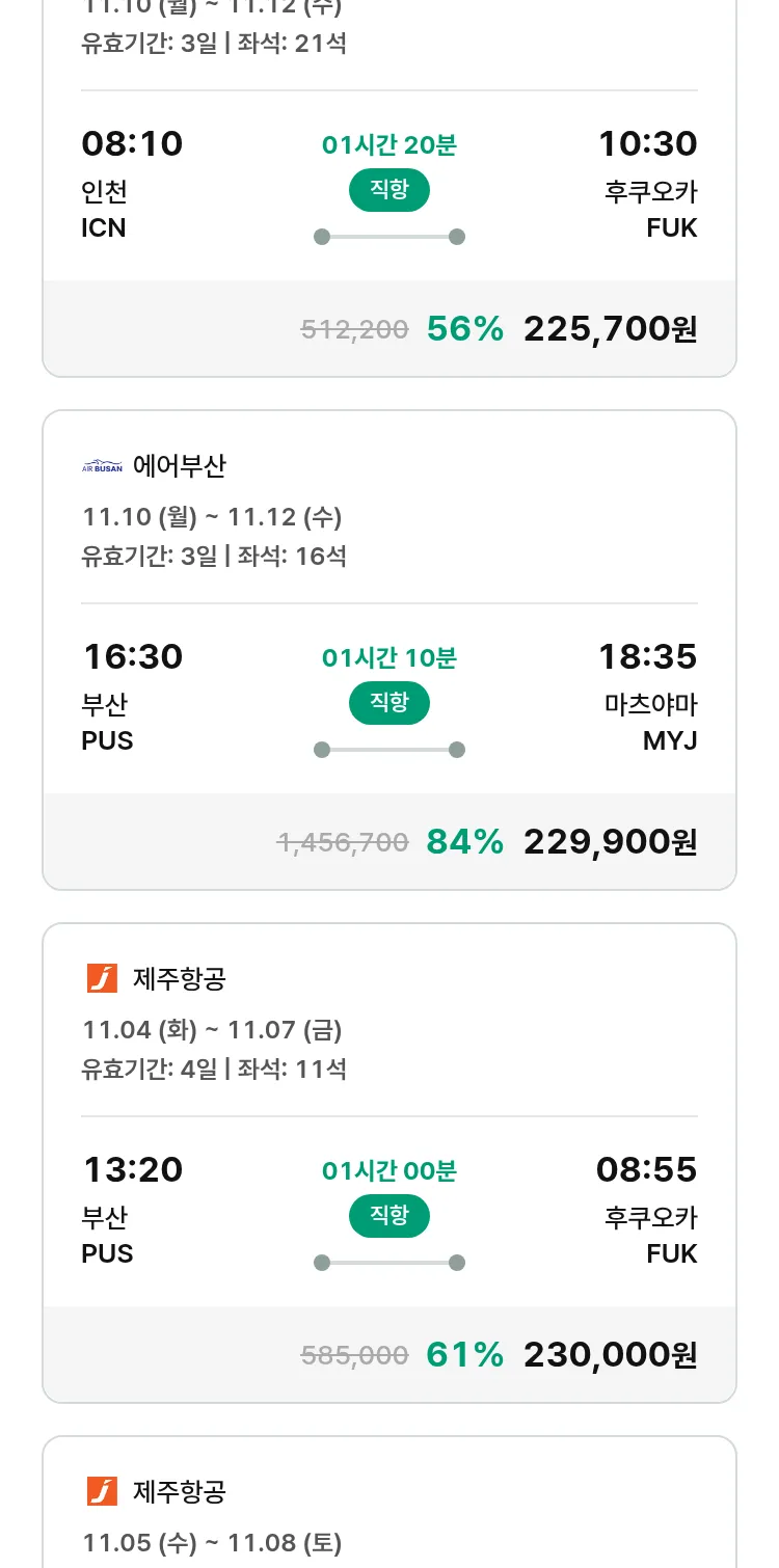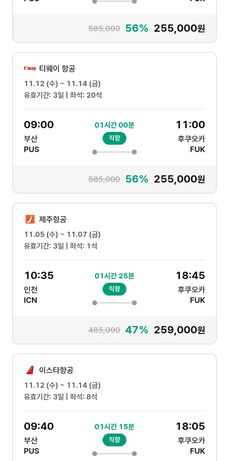 (10월 22일(수)) 땡처리 특가 항공권