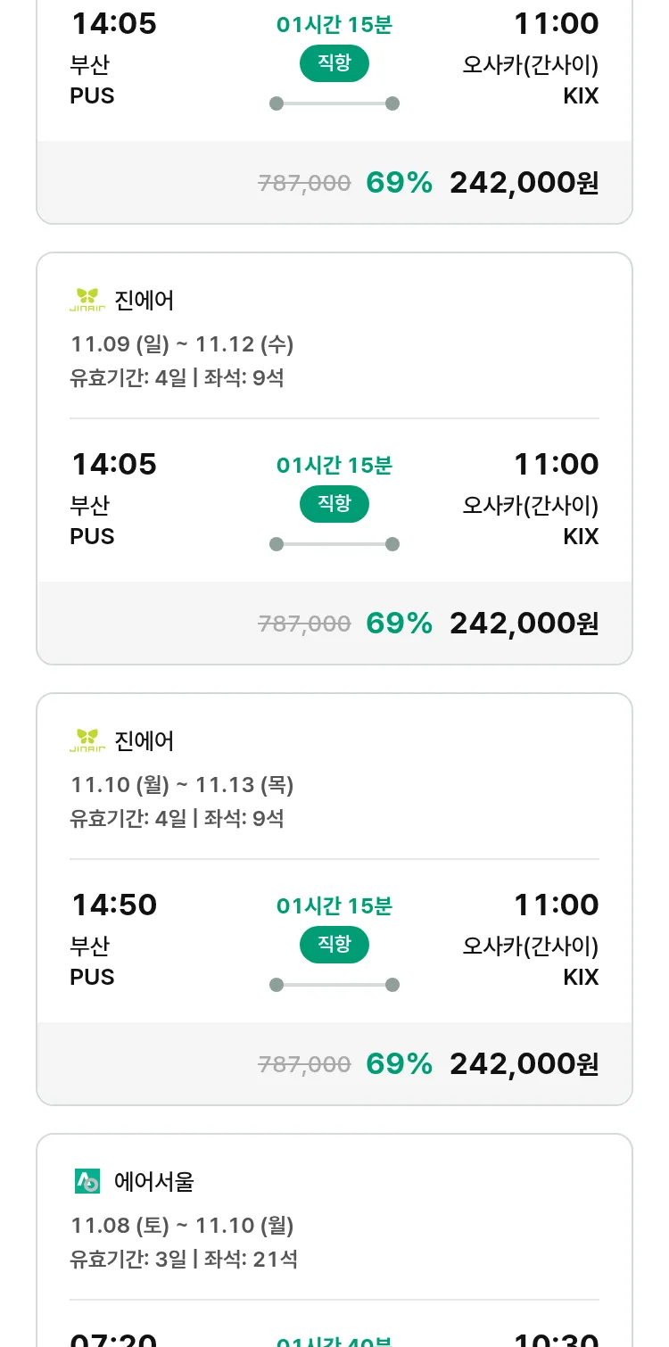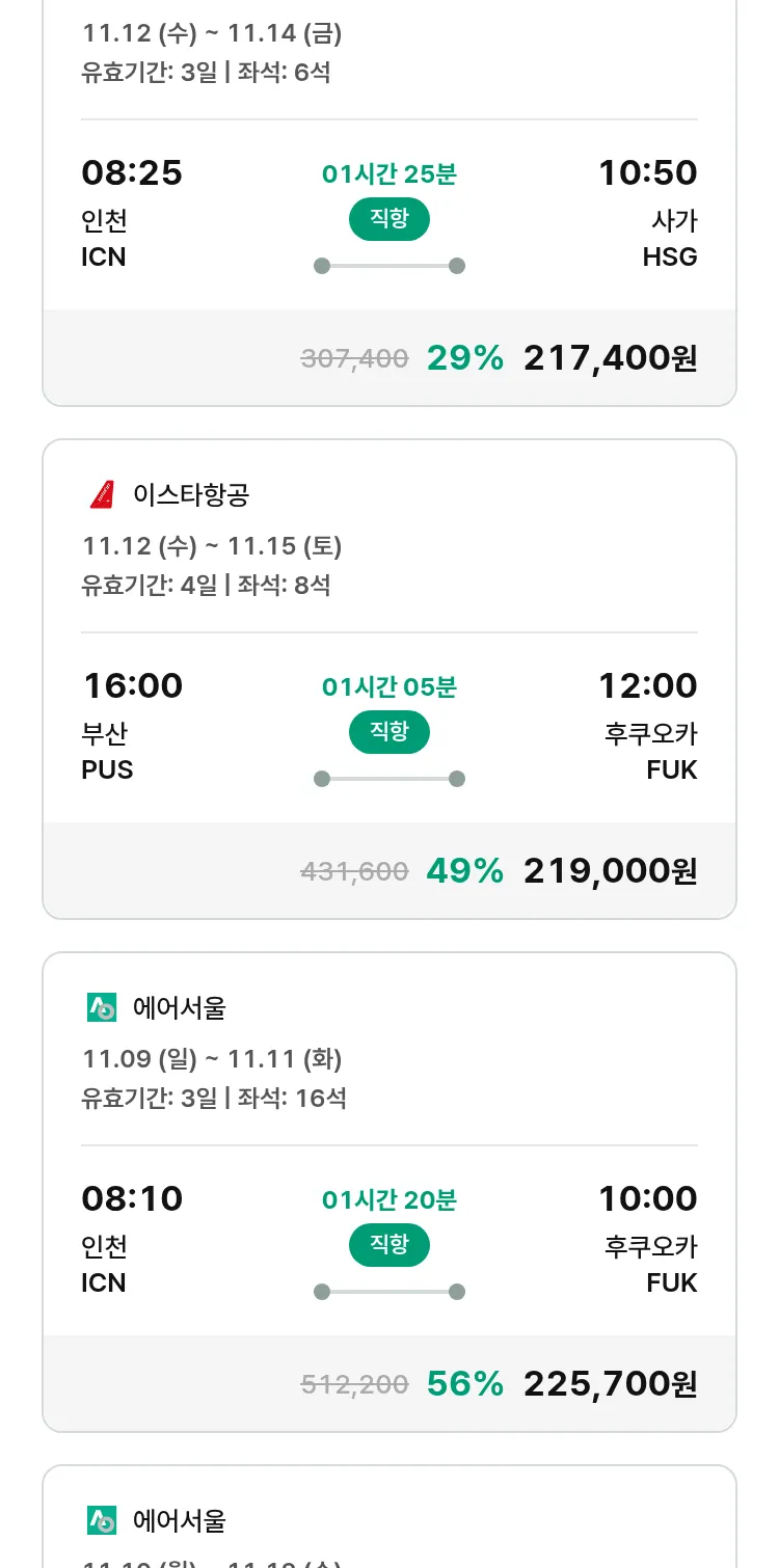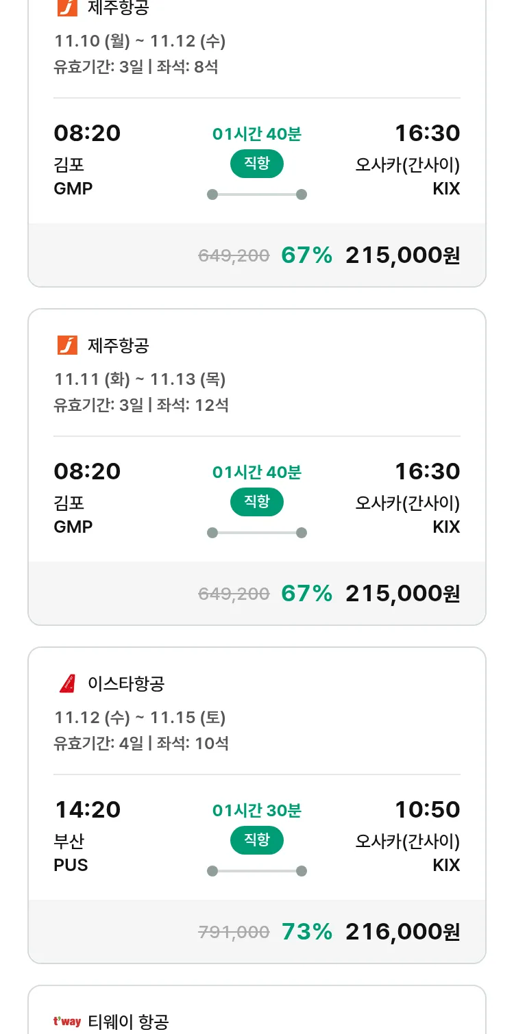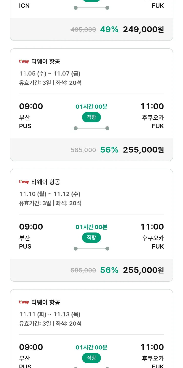 (10월 21일(화)) 땡처리 특가 항공권