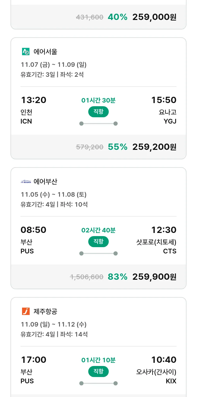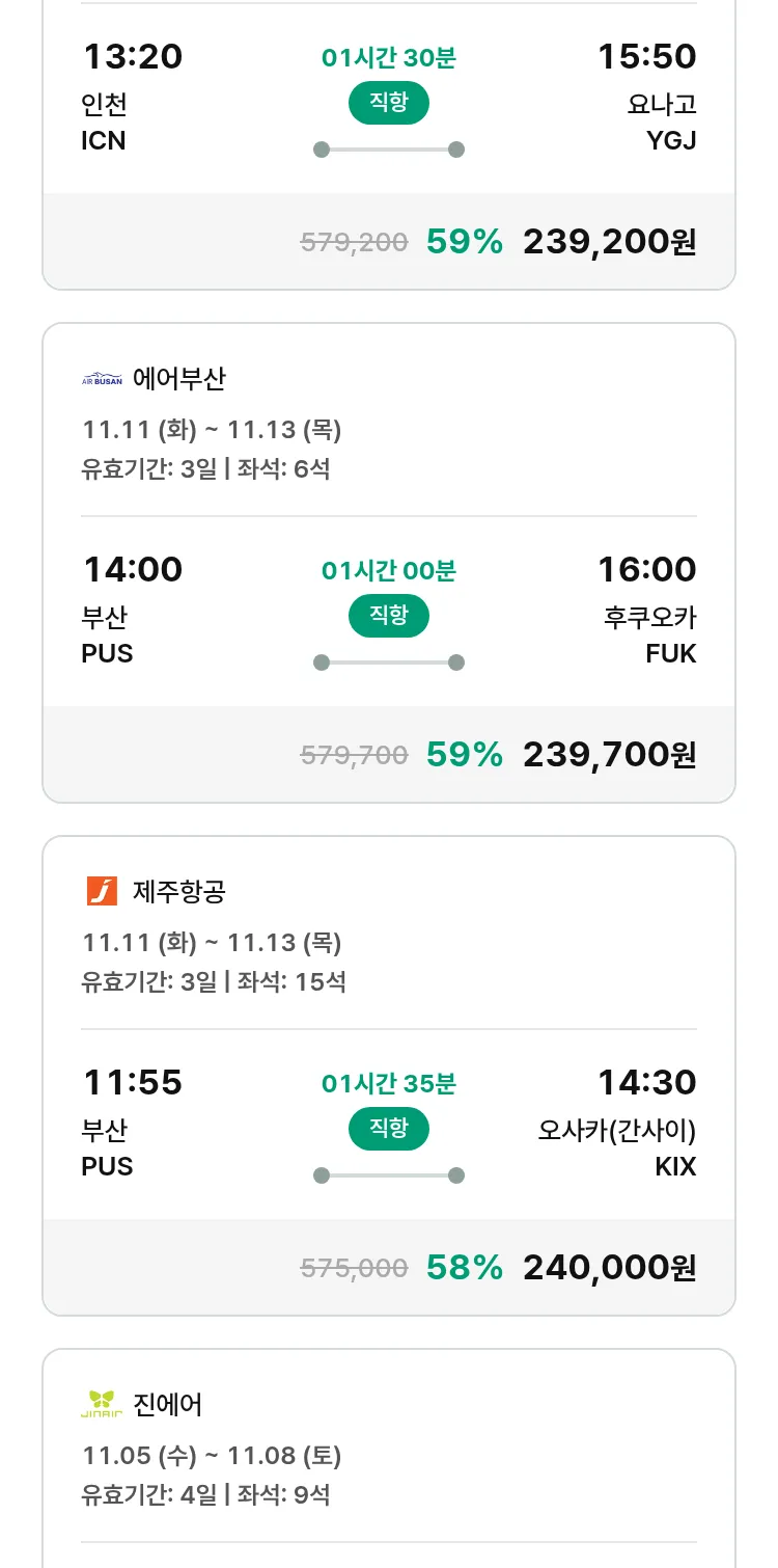 (10월 21일(화)) 모두투어 일본 특가 항공권