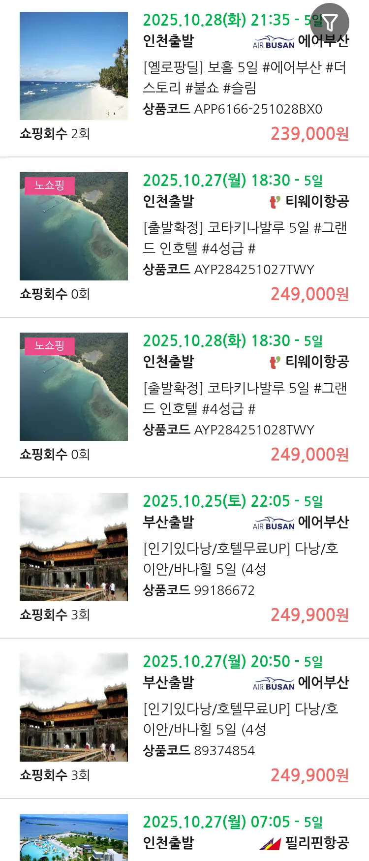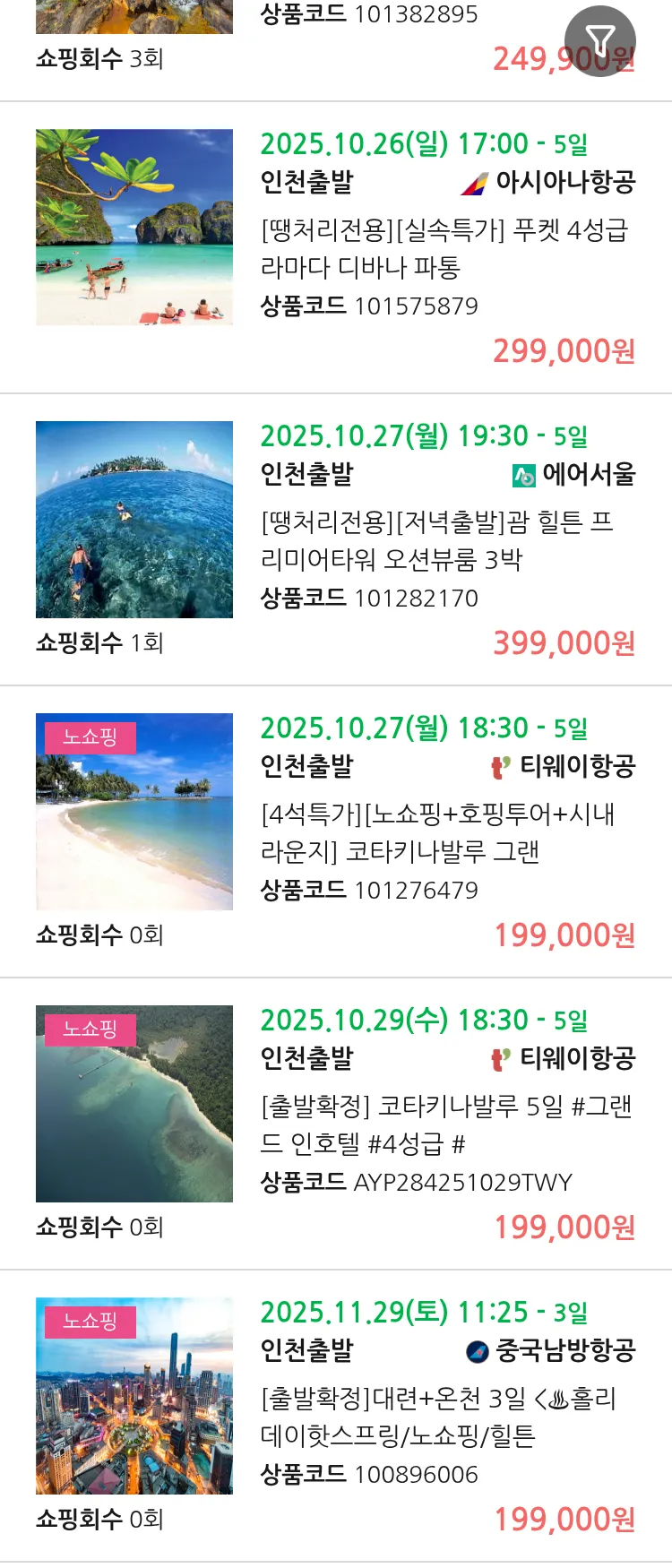 (10월 21일(화)) 땡처리 99.9% 확정 패키지