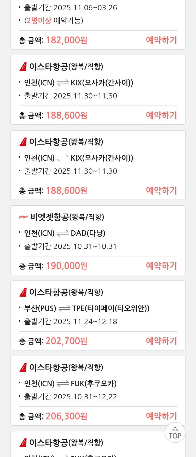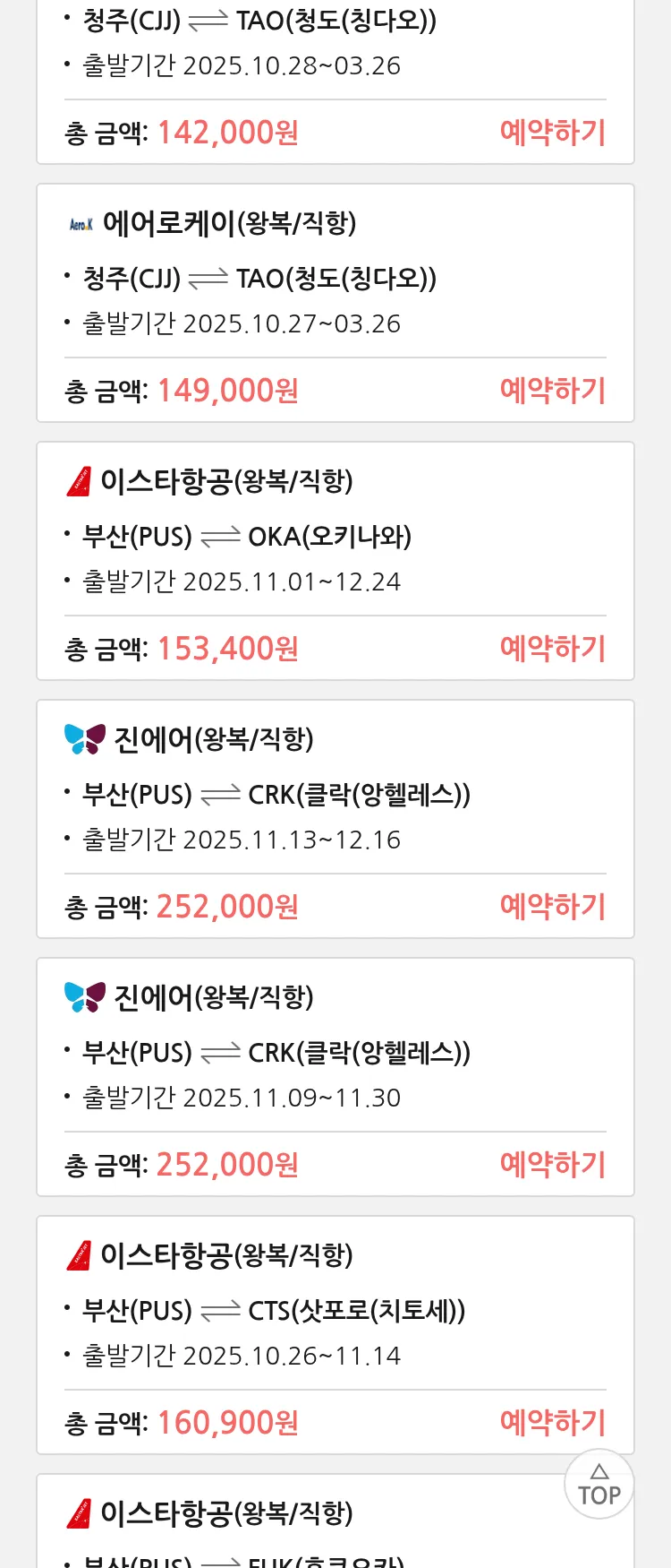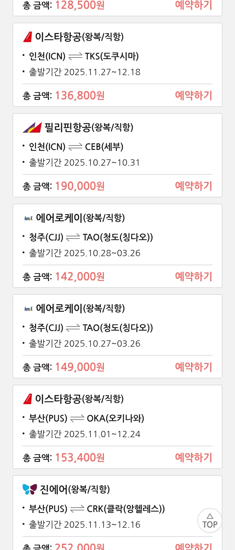 (10월 22일(수)) 땡처리 특가 항공권
