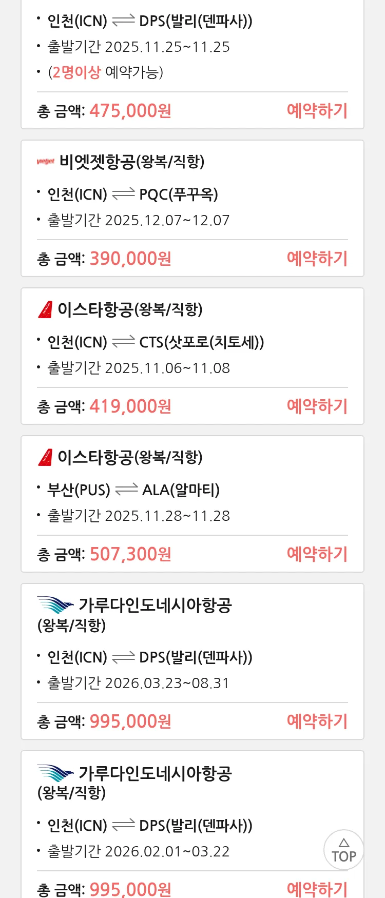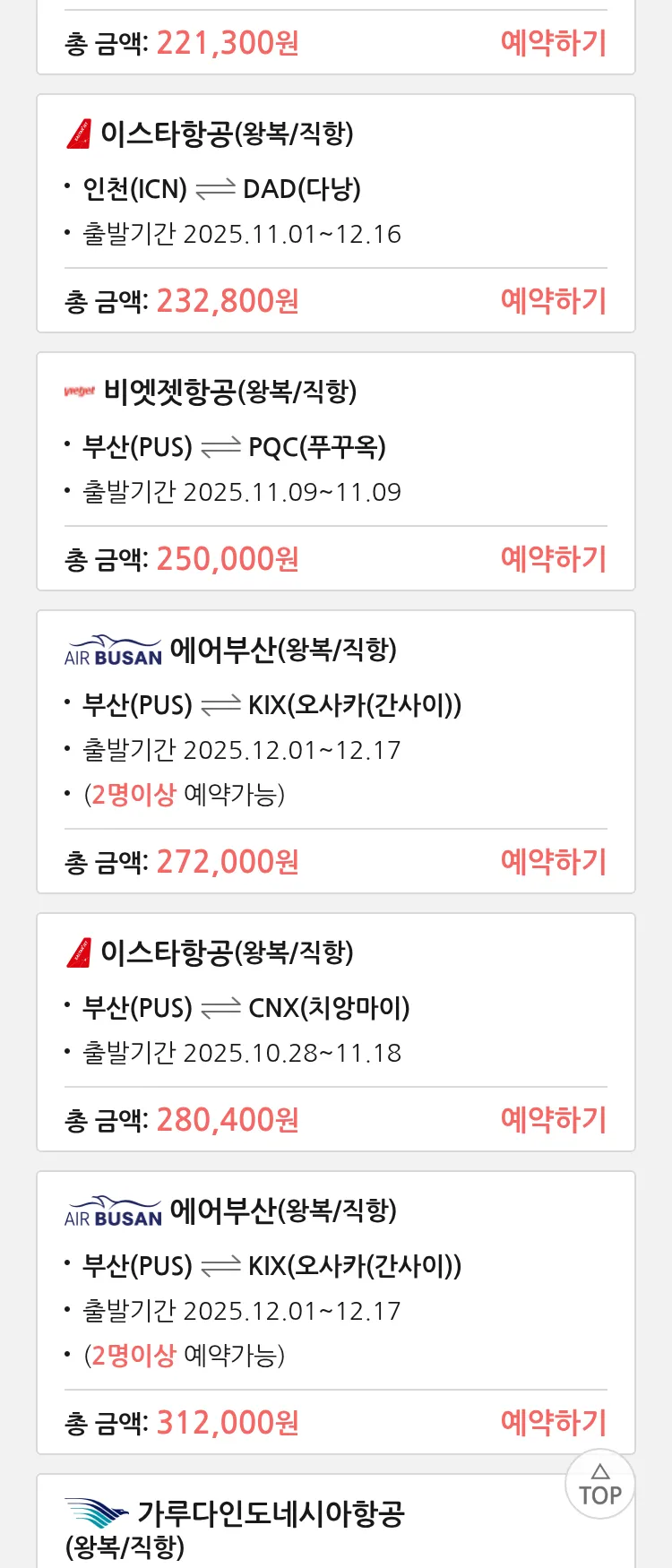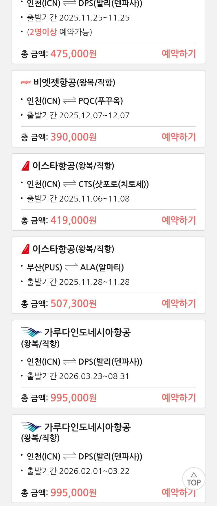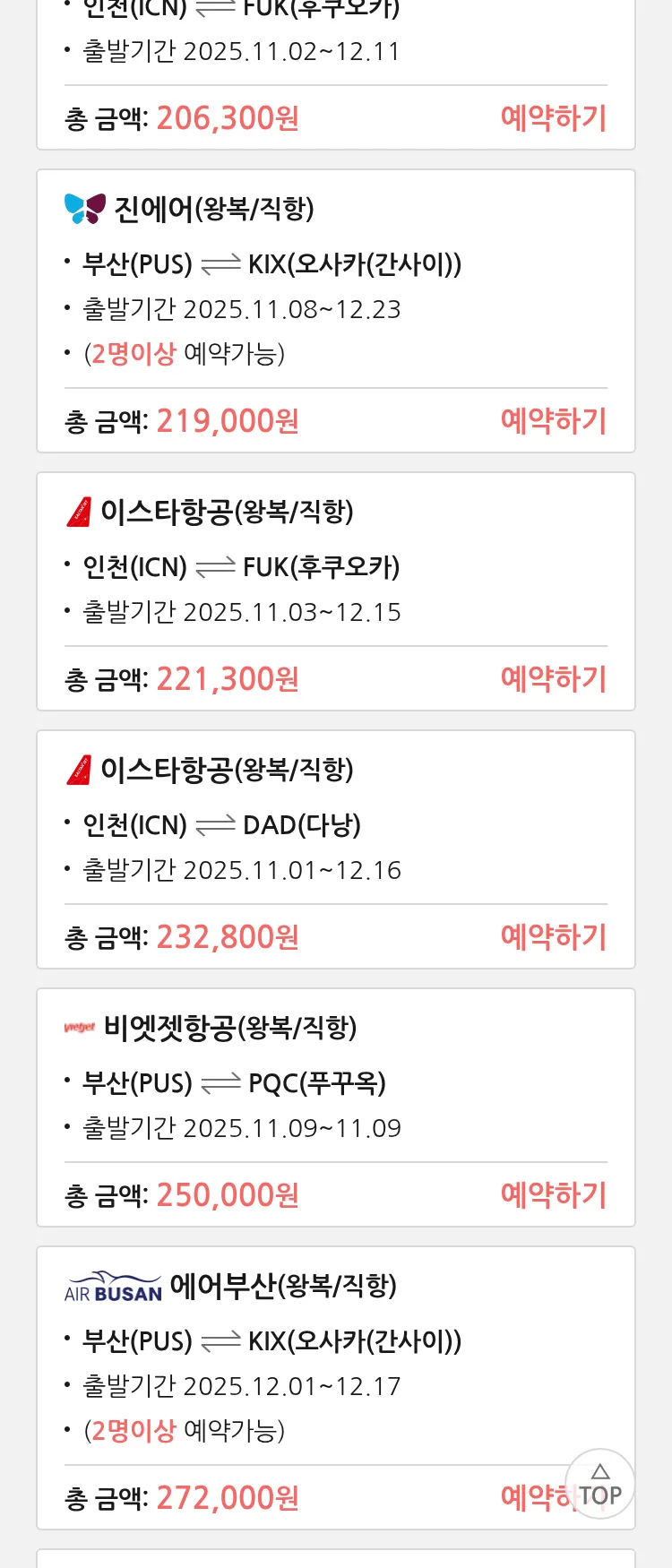 (10월 22일(수)) 땡처리 특가 항공권