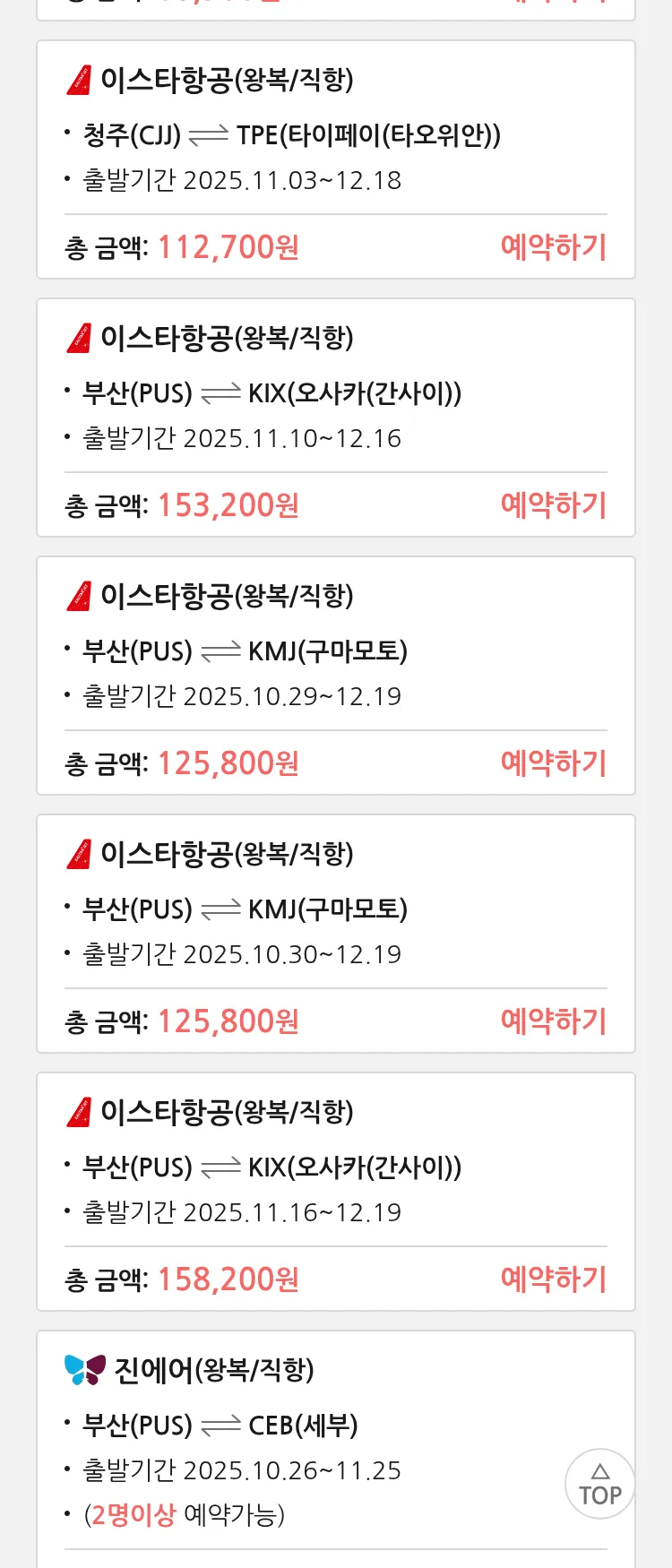 (10월 21일(화)) 땡처리 특가 항공권