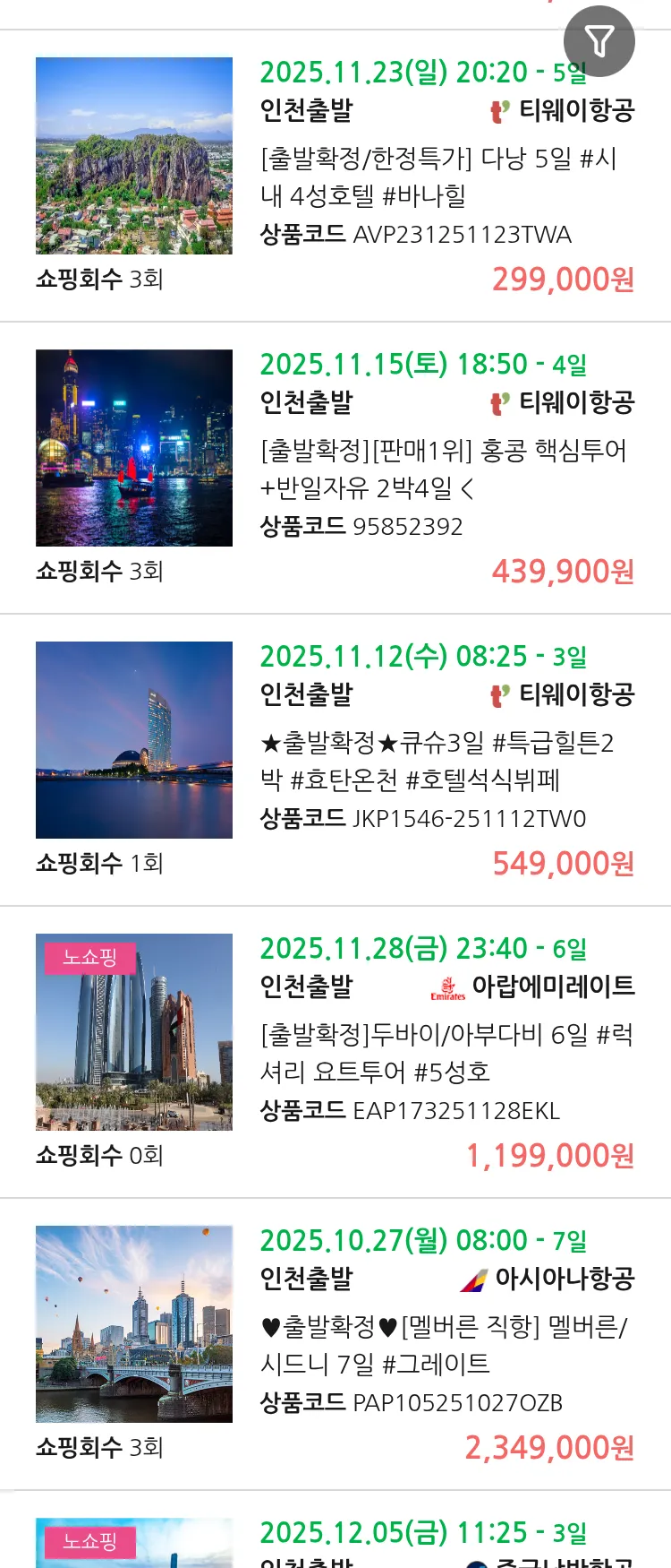 (10월 22일(수)) 땡처리 99.9% 확정 패키지