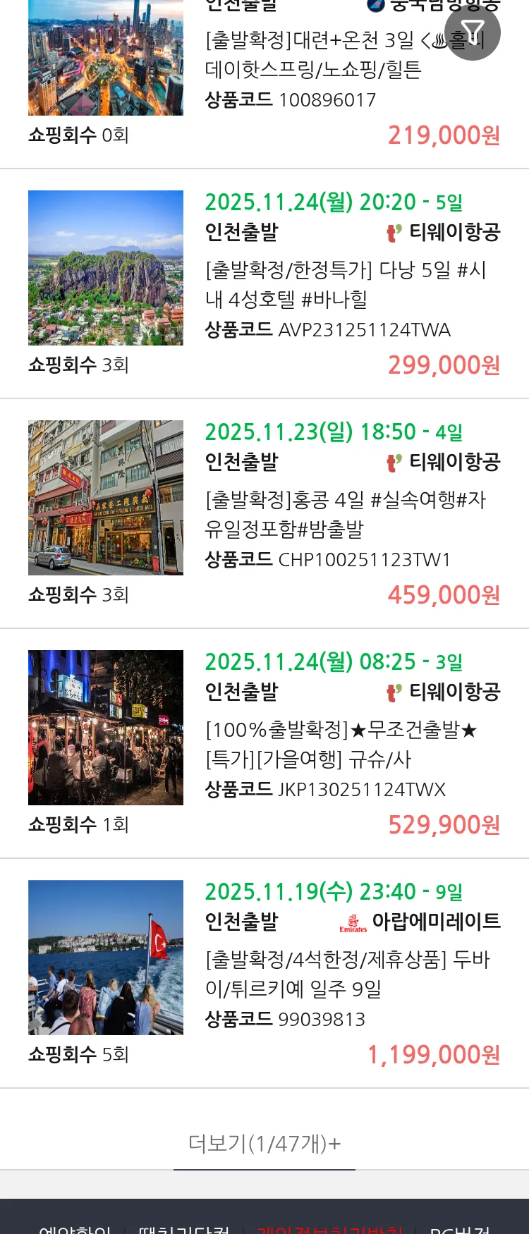 (10월 23일(목)) 땡처리 99.9% 확정 패키지
