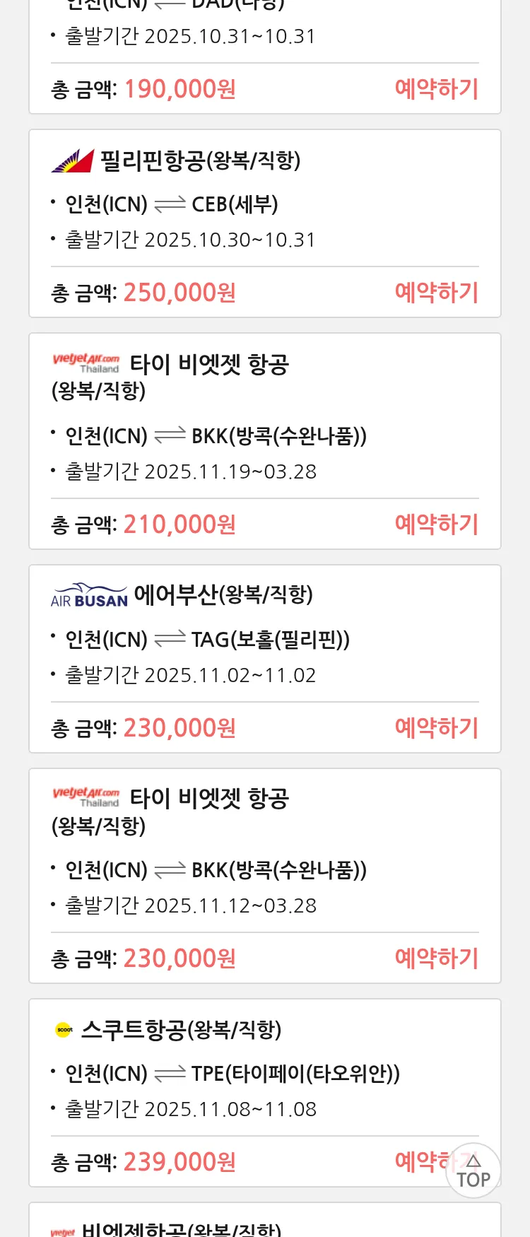 (10월 25일(토)) 모두투어 동남아 특가 항공권