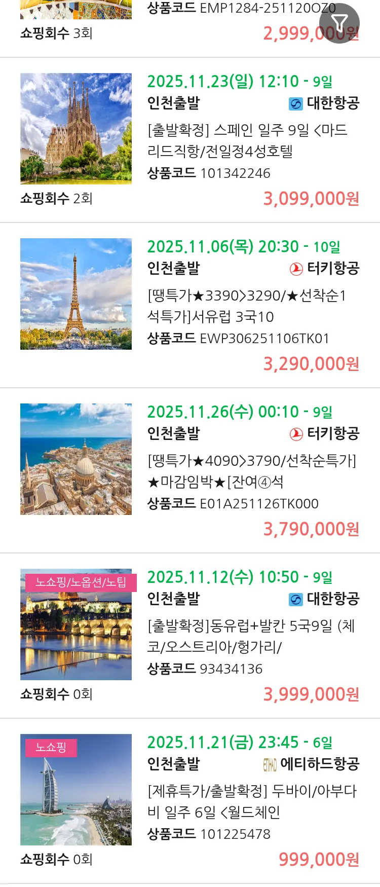 (10월 25일(토)) 땡처리 유럽 긴급 패키지