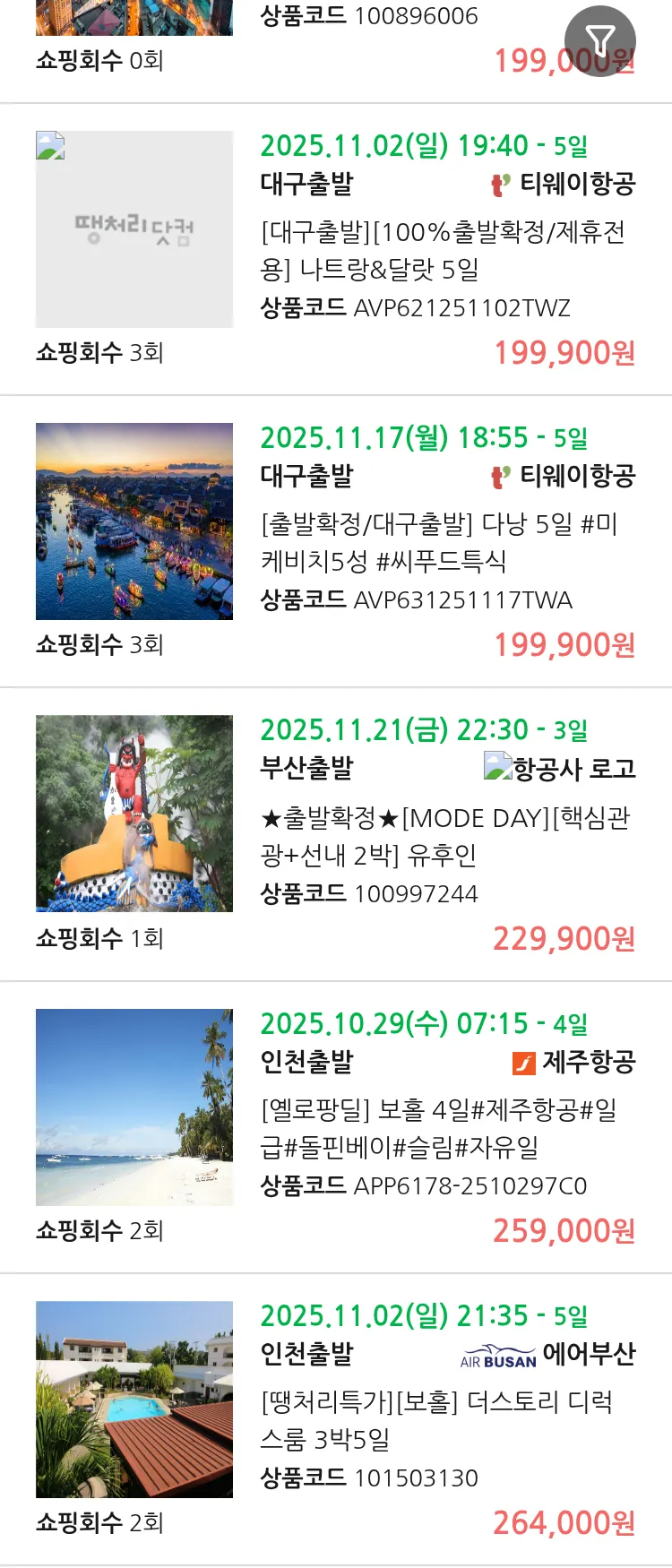 (10월 25일(토)) 땡처리 연휴 패키지 패키지
