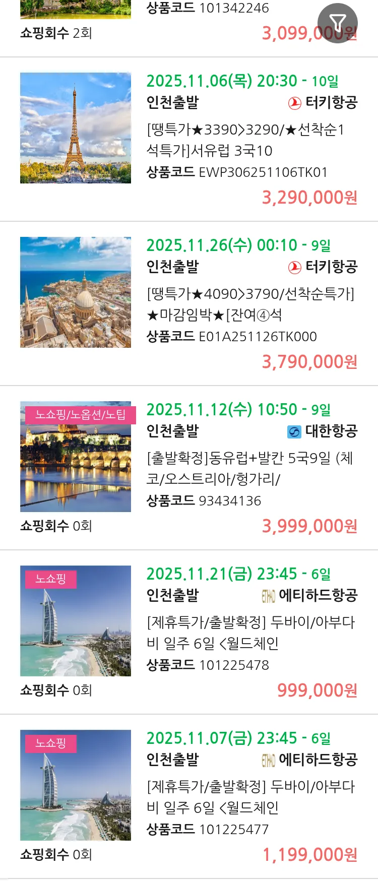 (10월 26일(일)) 땡처리 유럽 긴급 패키지
