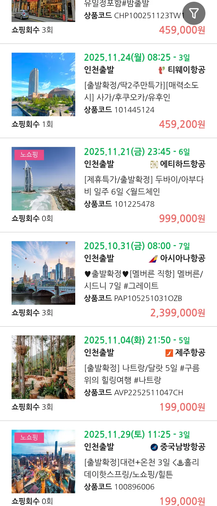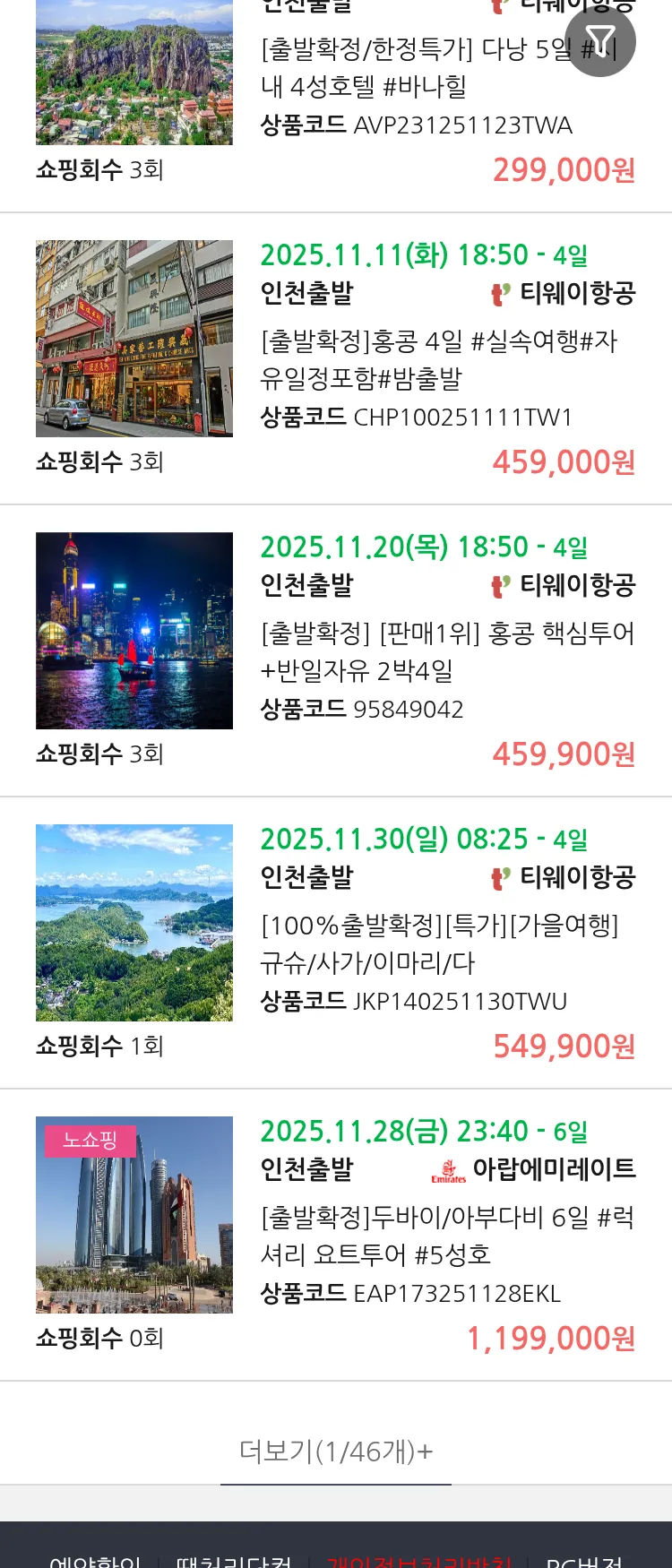 (10월 25일(토)) 땡처리 연휴 패키지 패키지
