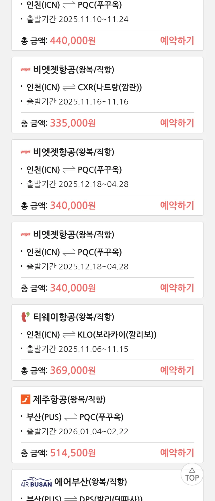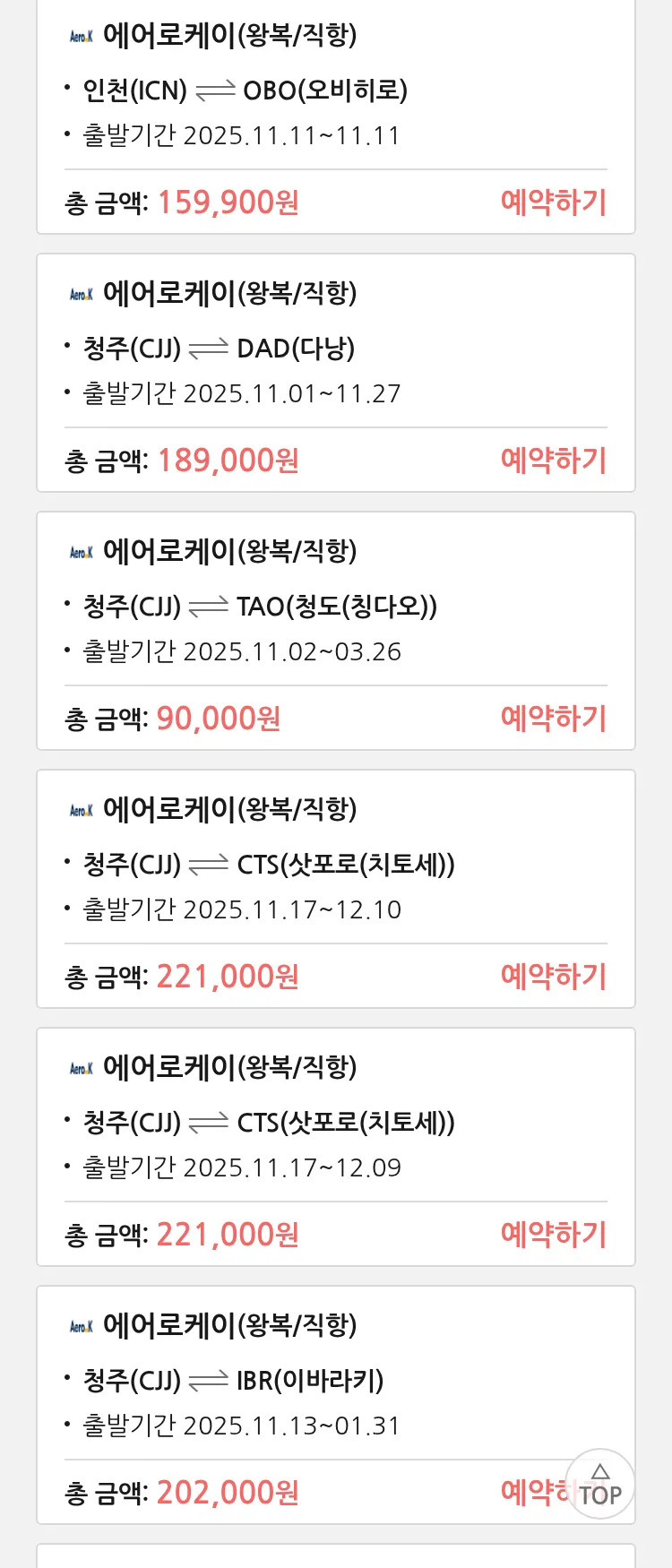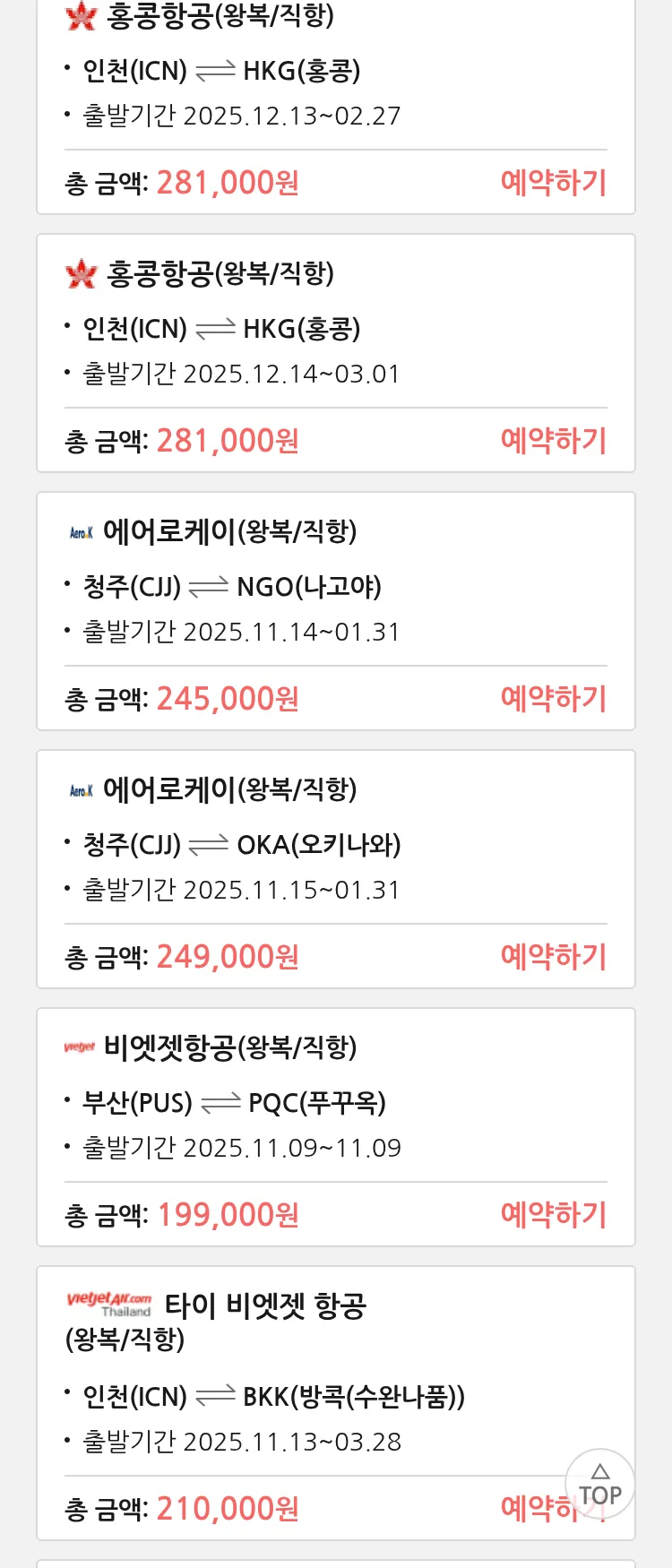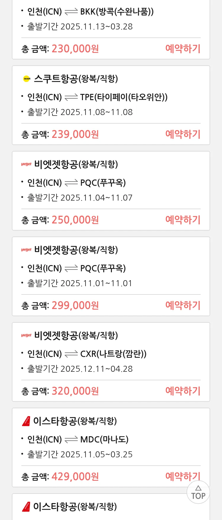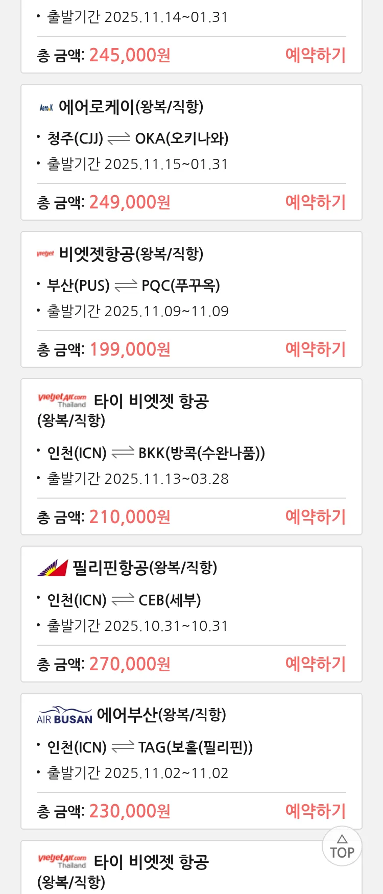 (10월 28일(화)) 땡처리 특가 항공권