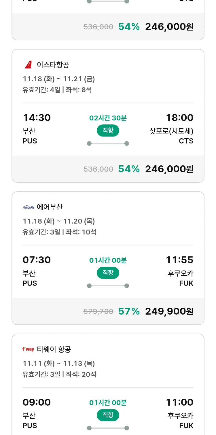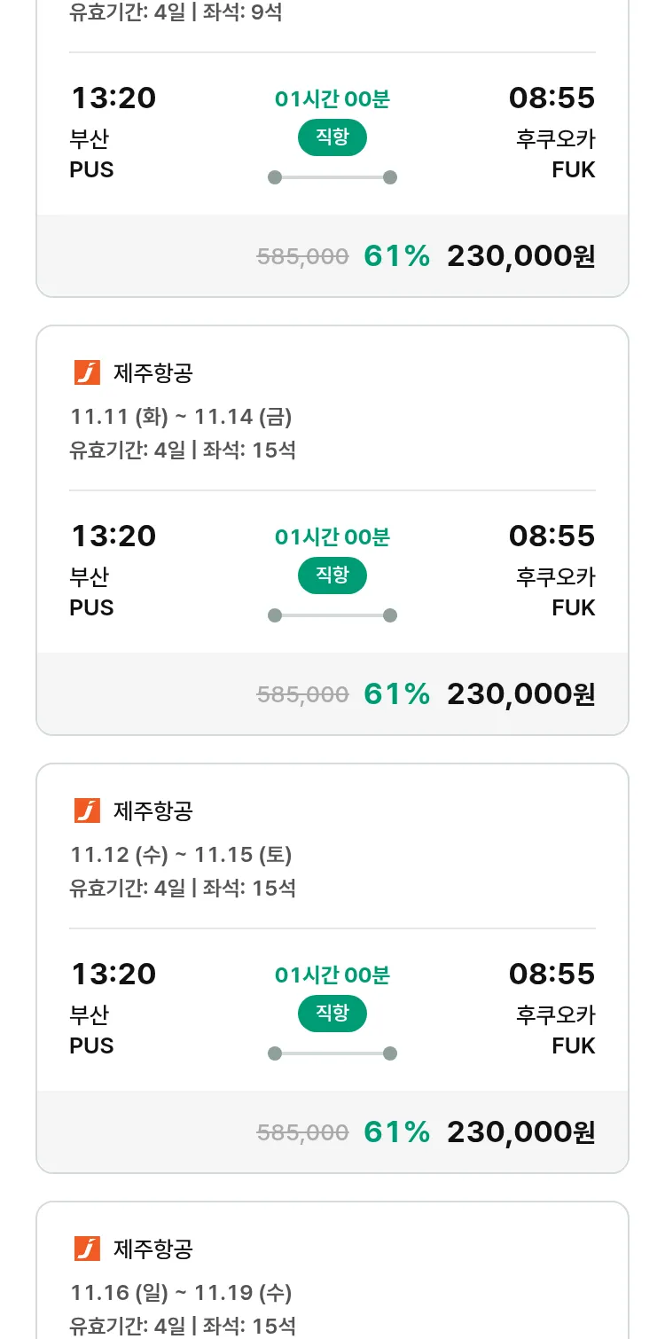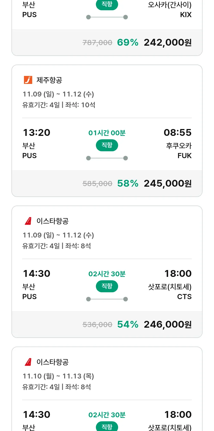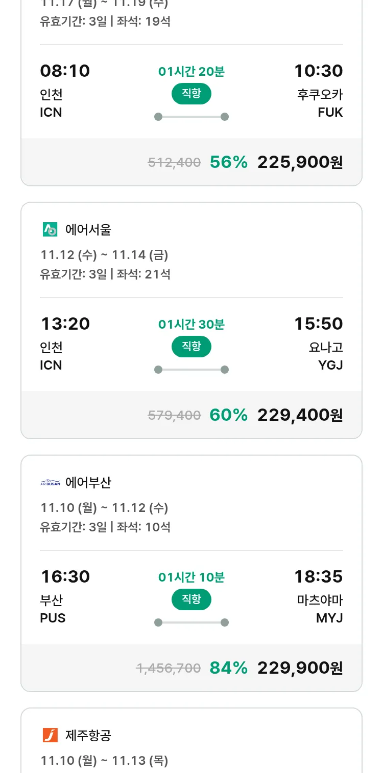 (10월 28일(화)) 모두투어 일본 특가 항공권