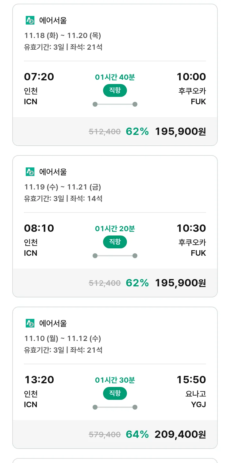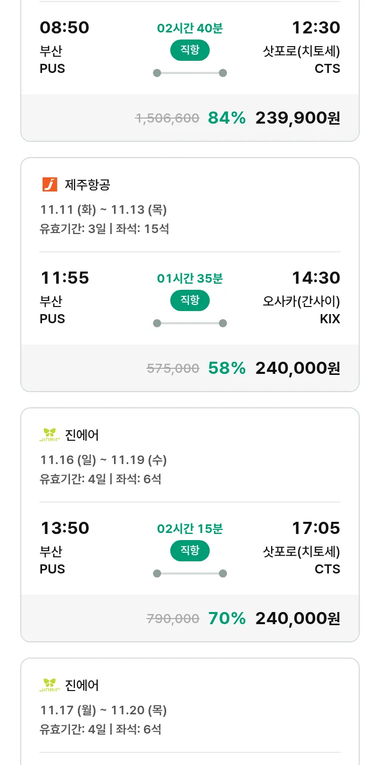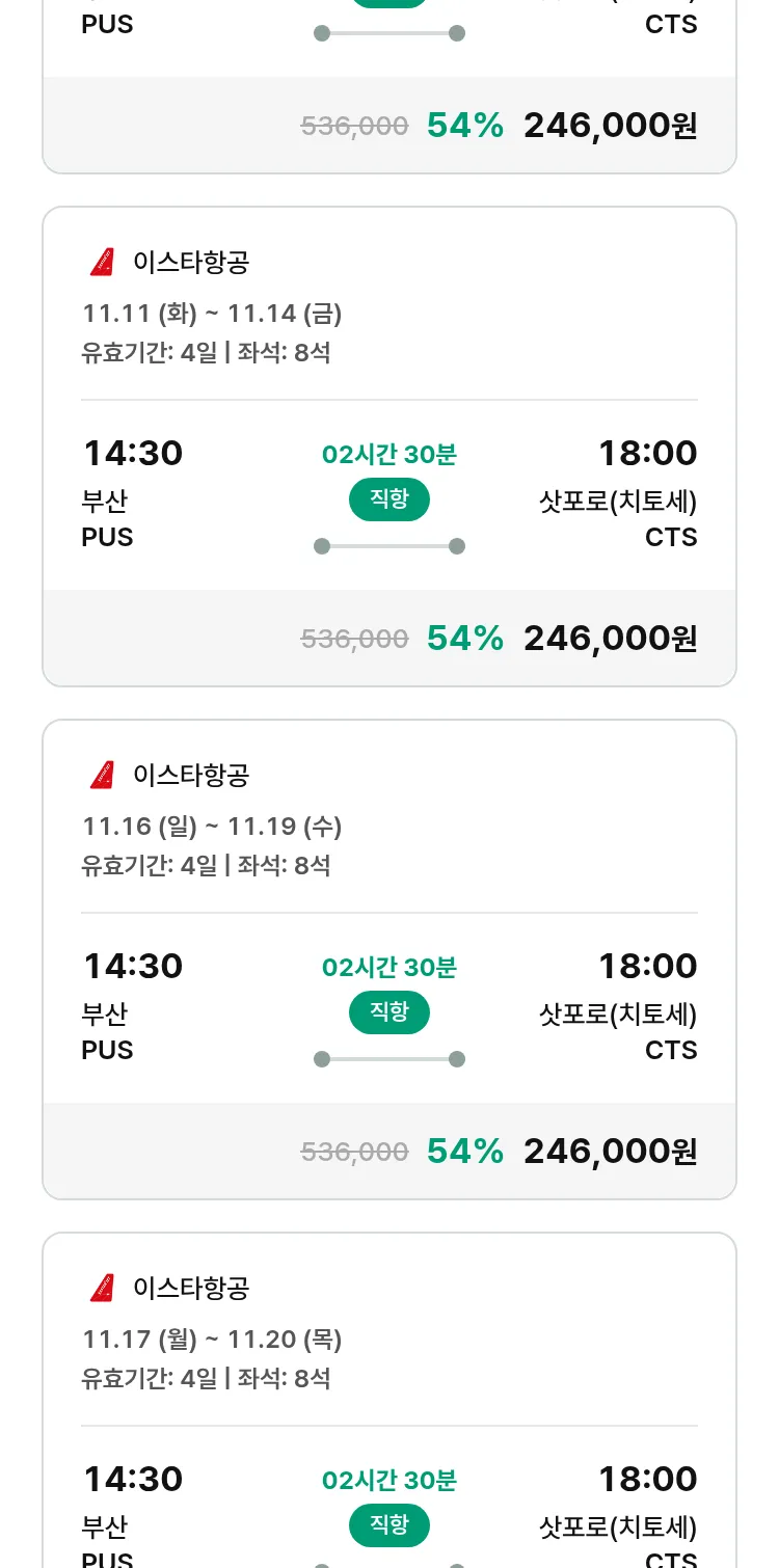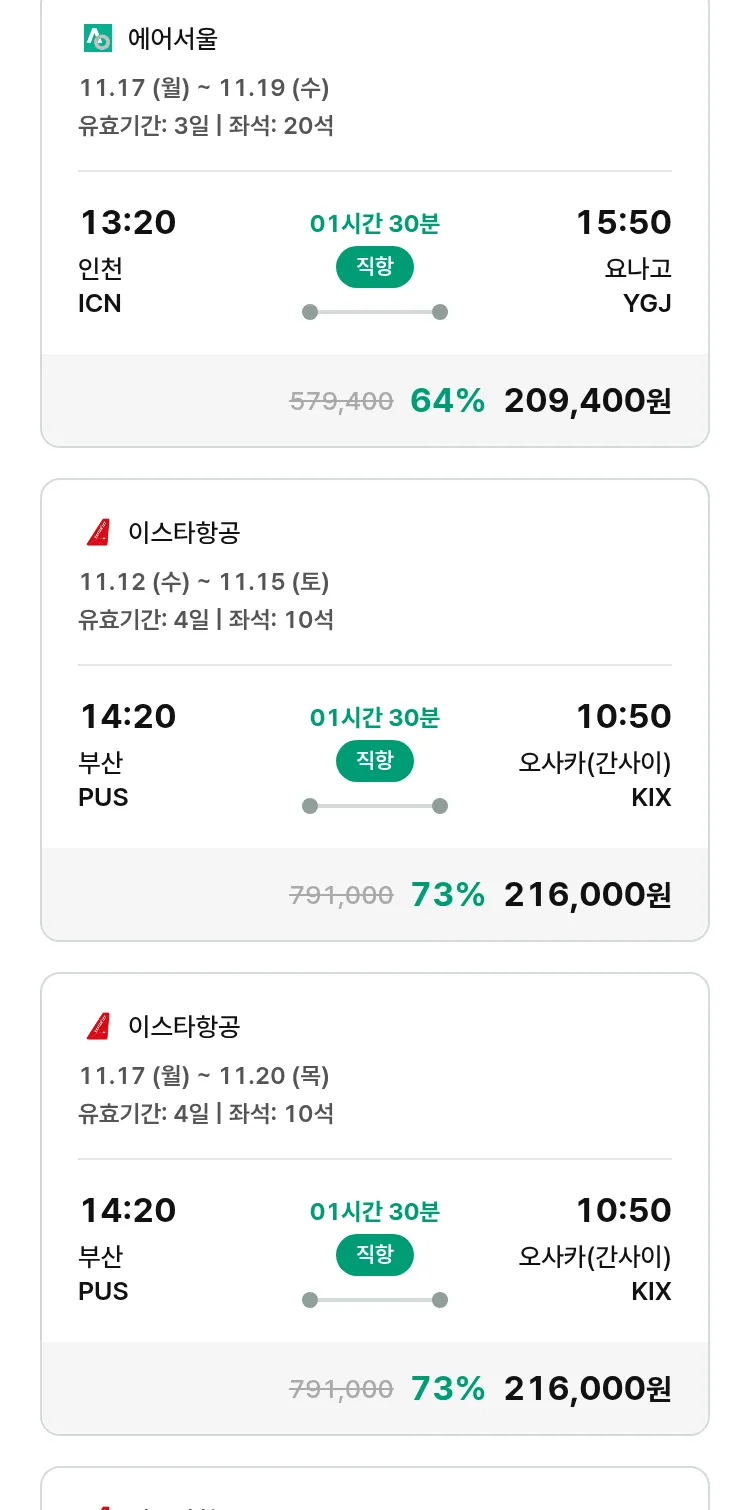 (10월 28일(화)) 모두투어 일본 특가 항공권