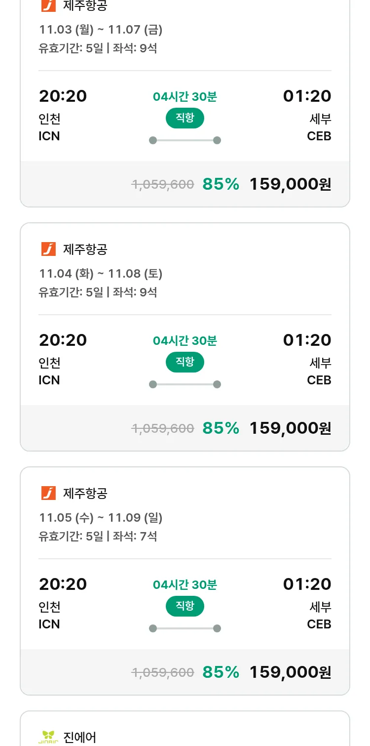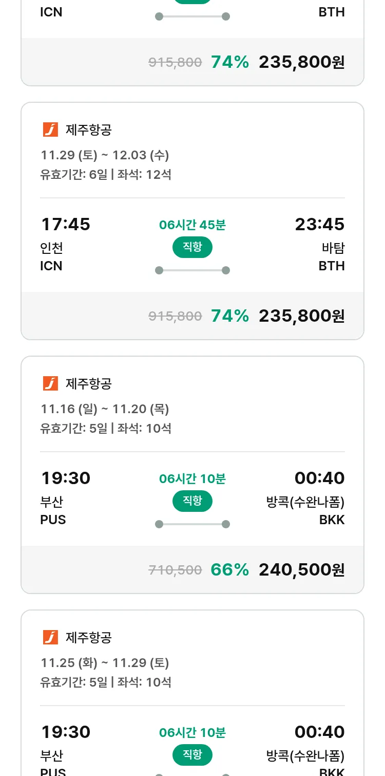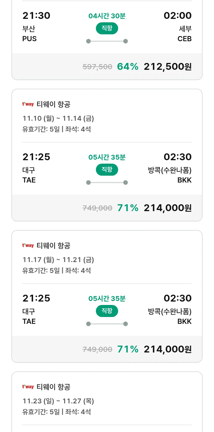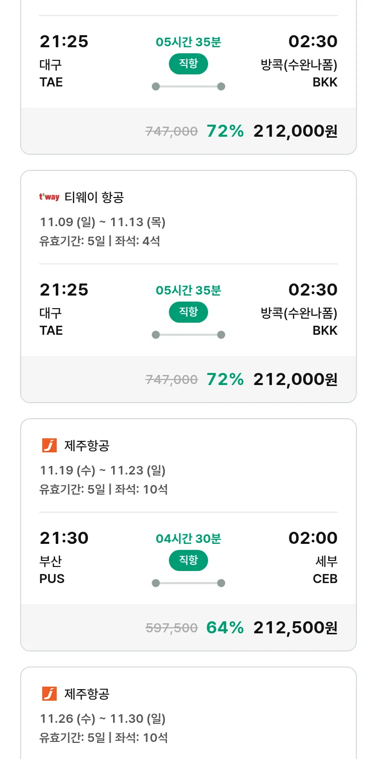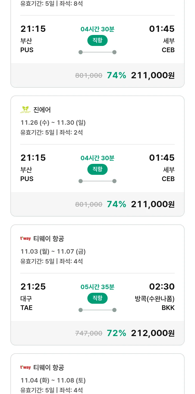 (10월 30일(목)) 땡처리 특가 항공권