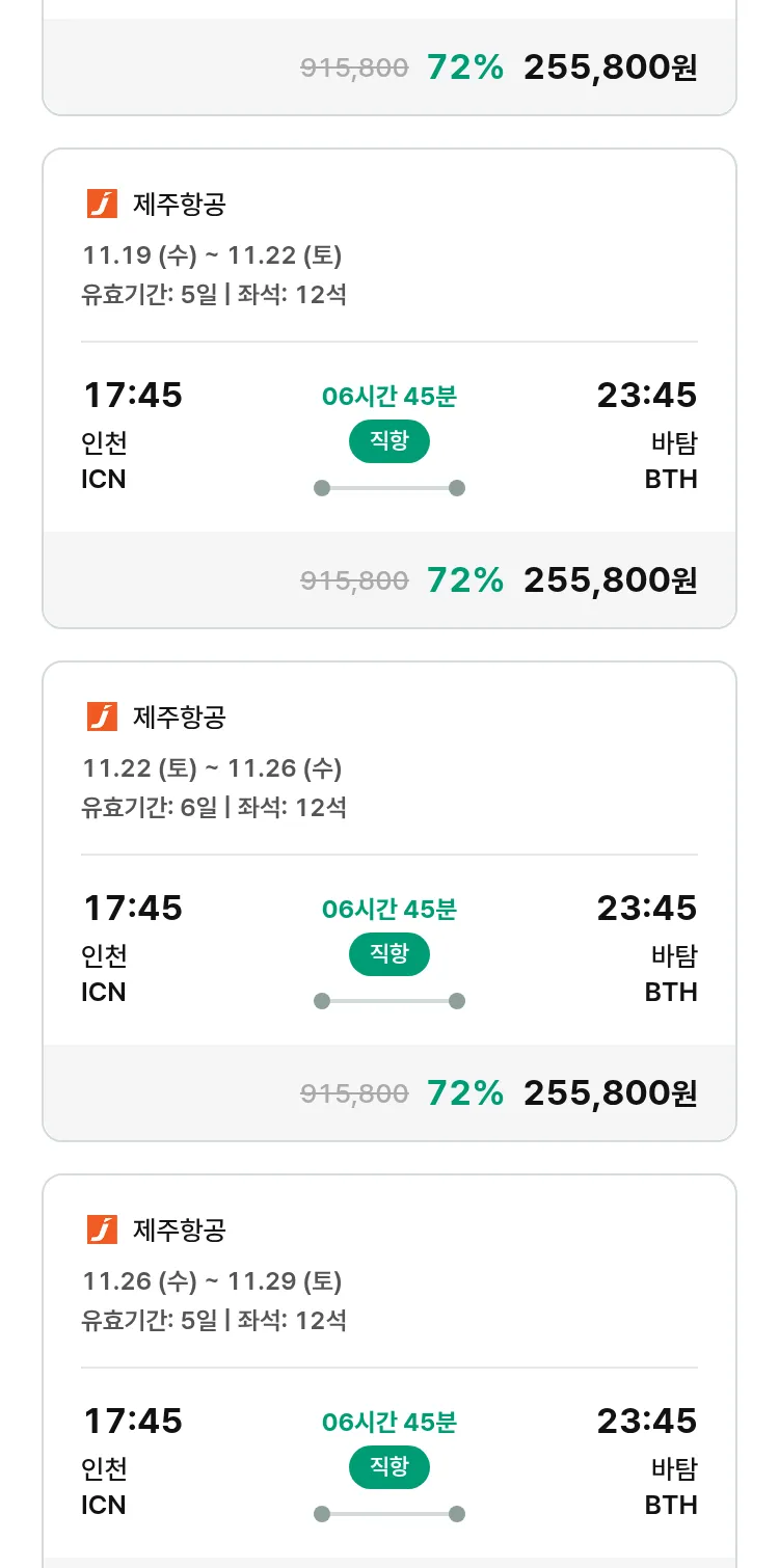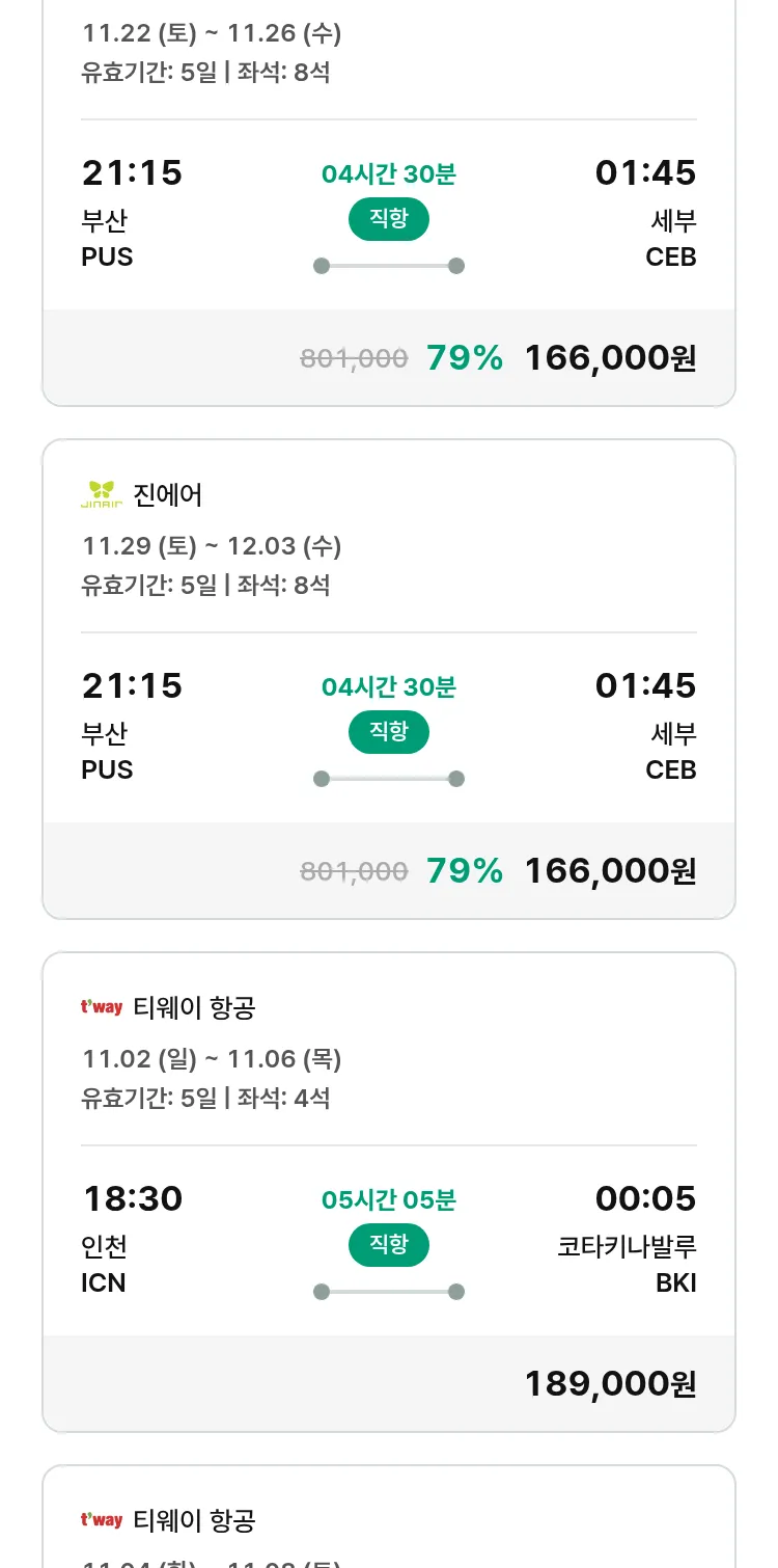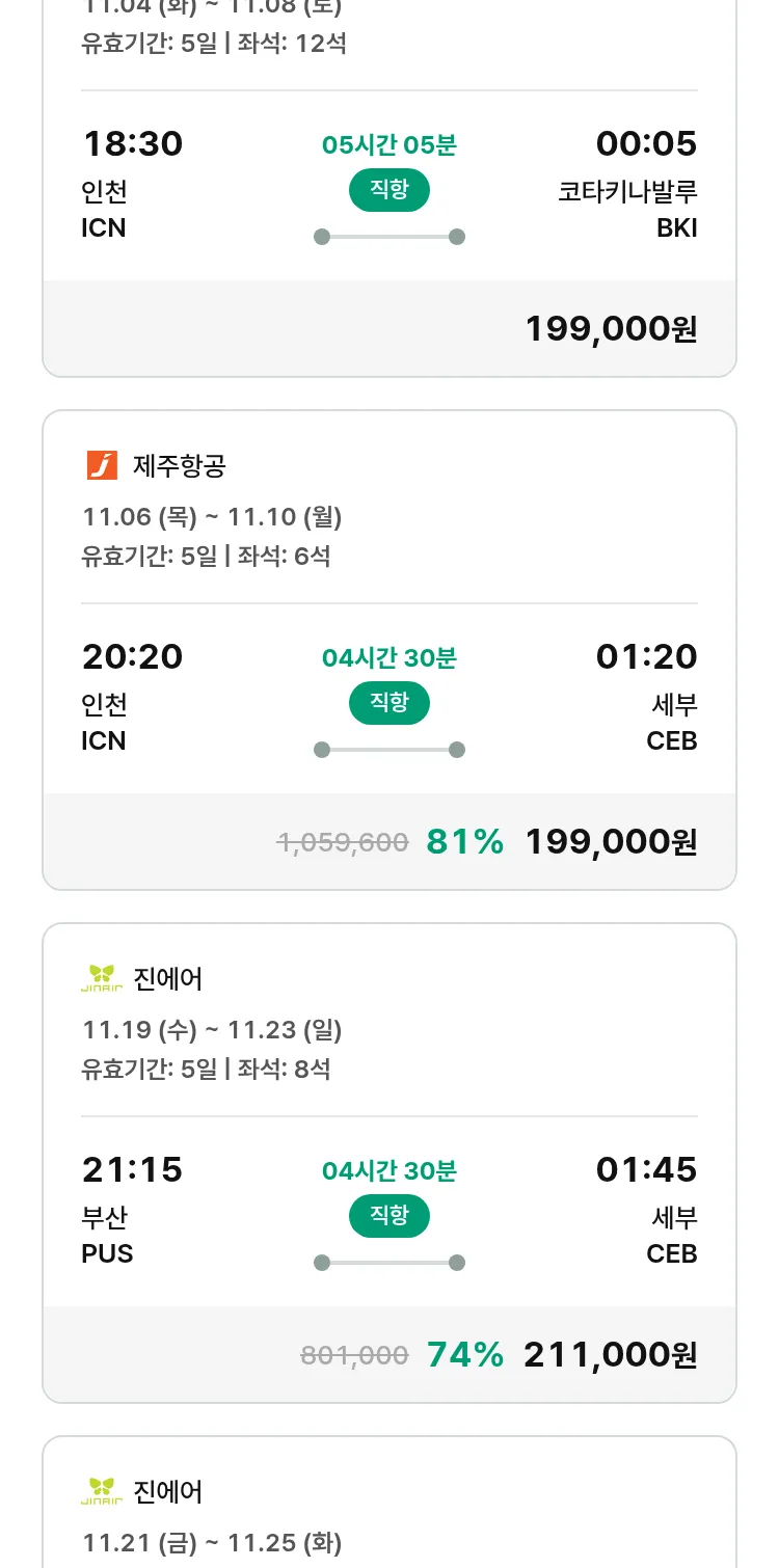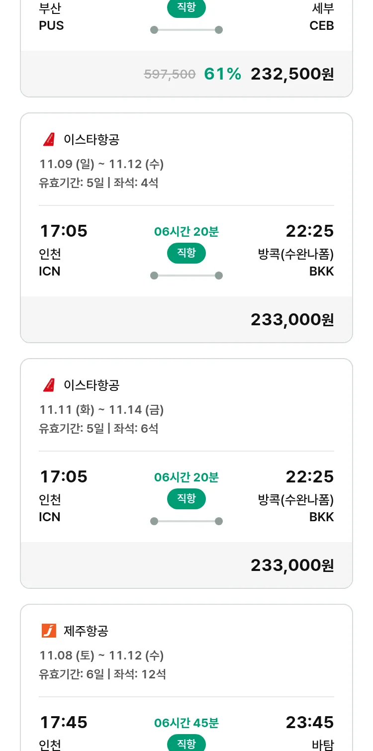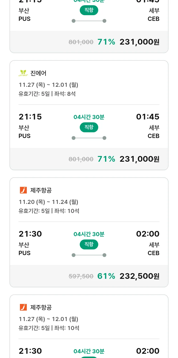 (10월 30일(목)) 땡처리 특가 항공권