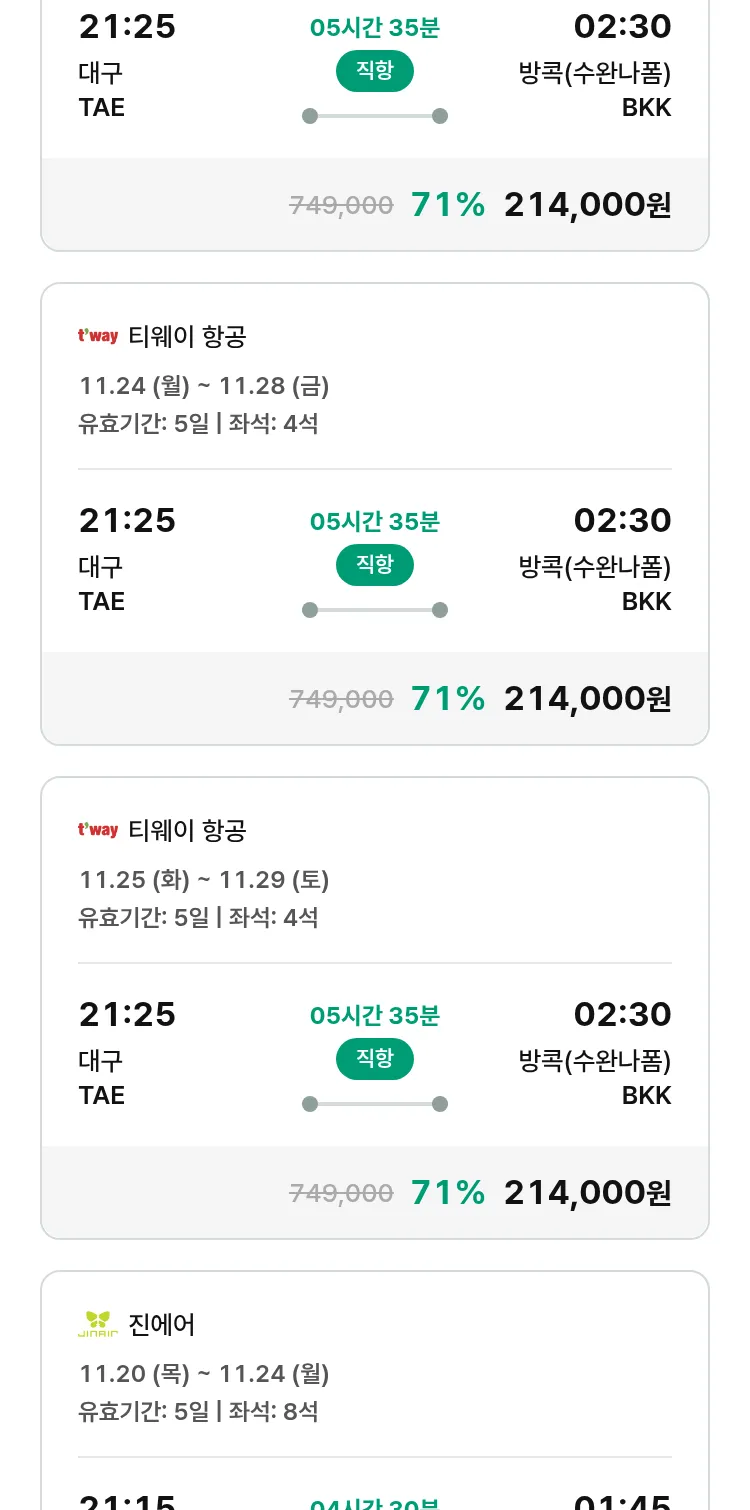 (10월 28일(화)) 땡처리 특가 항공권