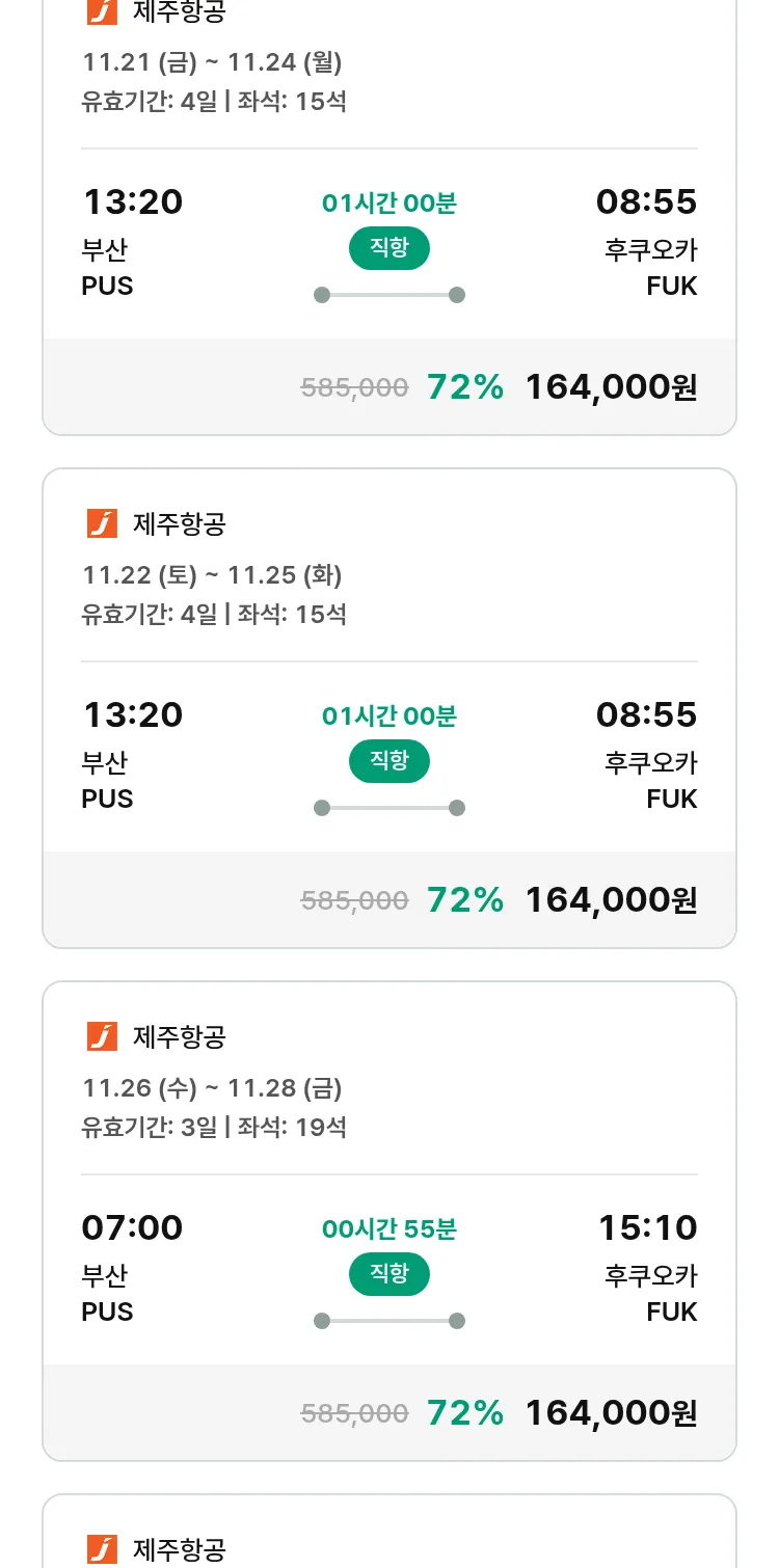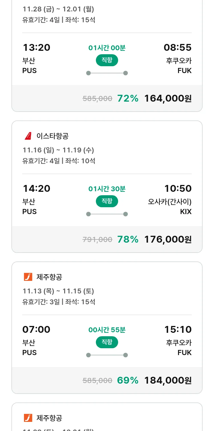 (10월 28일(화)) 땡처리 특가 항공권