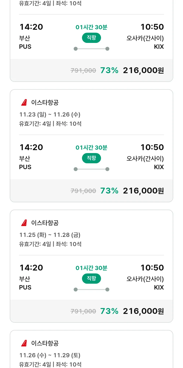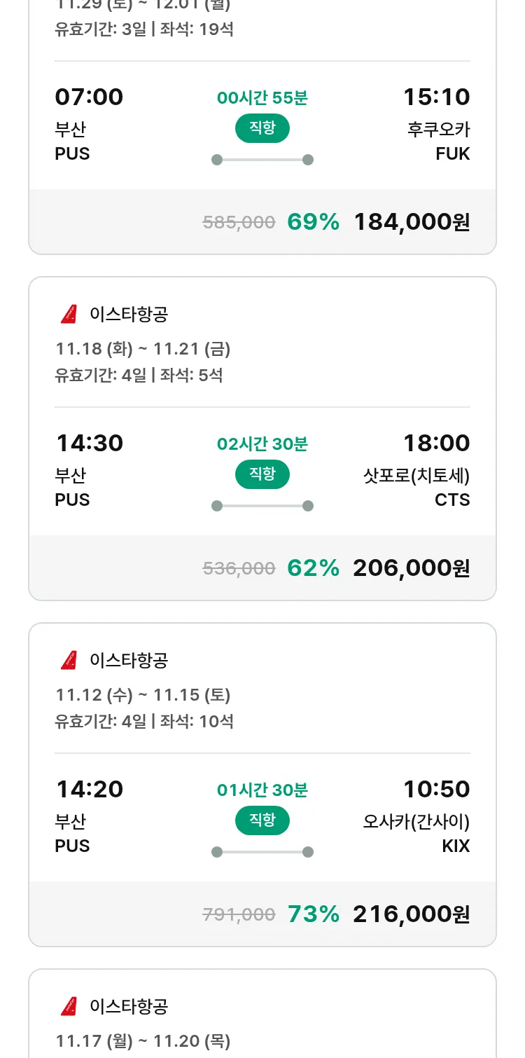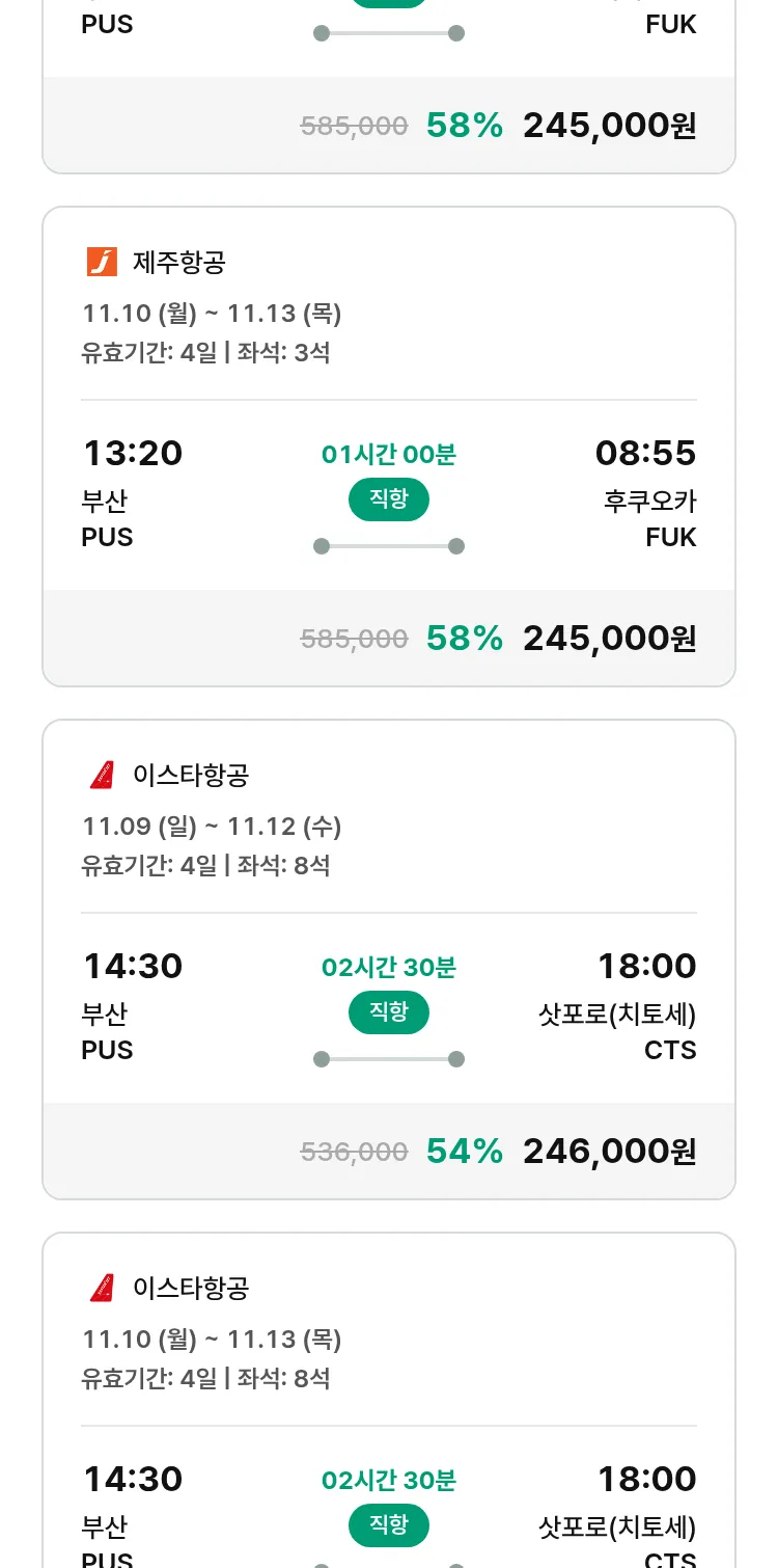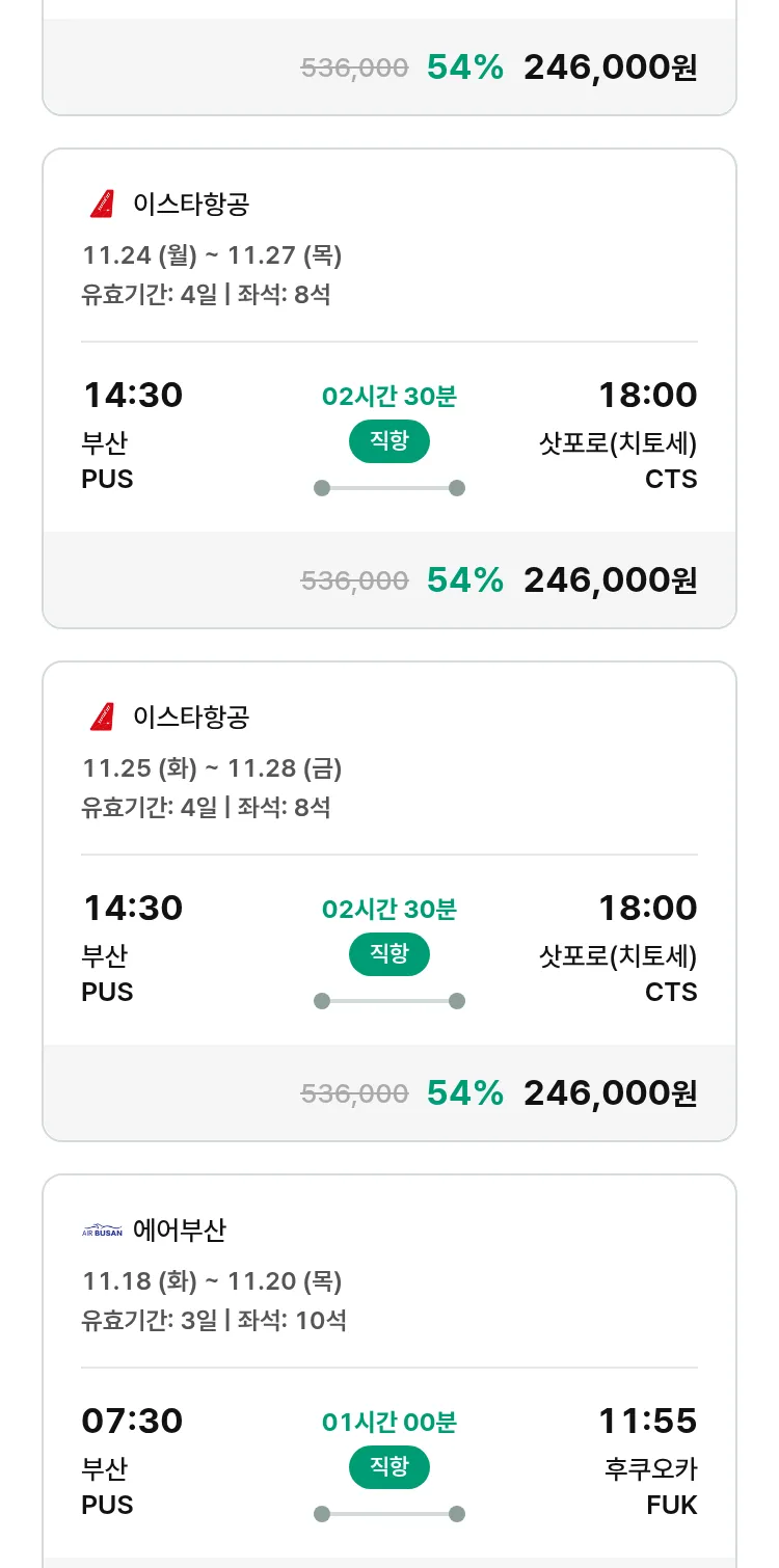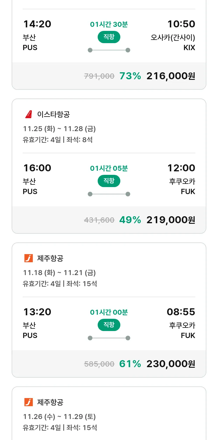 (10월 30일(목)) 땡처리 특가 항공권